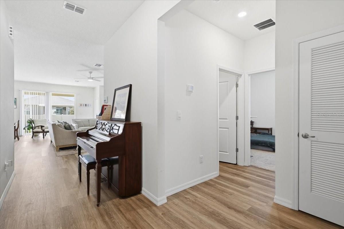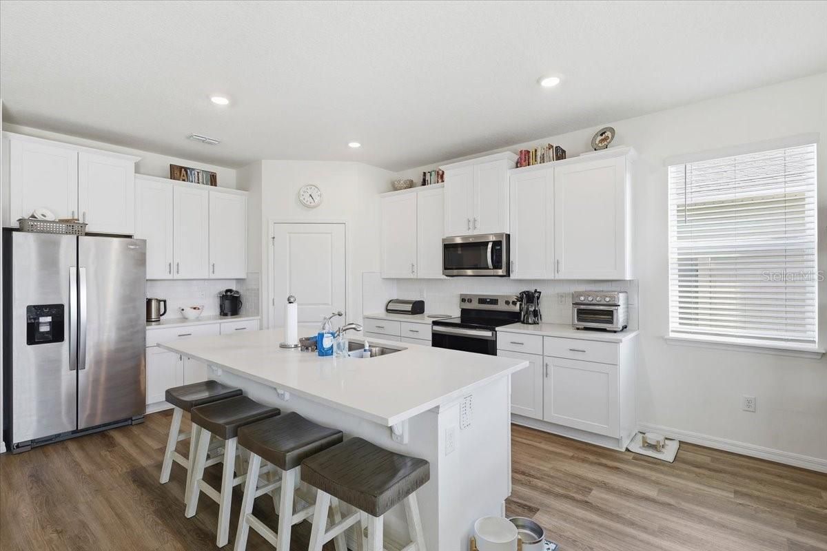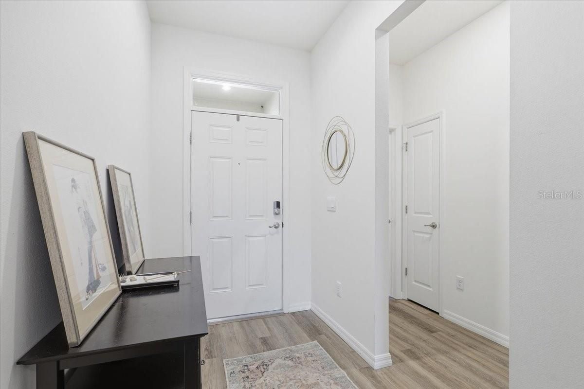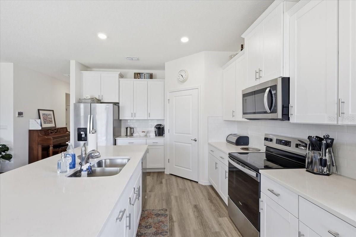 Better than new! Homeowner has invested nearly 20K in upgrades. Built in 2024, this DR Horton block home is in the Archer’s Mill community in Plantation Oaks of Ormond Beach. Nestled between us1 and the historic LOOP, and near beautiful Old Dixie Hwy, just minutes to beach access and all Ormond Beach amenities. This 4 BR, 2 bath, 2034 SQ FT open floor plan home boasts a big bright kitchen, quartz countertops, a suite of stainless-steel appliances, and ceramic tile backsplash. The bathrooms are similarly tiled, and the common areas and bathrooms floors are LPV. The bedrooms are carpeted. All window treatments also convey. With a $151 HOA, this community includes landscaping/lawn maintenance, an amenity center with a gym and stunning resort style pool. Also included is the playground, the pickleball courts and a fenced dog park! The community is code- gated overnight. This home is already upgraded to include a fully fenced yard, ceiling fans, and custom closets for the pantry and laundry room. Also included are the washer and dryer, (less than a year old) which are not an included item in the brand new builds. With all these additions, the home is priced below current builder pricing. This home is an exceptional value.