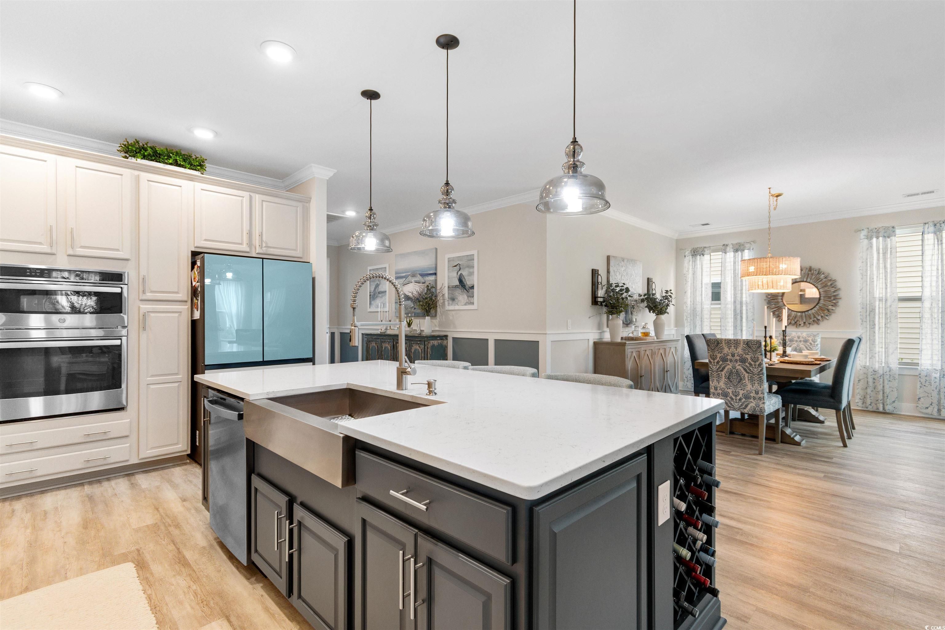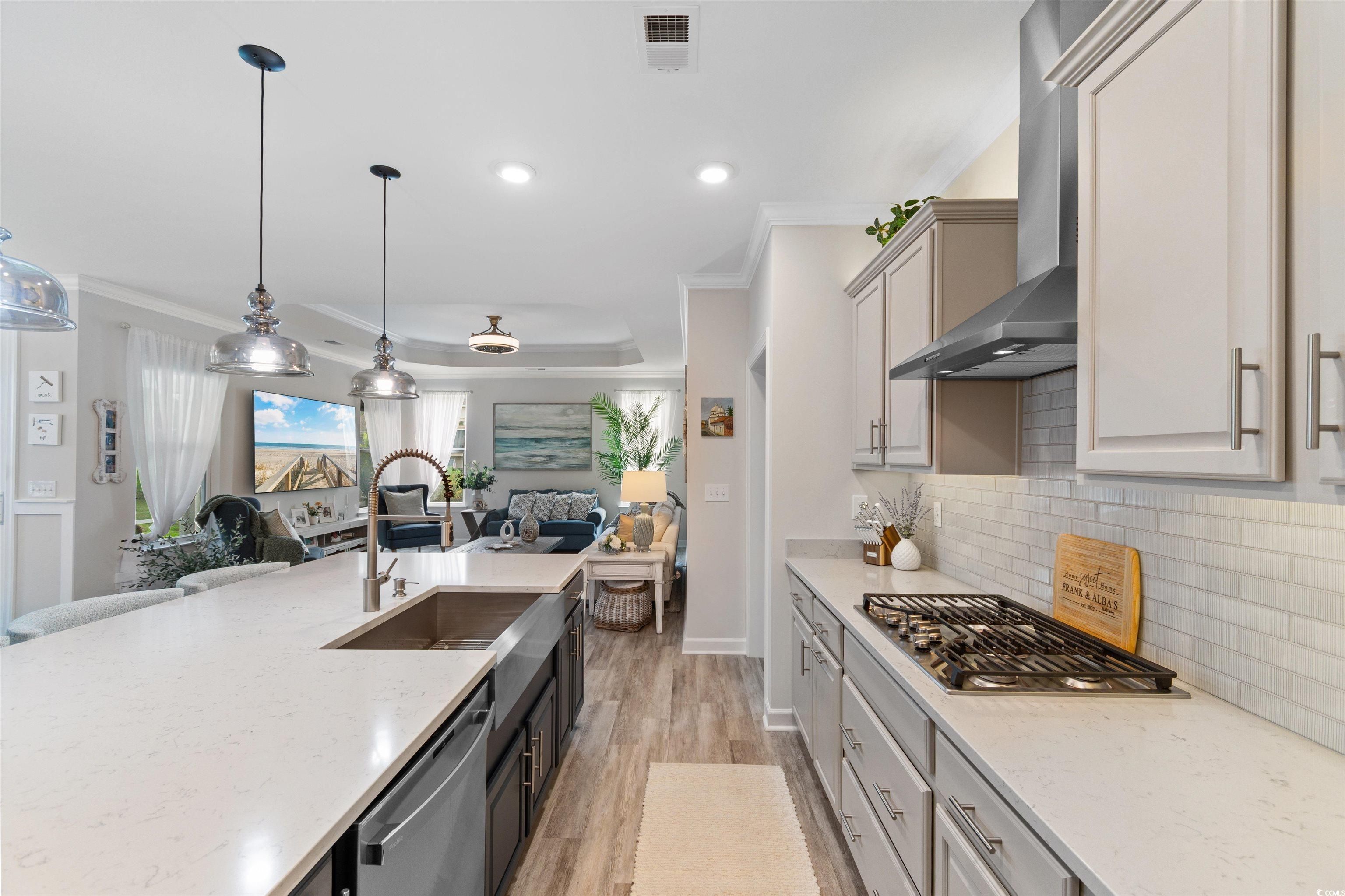 Why build when this gem is on the market?? All the feedback has been so so positive on this barely new home that you could move right in! It's a "beautiful" 3-bedroom, 2-bath ranch that offers the perfect blend of modern luxury and peaceful living. From the moment you step inside, you'll "love the open concept floor plan" that seamlessly connects the living, dining, and kitchen areas — ideal for both everyday living and entertaining. The upgrade to a gourmet kitchen is a chef’s delight and is truly the focal point of the open living space, featuring upgraded cabinetry, sleek quartz countertops, stainless steel appliances, a spacious island, and designer finishes throughout. The spacious owner’s suite provides a relaxing retreat, complete with a private en-suite bath and walk-in closet. Two additional bedrooms offer plenty of space for guests, a home office, or a growing family. Step outside and unwind on the patio while enjoying tranquil pond views right in your backyard. Whether you're sipping morning coffee or watching the sunset, this setting is sure to impress. Move-in ready and better than new — don't miss your chance to own this beautifully upgraded home in a picturesque location! Premium finishes, upgraded flooring, and designer touches add to the upscale feel. Enjoy the perks of Bridgewater living with access to community amenities including pool, bocce, dog park, kayak/canoe ramps, community center, and plenty of sidewalks for the walker in you. You can be as social as you'd like in this community. Close to McLeod Hospital and the beaches of Cherry Grove. This is truly the best of southern living!! Don't miss this rare opportunity - schedule your private showing today!