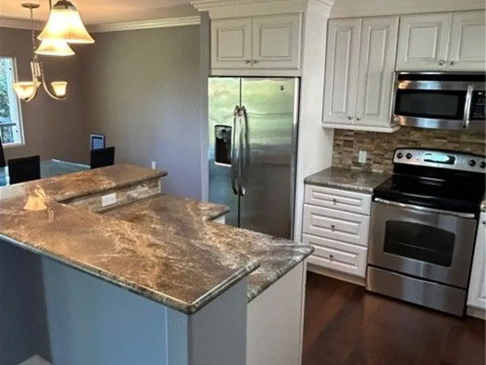 - Balcony, Built-in Features, Crown Molding, Granite Counters, Living Room Balcony, Open Floorplan, All Bedrooms on Lower Level