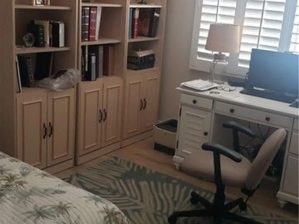 Andaluz Model i Laguna Woods, a 55+ community with Gate Guarded community. The property has 3 bedroom and 2 bath model. You enter through the front gate into a welcoming court yard where you can have morning coffee and relaxing afternoon with wine with friends. In through the front door to the bright living with natural sun light thru skylights, dining area and kitchen. The bedrooms are down the hall with first bedroom is great for guest, large 2nd bedroom with a sliding door to the court yard and a walk in closet, the 3rd bedroom has a bathroom and walk in closet and sliding door to back patio. All the windows and sliding doors have been upgraded to dual pane windows. The kitchen has granite counter tops. Property is move in ready. The community offers several amenities swimming pools, pickle ball, tennis and golf, and activities each month. This property is near club house 6
