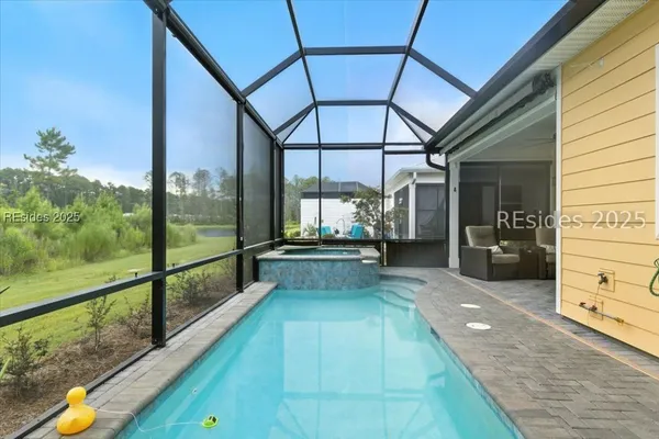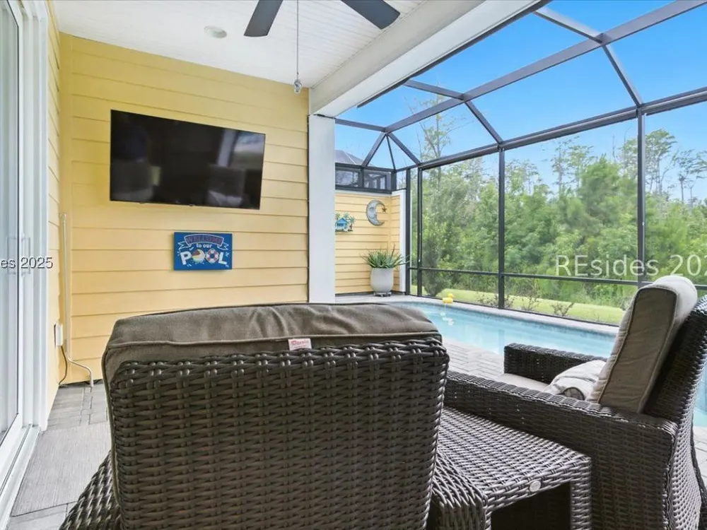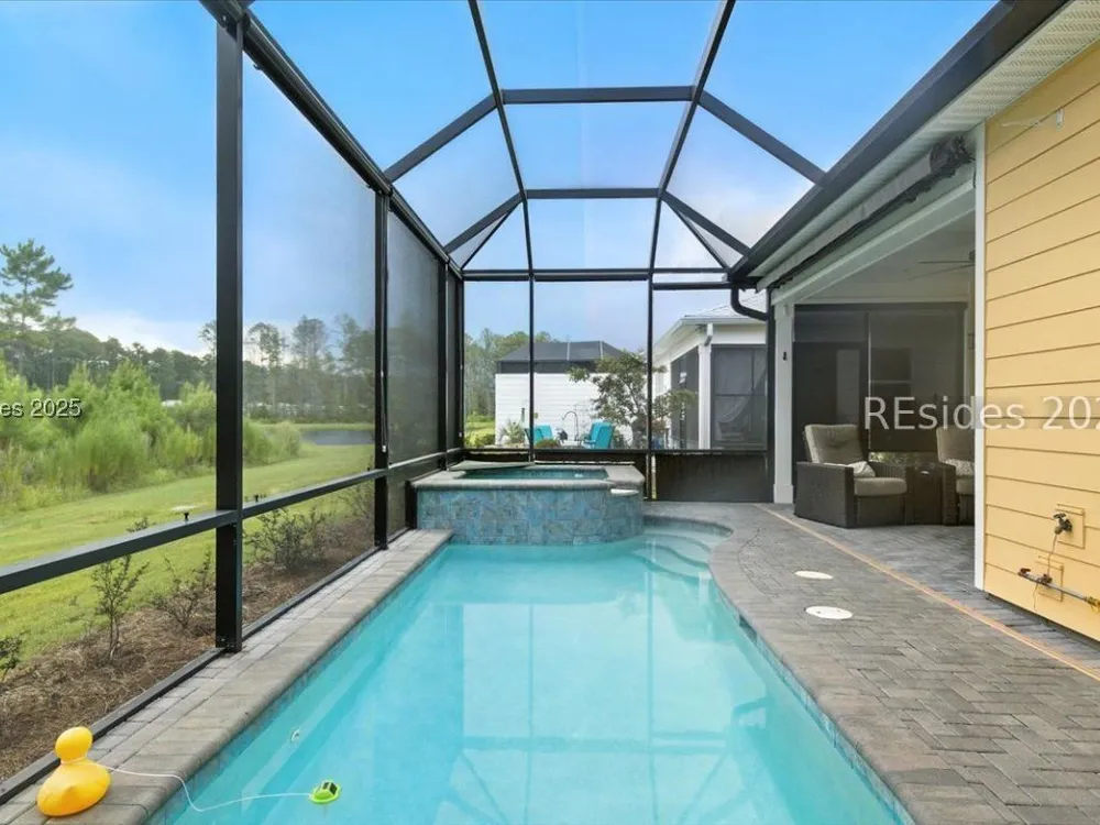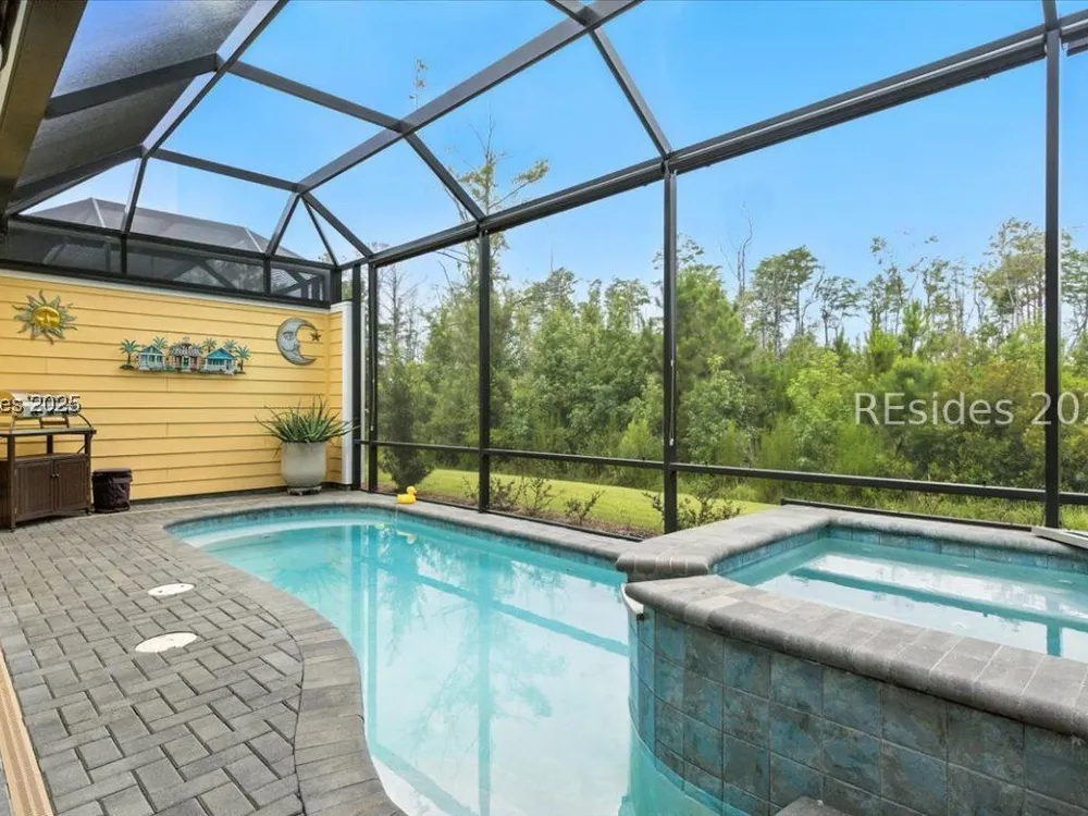 Dreaming of living every day like you're on vacation? Latitude Margaritaville Hilton Head is the Premier 55+ Community for Active adults! Welcome to your Barbuda model, where the Lowcountry breeze, the rustle of palmettos, and the scent of salt air greet you every morning, and where sunsets over the wetlands become your daily tradition. Let's start with your personal paradise: Tucked behind this home is your refreshing plunge GAS HEATED pool and spa perfect for invigorating morning Aerobics or a relaxing soak under the stars after a day of pickleball and live music at the Town Center. The extended lanai with a birdcage enclosure offers all the outdoor living you could want while staying comfortably shaded, with views backing up to the tranquil wetland preserve. Inside, laid-back luxury takes center stage: This thoughtfully designed 2-bedroom, 2-bathroom home with an office (with doors for privacy) offers flexibility for your lifestyle, whether you're working on your passion projects, hosting guests, or simply embracing your own quiet time. The heart of the home is the chef's kitchen, crafted for those who love to cook, entertain, or simply savor their morning coffee in a beautiful space. You'll find quartz countertops, a striking tile backsplash, and a quick hot water heater under the sink for instant hot water. The whole house water filtration system ensures every sip, and every shower feels clean and fresh. A home designed for comfort and ease. The Laminate flooring throughout offers a seamless, coastal feel while being practical and easy to maintain. The generous laundry room provides plenty of space for organization, hobbies, or even an extra spot to fold towels for your pool days. The primary suite is your sanctuary, with serene views, a spacious walk-in closet, and an en suite bath designed for relaxation. Your guests will love the comfort of the second bedroom and bath, with enough privacy to make them feel right at home. Why Latitude Margaritaville Hilton Head? Because you've worked hard, and now it's time to enjoy the lifestyle you deserve. Hop in your golf cart for a quick ride to the Town Center, where you'll find live music, fitness classes, pools, the Bar & Chill restaurant, and your new community of friends ready to welcome you. Are you ready to trade in your snow shovel for sandals, your busy commute for bike rides, and your to-do list for a what-do-I-feel-like-today list? PRR
