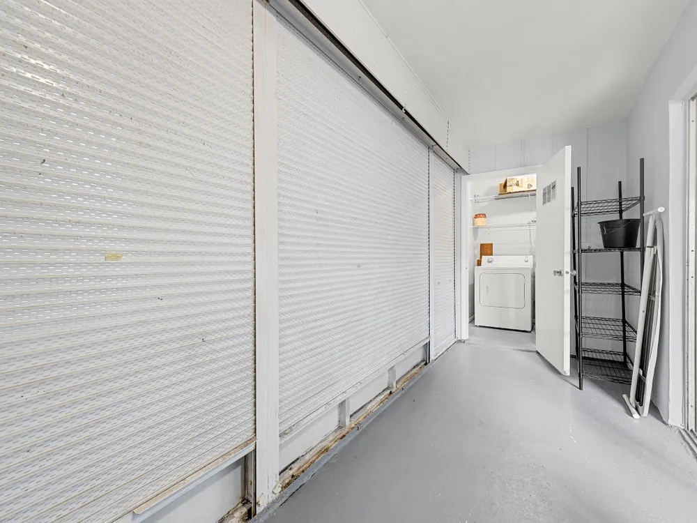- Entry Level Living Area, Living/Dining Room, Snack Bar, Blinds, Primary Downstairs