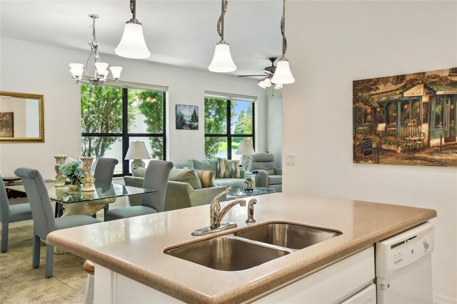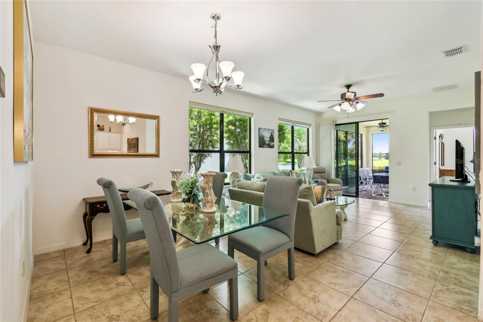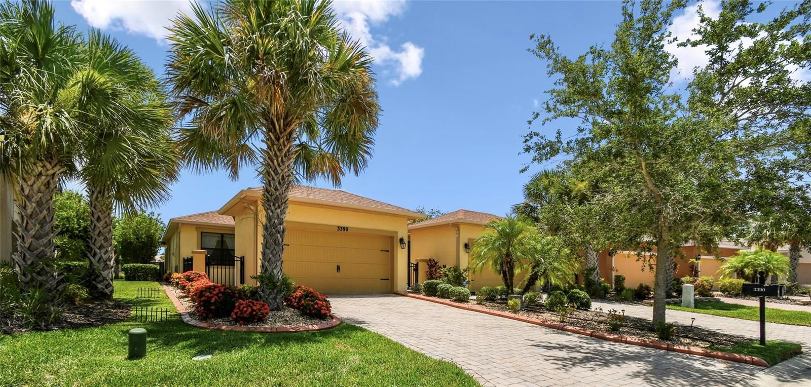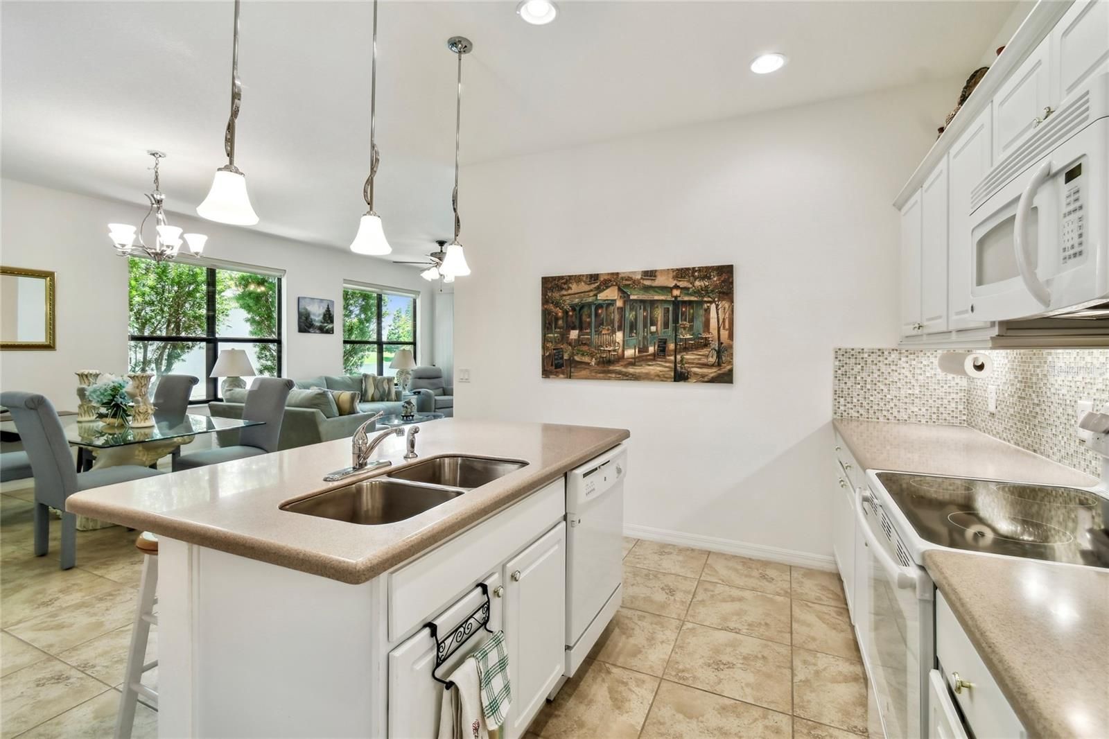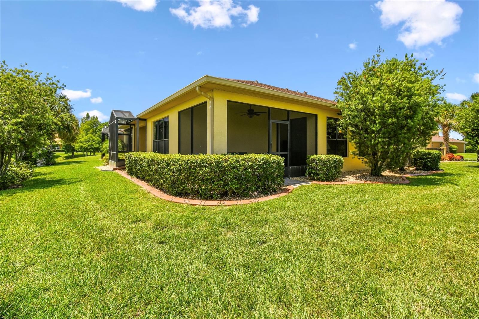 Enjoy gorgeous and relaxing WATER VIEWS from this beautifully maintained Amaro model located just a short distance from the Village Center. Featuring 2 bedrooms, 2 baths, and 18" CERAMIC TILE in all wet areas, this home offers comfort, upgrades and the comfort and convenience of everyday vacation living! HVAC REPLACED 2024. CDD DEBT FEE PAID IN FULL. Step inside through a gated courtyard entry and SCREENED FRONT PORCH into an OPEN-CONCEPT layout featuring a spacious living area and an adjacent dining room, perfect for everyday living and entertaining. The kitchen features 42" cabinets, corian countertops, MOSAIC TILE BACKSPLASH, breakfast bar, and plenty of prep space. The PRIMARY SUITE boasts peaceful WATER VIEWS, a large walk-in closet, and an ENSUITE BATH with DUAL SINKS, tiled walk-in shower with bench, linen closet, and private water closet. The guest bedroom overlooks the front courtyard and is near a full bath with a tub/shower combo and plenty of natural light. Relax outdoors on the COVERED and SCREENED lanai with EASTERLY exposure ideal for morning coffee and SUNRISE VIEWS!! Additional upgrades include a whole-house WATER SOFTENER system, stylish silhouette shades that allow soft daylight while maintaining privacy, CEILING FANS in all rooms for year-round comfort, and fresh landscaping with river rock and CURBING added in 2024 for added curb appeal.The HOA fee COVERS both HOUSE PAINTING and EXTERIOR power washing.** Click on VIRTUAL TOUR link 1 to see MATTER PORT 3D VIDEO and virtually walk through this home.**Solivita features amazing resort-style perks like 36 holes of championship golf, 14 heated pools, 17 pickleball courts, 9 tennis courts, 2 fitness centers, 3 restaurants, and 250+ resident clubs. You’ll also find softball fields, bocce, shuffleboard, billiards, dog parks, and plenty of walking and biking trails. The HOA handles landscaping, irrigation, roads, 24/7 gated security, plus fiber optic internet and TV service.***Poinciana Lakes Plaza is a MAJOR NEW SHOPPING CENTER that opened directly across from the Solivita Main Gate in Summer of 2024. It features Sprouts Grocery, TJ MAXX, Ross, Burlington, Rack Room Shoes, 5 Below, Ulta, Outback, First Watch, 5 Guys, Urgent Care, Dentist, TD Bank, Petco & Hair Cuttery PLUS MORE TO COME.***