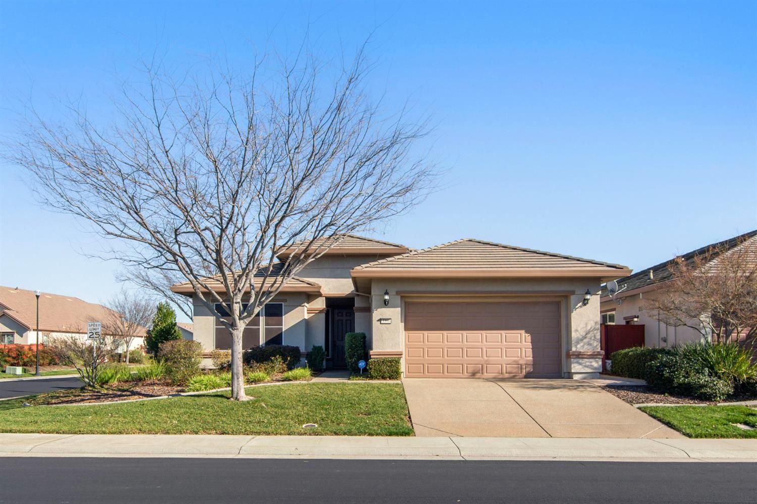 Welcome to The Club at WestPark by Del Webb, one of Northern California's premier communities designed for 55+ active adults. This elegant and meticulously maintained one-story home features a private east-facing back yard, excellent for enjoying morning sunshine. Great corner location too! The property includes impressive upgrades and features, including energy-efficient solar panels paired with a battery power pack, upgraded fans and lighting, and luxurious Brazilian Rosewood flooring complemented by diagonal tile and cozy carpeting. Newer water heater. The outdoor space is enhanced by a covered patio equipped with fans, creating a comfortable area for relaxation and entertaining. This highly desirable Stadley model offers abundant storage and includes two spacious bedrooms along with a versatile den/office. The expansive Great Room serves as the heart of the home, highlighted by a charming fireplace that adds warmth and character. The thoughtfully designed layout ensures maximum privacy, with a separate wing dedicated to the guest bedroom and bath, away from the den/office and primary suite. High 10-foot ceilings, 8-foot doors, and large windows contribute to an open and airy atmosphere, making the home feel even more inviting. The HOA dues cover front yard maintenance and allow access to the amenity-rich Retreat Clubhouse. This clubhouse features a well-equipped fitness center, a refreshing pool, and a variety of clubs and social groups, fostering a vibrant community spirit. Residents also enjoy the reliability and cost-effectiveness of Roseville Utilities. Parks, scenic trails, dining, golf, entertainment options, and shopping, are all conveniently just several miles away, including Roseville Galleria and The Fountains. Close proximity to top healthcare facilities and medical centers too. The Club at WestPark in Roseville truly offers a wonderful lifestyle and an idyllic place to call home.