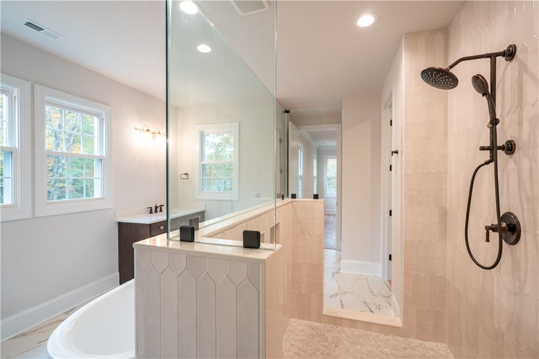The Pembroke has 5 bedrooms and 4 baths, totals 4,106 square feet and sits on a heavily wooded 3.14 acre lot. Additional features and upgrades include: •Second Floor Primary Suite with Serenity Primary Bath Featuring Expanded Walk-In Ceramic Tile Shower with Double Recessed Shower Niche, Freestanding Tub, and Separate Vanities •Gas Fireplace with White Matte Marble Surround in Family Room •Open Kitchen with Large Island, Compac Elegance Michelangelo Quartz Countertops, Yorktowne Henning Neutral Painted Cabinets, Tapered Wood Hood, Double Trash Drawer, Refrigerator Enclosure, and Contemporary Crown Molding •GE Stainless Steel Appliances with All-Gas Range, Sharp Microwave Drawer Oven, and Cafe Dishwasher •Butler's Pantry and Second Pantry with Wood Shelves •Laminate Pergo Neilate Caramlized Hickory Flooring T hroughout First Floor, Primary Bedroom and Bedroom #5 •Morning Room •Quartz or Granite Countertops and Ceramic Tile Flooring and Bath Surround in All Bathrooms
