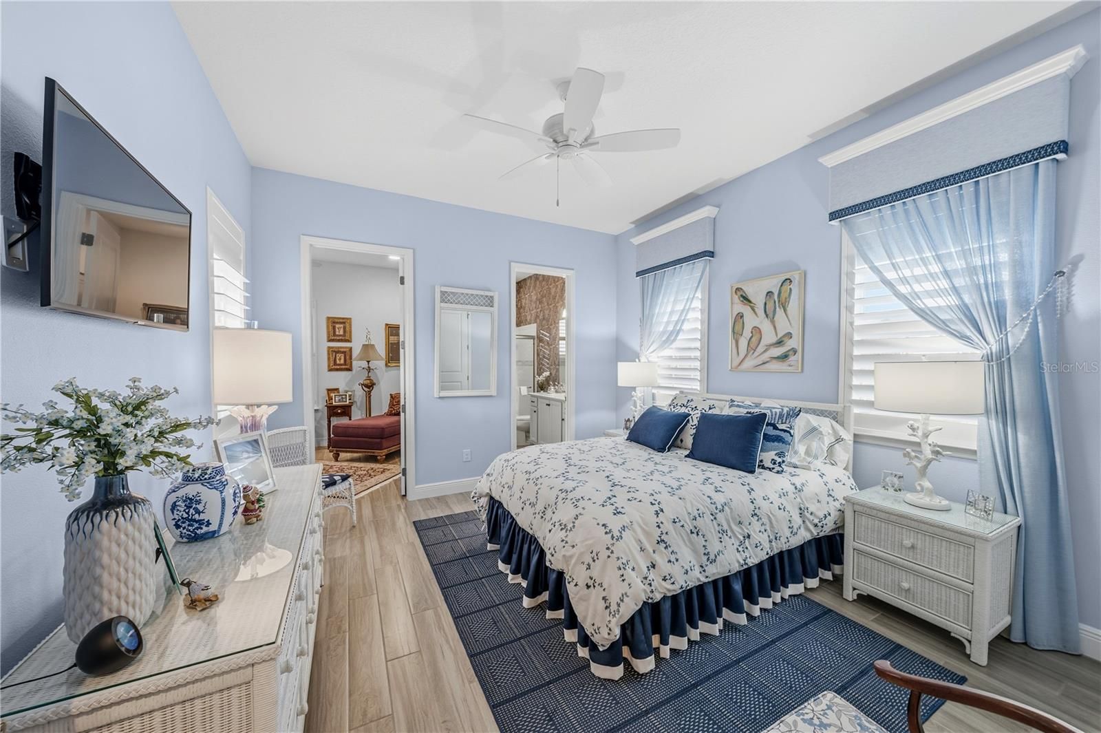 Exquisite craftsmanship and refined design define this exceptional residence, offering an elegant yet inviting lifestyle. From the moment you enter, you’ll appreciate 10-foot ceilings, 8-foot doors, plantation shutters throughout, and beautiful architectural details including crown molding and tray ceilings. Designed for both everyday living and upscale entertaining, the gourmet kitchen features custom cabinetry with pull-out shelving, glass display cabinets, premium countertops, a gas cooktop, convection oven, and a spacious bar area that flows seamlessly into the formal dining and living spaces. The thoughtfully designed layout includes two guest bedrooms, one offering a private sitting room and en-suite bath, ideal for extended guests or multigenerational living. Tile flooring throughout enhances both style and durability. Enjoy year-round Florida living with a screened lanai and enclosed sunroom/card room, providing flexible spaces for relaxation and entertaining. The well-appointed laundry room offers abundant cabinetry, built-in shelving, a planning area, wine cooler, and washer and dryer. Additional highlights include: Custom closet systems, Tankless water heater, Overhead garage storage, Crown molding and tray ceilings, Plantations shutter throughout, and so much more.. This beautifully maintained home offers timeless elegance, thoughtful upgrades, and exceptional livability—an outstanding opportunity! MAKE YOUR APPOINTMENT TODAY TO VIEW YOUR NEXT HOME!!!
