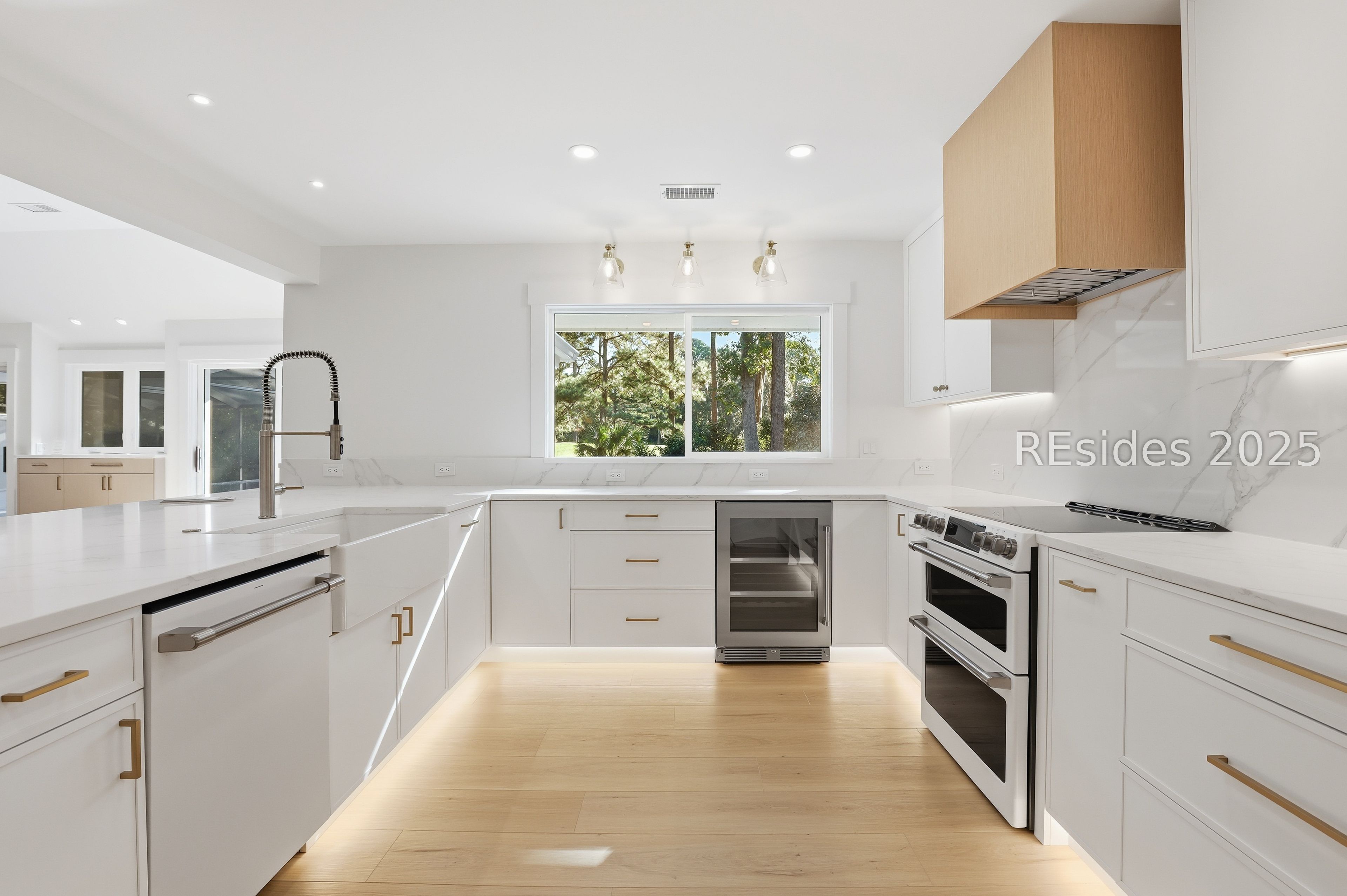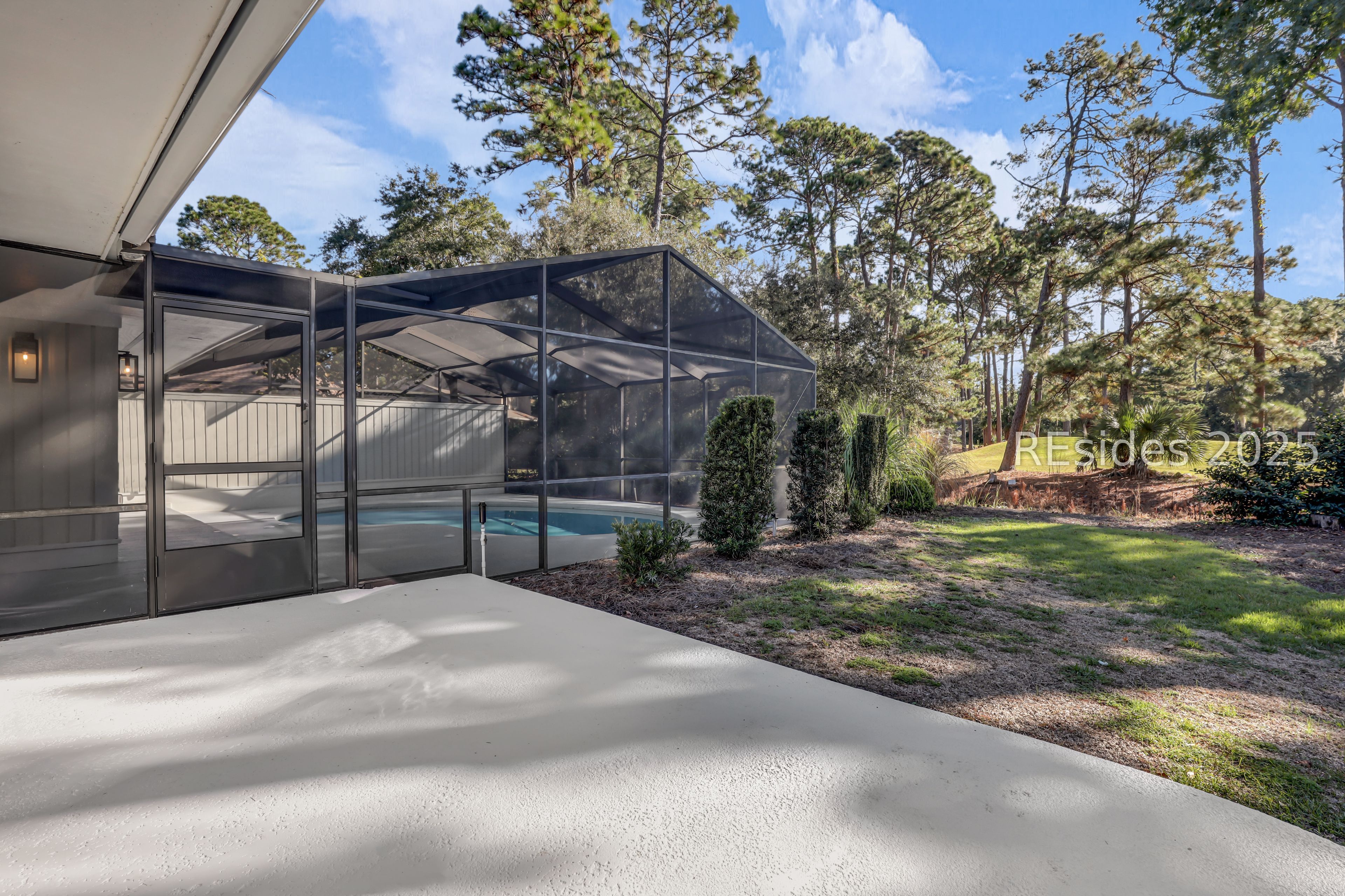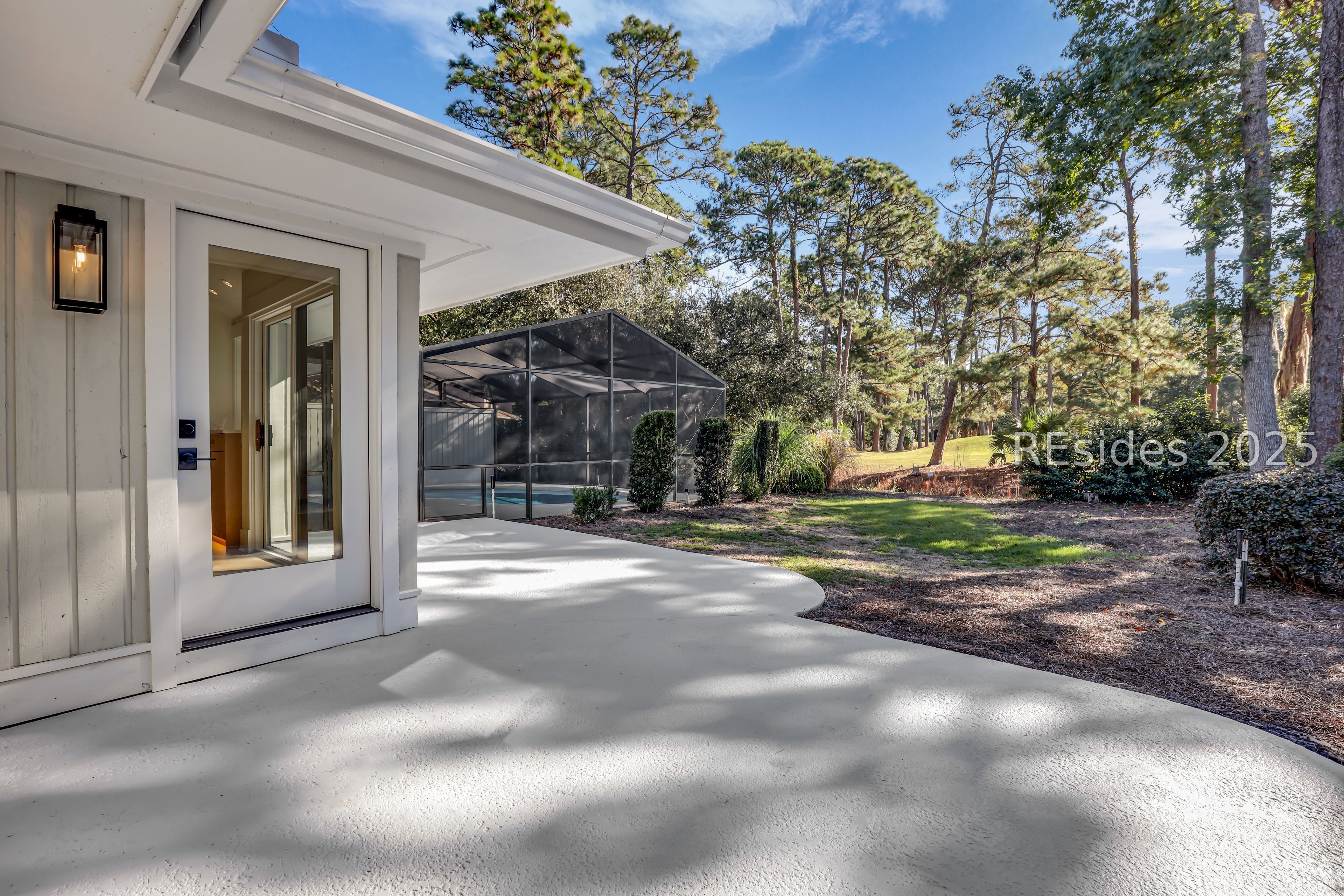 Completely reimagined from the studs up, this Hilton Head Plantation masterpiece blends modern sophistication with timeless Lowcountry charm. Offering 2,623 square feet of refined island living, the home's fresh coastal-chic design and wide-plank hardwood floors flow seamlessly through every space-all overlooking the serene third green of Bear Creek Golf Club. Thoughtfully redesigned for contemporary comfort, the residence showcases new high-end finishes throughout, from designer lighting and custom cabinetry to premium fixtures and appliances. Natural light pours into open, airy interiors where the great room's gas fireplace and built-ins complement the chef's kitchen-featuring a spacious island, marbled Quartz countertops, panel refrigerator, beverage fridge, and a hidden back pantry. Every detail reflects a harmonious balance of modern elegance and coastal warmth. The single-story layout offers effortless living, extending into a tranquil office/flex room and two guest bedroom with beautifully finished jack & Jill bath. The primary suite is a private retreat, with a soaring tray ceiling, direct access to the screened lanai, and a spa-inspired en suite bath boasting dual vanities and a stunning walk-in shower wrapped in custom stone.Outside, resort-style living awaits. A sparkling and newly refinished swimming pool shimmers beneath a canopy of mature trees, fully screened for year-round enjoyment and minimal maintenance. Expansive patio provide space for grilling, dining, and entertaining-all framed by peaceful golf views and lush privacy. Every inch of this home reflects its complete structural and aesthetic transformation-a meticulous renovation that brings new life, beauty, and lasting value. With its elevated finishes, serene setting, and inspired design, this HHP gem captures the essence of Hilton Head Island living at its finest.