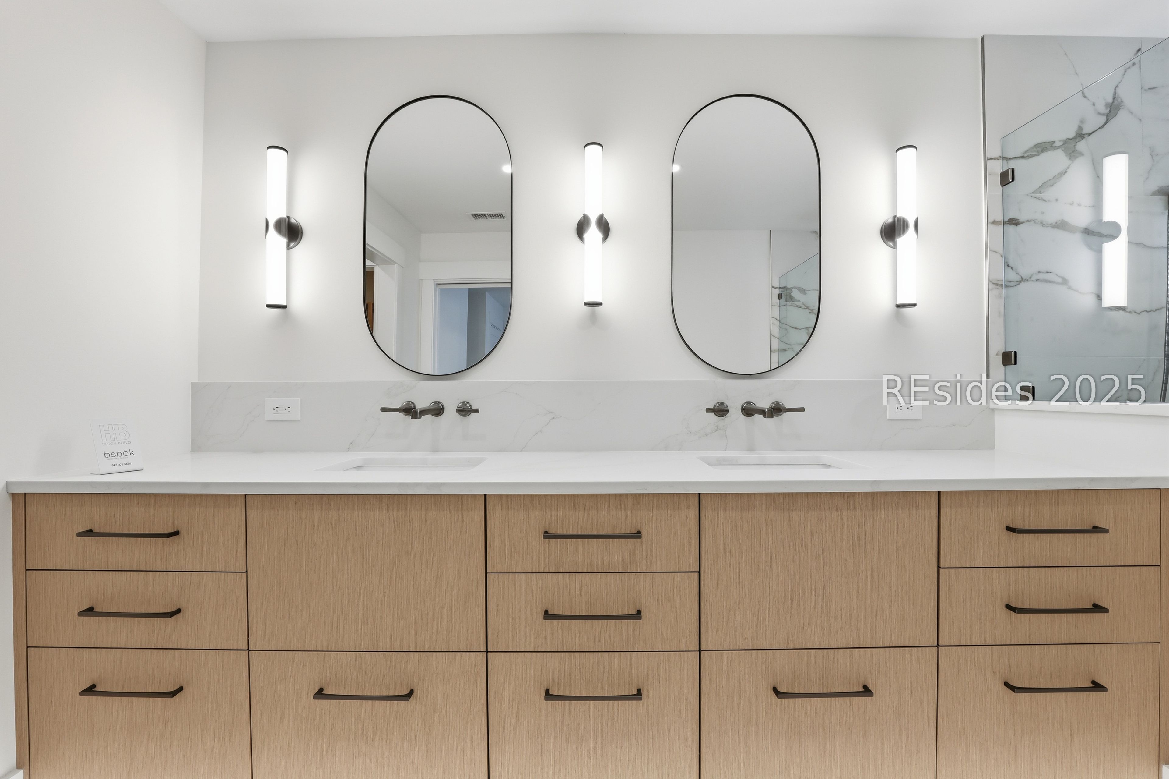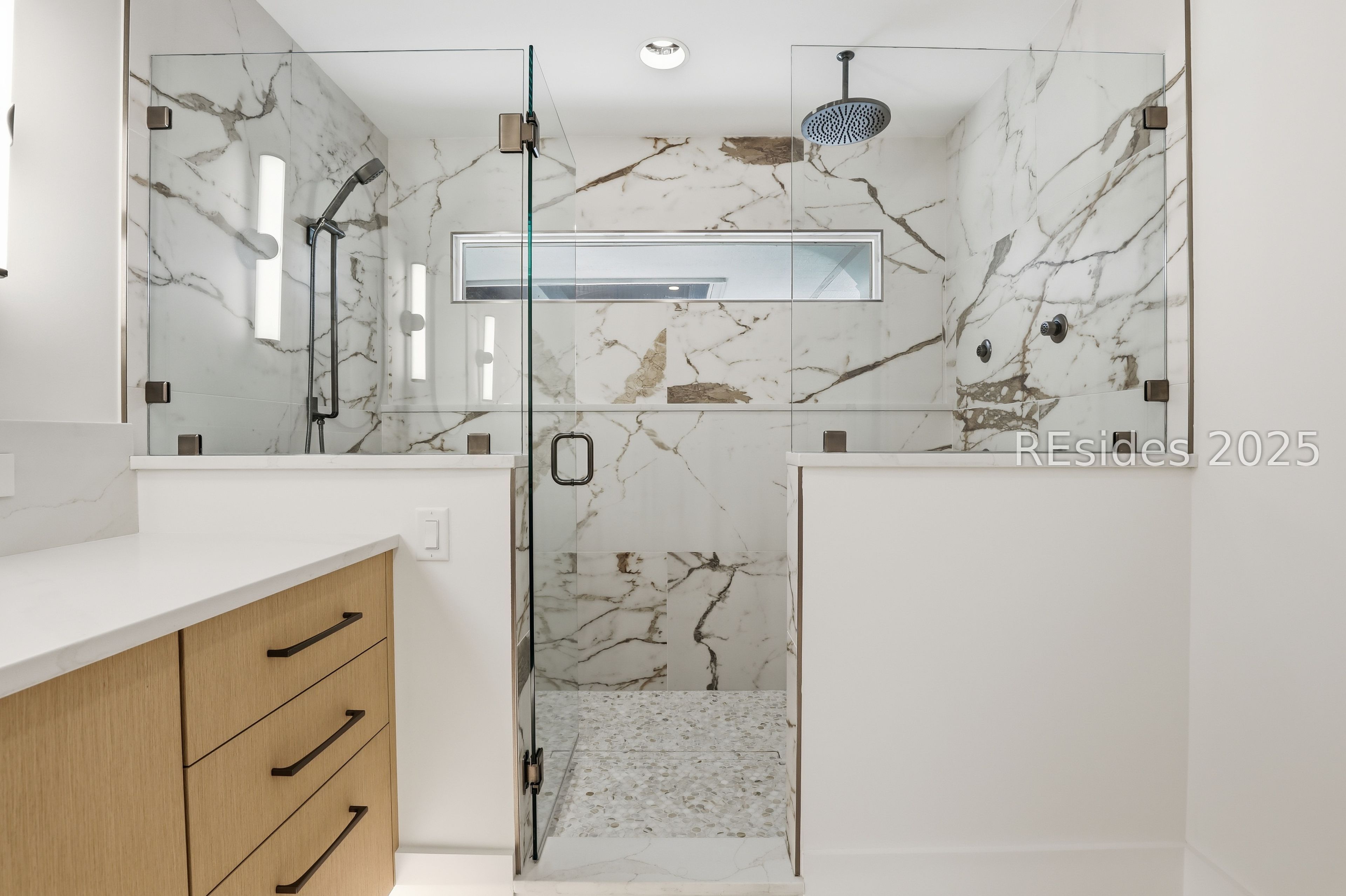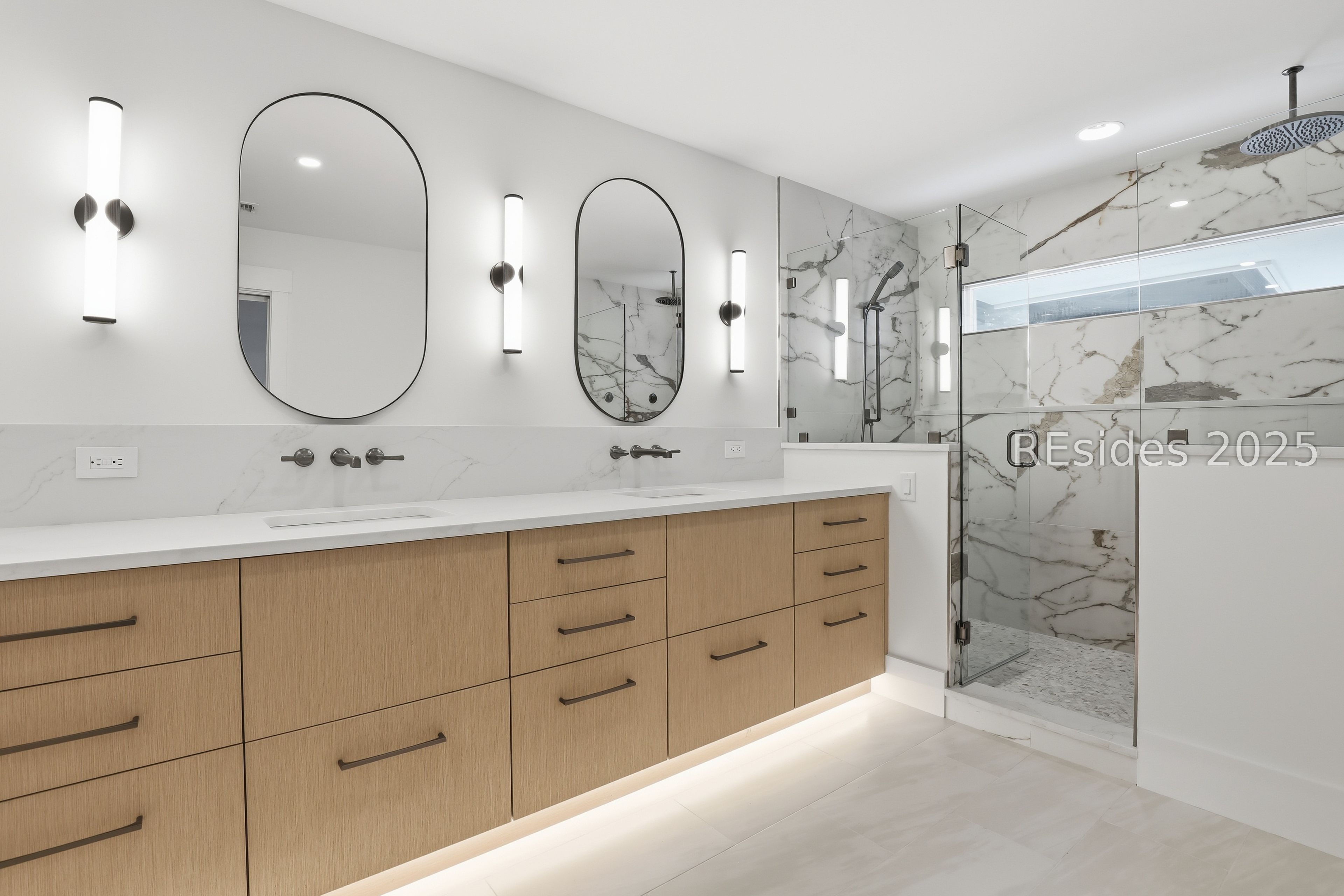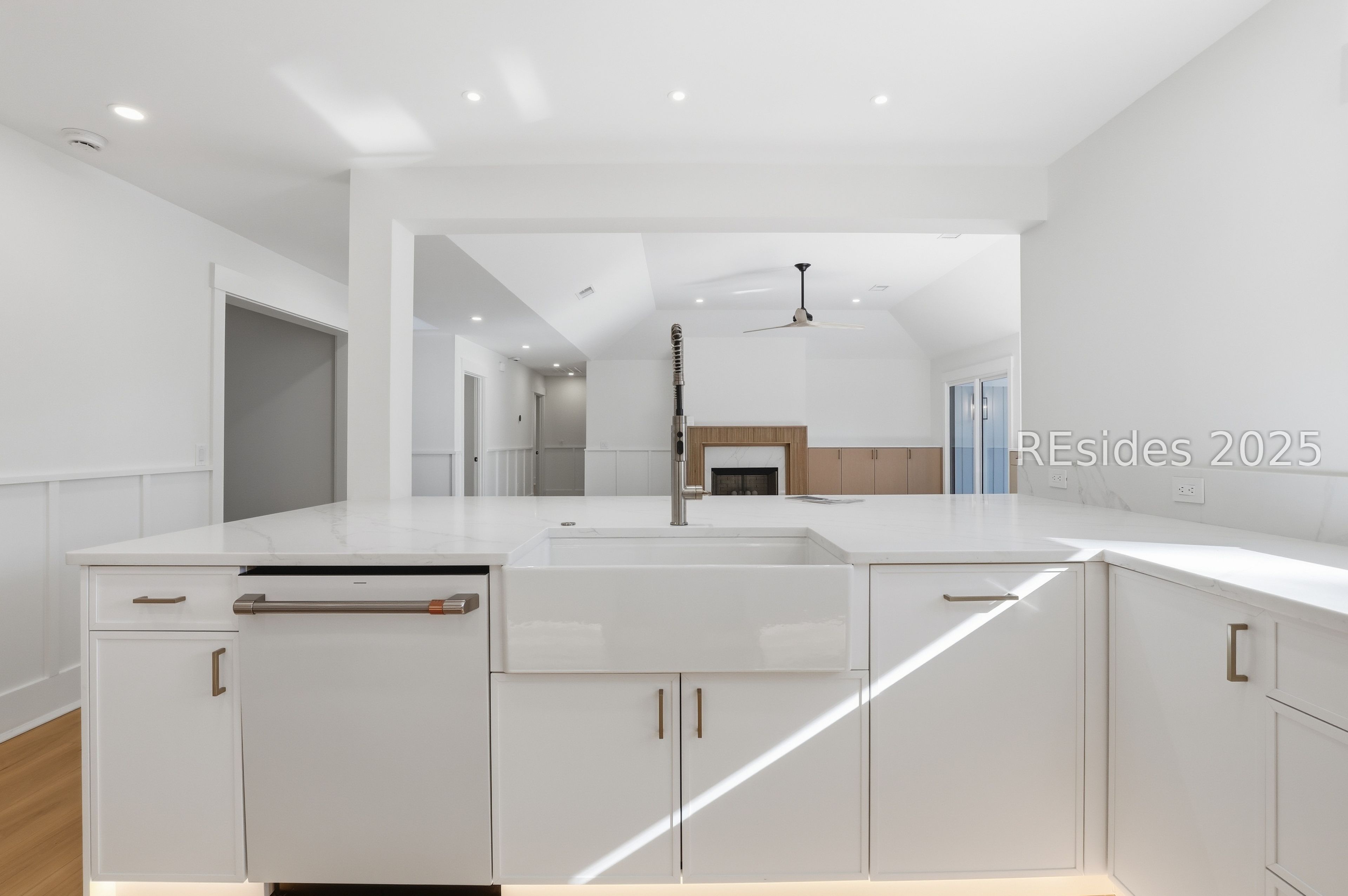 Completely reimagined from the studs up, this Hilton Head Plantation masterpiece blends modern sophistication with timeless Lowcountry charm. Offering 2,623 square feet of refined island living, the home's fresh coastal-chic design and wide-plank hardwood floors flow seamlessly through every space-all overlooking the serene third green of Bear Creek Golf Club. Thoughtfully redesigned for contemporary comfort, the residence showcases new high-end finishes throughout, from designer lighting and custom cabinetry to premium fixtures and appliances. Natural light pours into open, airy interiors where the great room's gas fireplace and built-ins complement the chef's kitchen-featuring a spacious island, marbled Quartz countertops, panel refrigerator, beverage fridge, and a hidden back pantry. Every detail reflects a harmonious balance of modern elegance and coastal warmth. The single-story layout offers effortless living, extending into a tranquil office/flex room and two guest bedroom with beautifully finished jack & Jill bath. The primary suite is a private retreat, with a soaring tray ceiling, direct access to the screened lanai, and a spa-inspired en suite bath boasting dual vanities and a stunning walk-in shower wrapped in custom stone.Outside, resort-style living awaits. A sparkling and newly refinished swimming pool shimmers beneath a canopy of mature trees, fully screened for year-round enjoyment and minimal maintenance. Expansive patio provide space for grilling, dining, and entertaining-all framed by peaceful golf views and lush privacy. Every inch of this home reflects its complete structural and aesthetic transformation-a meticulous renovation that brings new life, beauty, and lasting value. With its elevated finishes, serene setting, and inspired design, this HHP gem captures the essence of Hilton Head Island living at its finest.