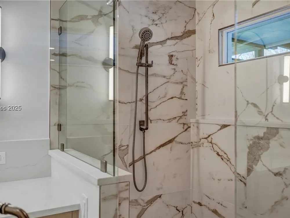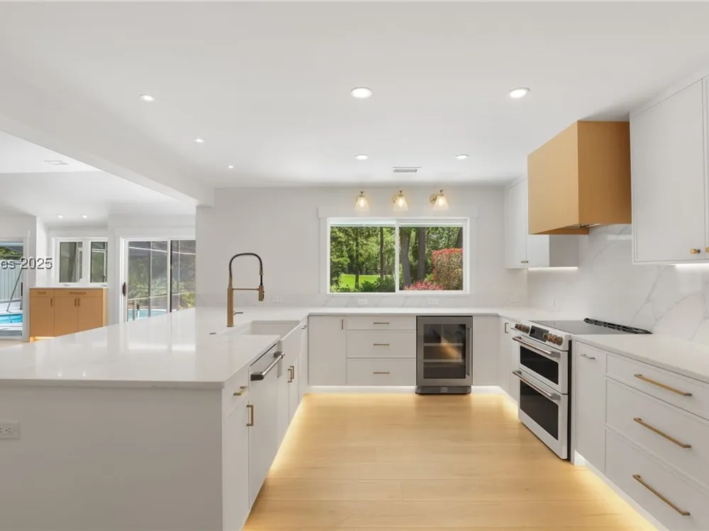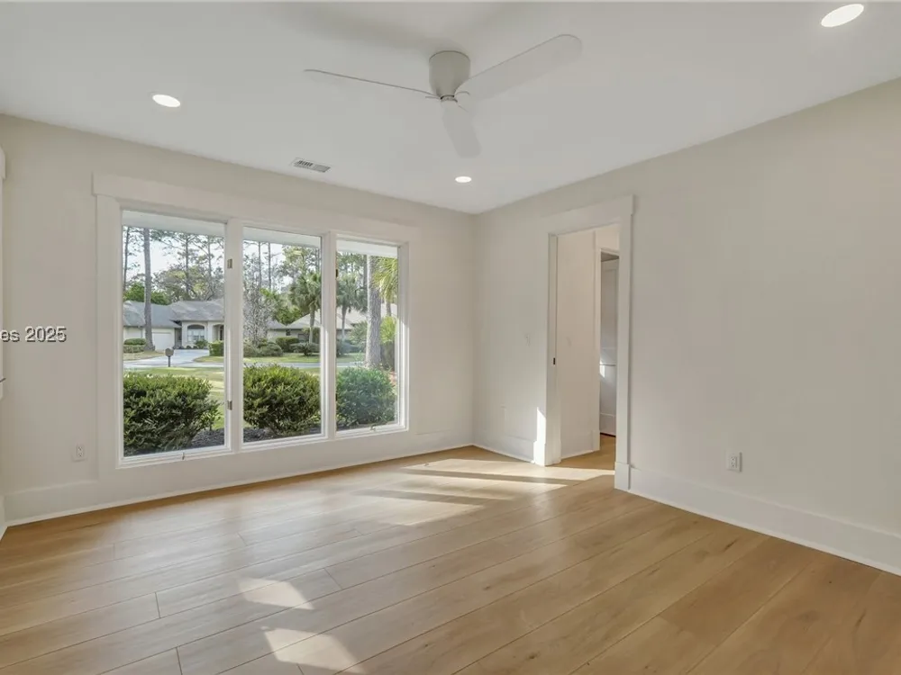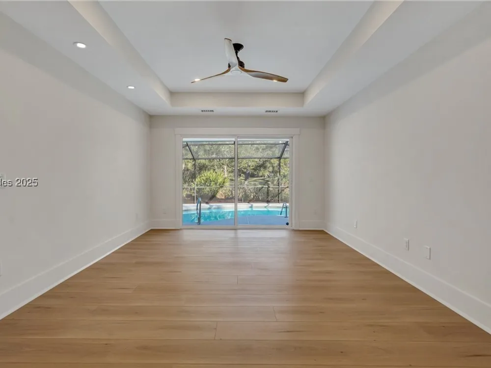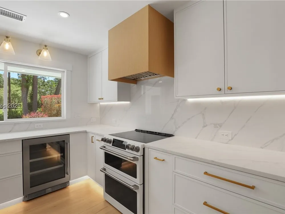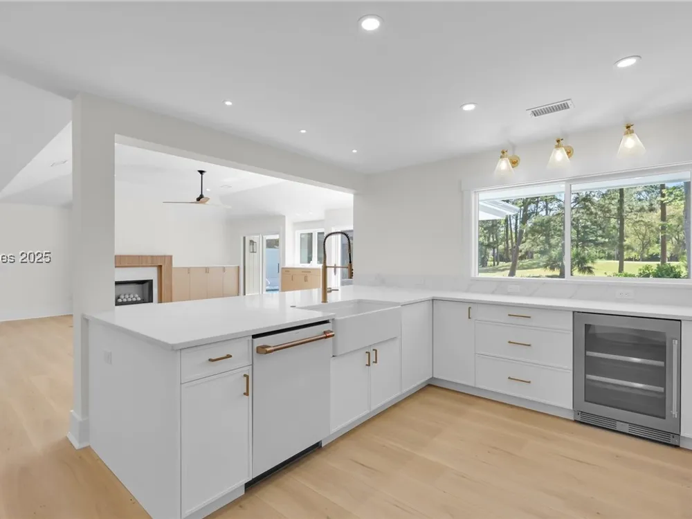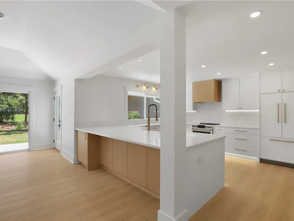 Exquisitely renovated with elegant appointments and elevated finishes, this Hilton Head Plantation home offers the best of island living in 2,623 square feet of sophistication with views out to the third green at Bear Creek Golf Club.This golf scenery entrances through wooded sightlines that provide incredible privacy to the back yards opulent outdoor spaces. Completely screened in for year-round enjoyment, the resort-style swimming pool sparkles beneath the shade of a high tree canopy. Encircling the home, a wide patio allows plenty of room for outdoor dining, grilling and entertaining while gazing out on the course.Within the home, renovations have lent an atmosphere of modern coastal flair to a gorgeous layout that puts a premium on lush natural light and open airiness. In the great room at the heart of the home, wide-plank hardwood flooring runs from custom built-in cabinetry and a wide gas fireplace at one end and into the gourmet kitchen. In between, a custom-built dry bar looks out on the outdoor living spaces.Beautifully opened to the main living space for effortless entertaining, the kitchen is a hosts dream, with its wide center island, plentiful counterspace, flat cooktop range beneath range hood, beverage fridge, panel refrigerator and expansive back kitchen in the nearby laundry room. And throughout, the space looks as well as it cooks, with marbled granite backsplashes and brushed metallic hardware that cut a modern profile.The single-story layout of the home spirals away from the main living spaces into quieter, more intimate corners for relaxation. A spacious office can also serve as a flex space, while a pair of bedrooms each enjoy spacious closets and full baths. The primary suite is a getaway unto itself, with its soaring tray ceiling guiding the eye toward private access to the screened lanai. At the far end of this generously sized suite, modern style and spaciousness combine for an en suite bath that could serve as a personal spa getaway. A massive walk-in shower with custom stone work and dual wall-mounted vanities exult in modern stye while indulging with sheer comfort. With golf living just around the bend and inspired renovations that create an atmosphere of modern sophistication, this property represents your chance to live the Hilton Head Island lifestyle of your dreams.