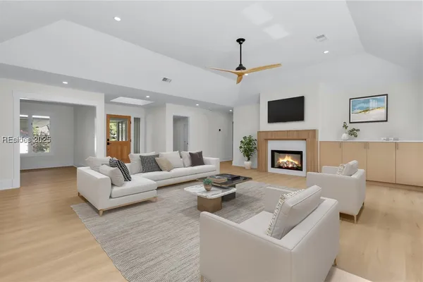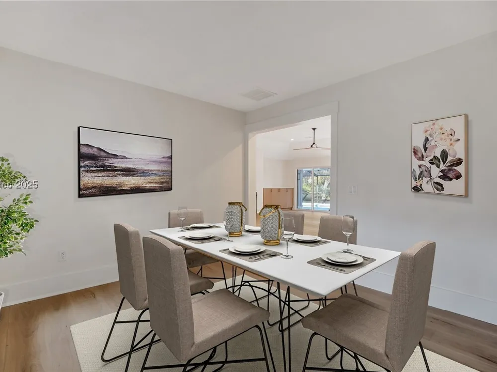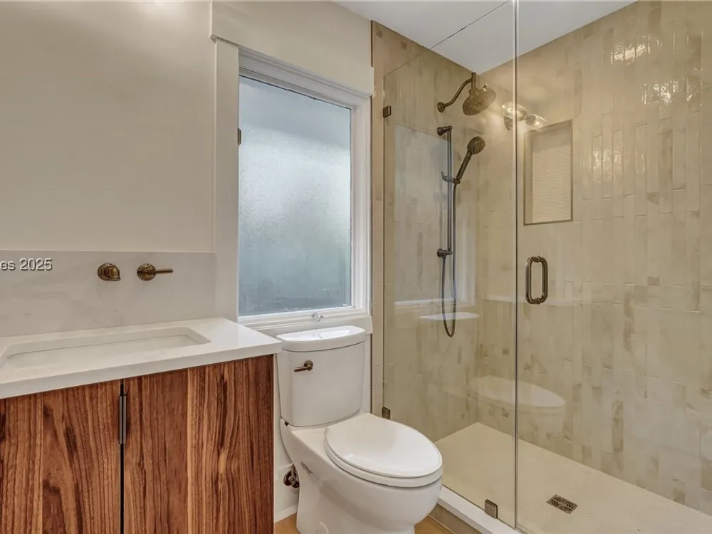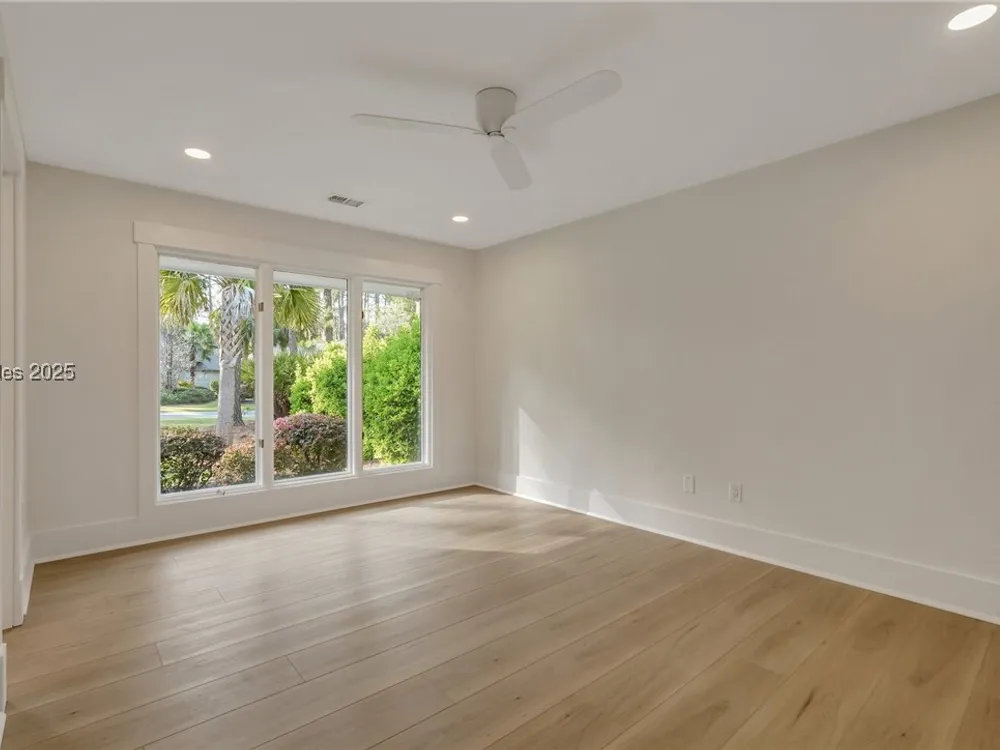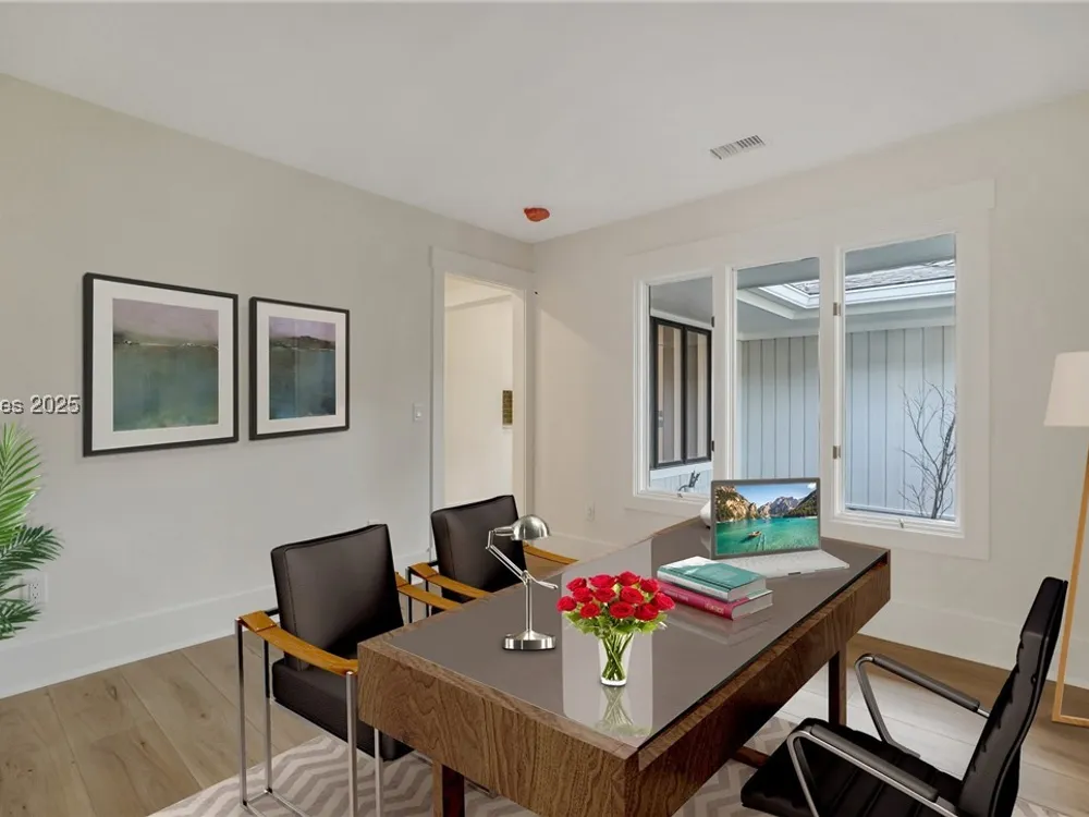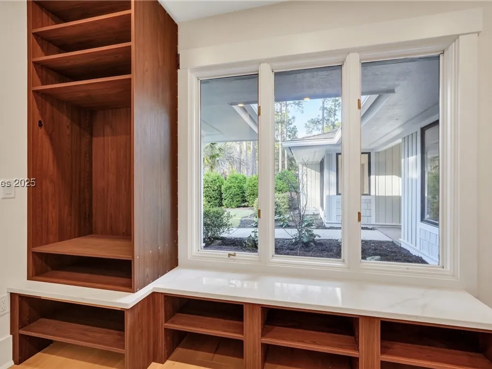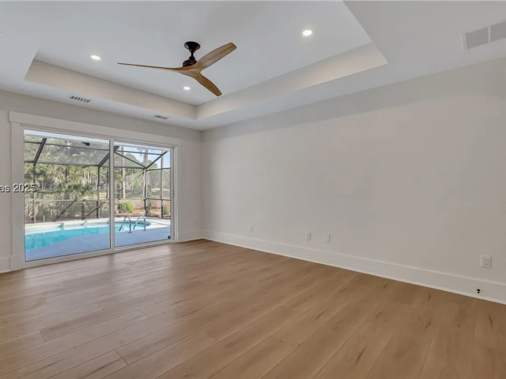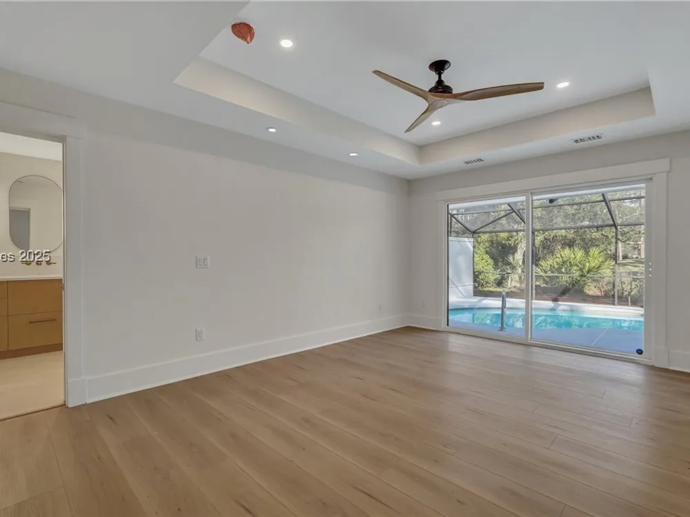 Exquisitely renovated with elegant appointments and elevated finishes, this Hilton Head Plantation home offers the best of island living in 2,623 square feet of sophistication with views out to the third green at Bear Creek Golf Club.This golf scenery entrances through wooded sightlines that provide incredible privacy to the back yards opulent outdoor spaces. Completely screened in for year-round enjoyment, the resort-style swimming pool sparkles beneath the shade of a high tree canopy. Encircling the home, a wide patio allows plenty of room for outdoor dining, grilling and entertaining while gazing out on the course.Within the home, renovations have lent an atmosphere of modern coastal flair to a gorgeous layout that puts a premium on lush natural light and open airiness. In the great room at the heart of the home, wide-plank hardwood flooring runs from custom built-in cabinetry and a wide gas fireplace at one end and into the gourmet kitchen. In between, a custom-built dry bar looks out on the outdoor living spaces.Beautifully opened to the main living space for effortless entertaining, the kitchen is a hosts dream, with its wide center island, plentiful counterspace, flat cooktop range beneath range hood, beverage fridge, panel refrigerator and expansive back kitchen in the nearby laundry room. And throughout, the space looks as well as it cooks, with marbled granite backsplashes and brushed metallic hardware that cut a modern profile.The single-story layout of the home spirals away from the main living spaces into quieter, more intimate corners for relaxation. A spacious office can also serve as a flex space, while a pair of bedrooms each enjoy spacious closets and full baths. The primary suite is a getaway unto itself, with its soaring tray ceiling guiding the eye toward private access to the screened lanai. At the far end of this generously sized suite, modern style and spaciousness combine for an en suite bath that could serve as a personal spa getaway. A massive walk-in shower with custom stone work and dual wall-mounted vanities exult in modern stye while indulging with sheer comfort. With golf living just around the bend and inspired renovations that create an atmosphere of modern sophistication, this property represents your chance to live the Hilton Head Island lifestyle of your dreams.