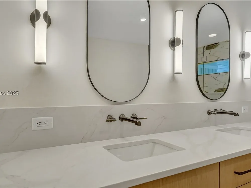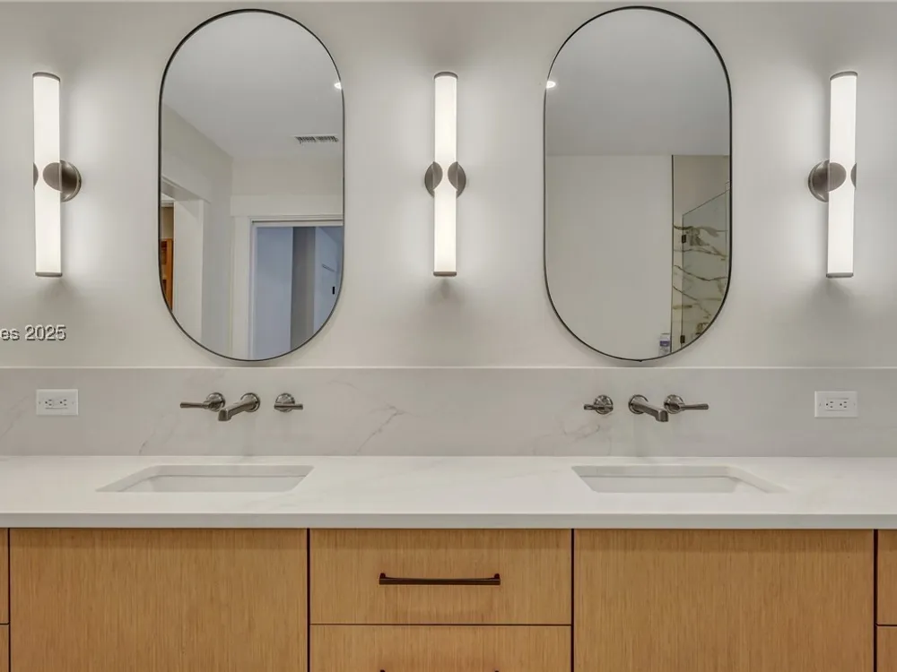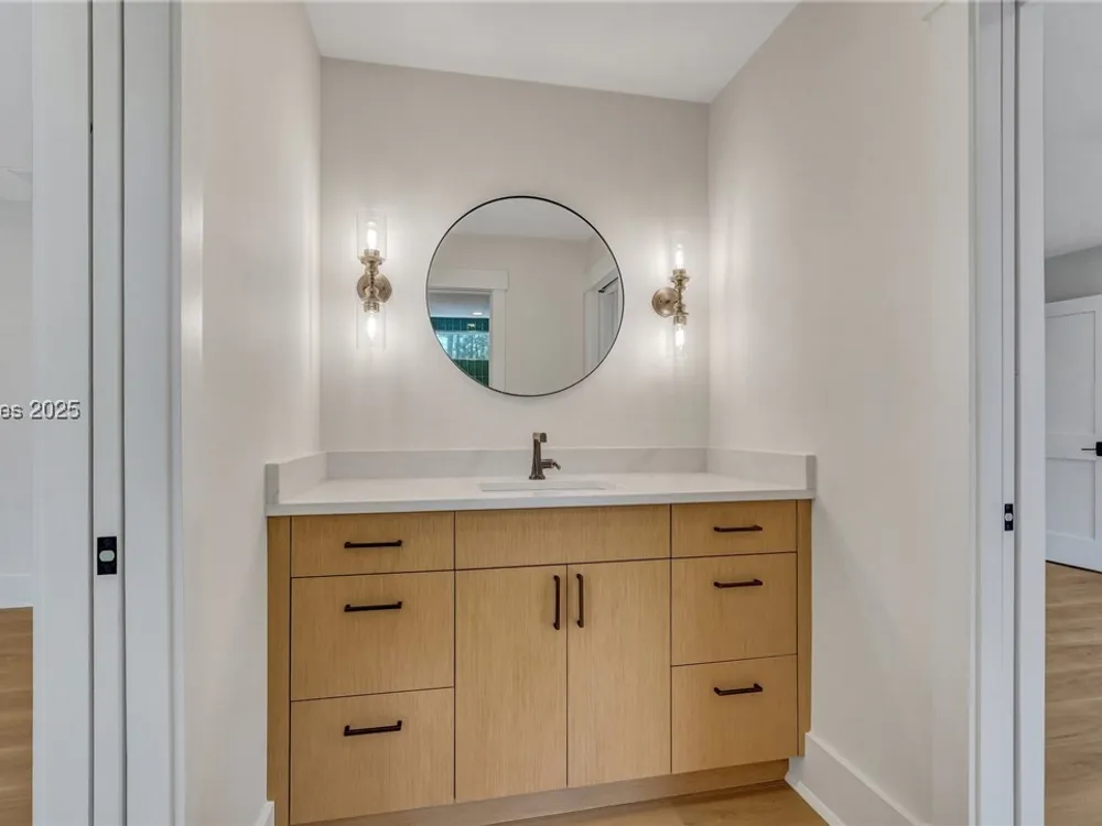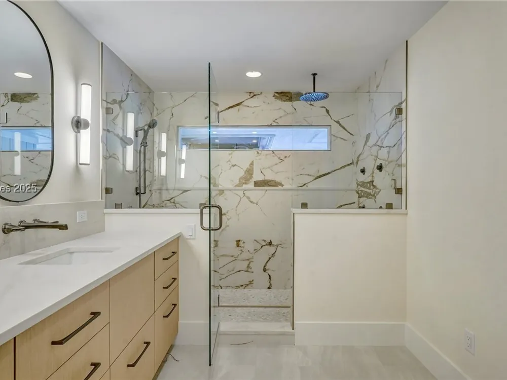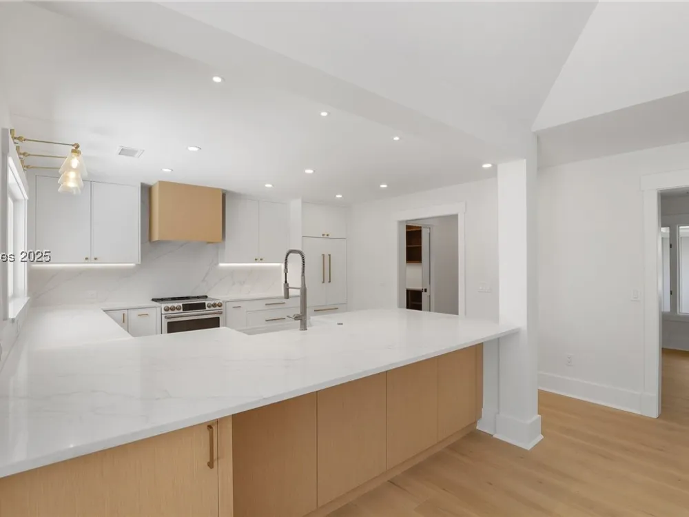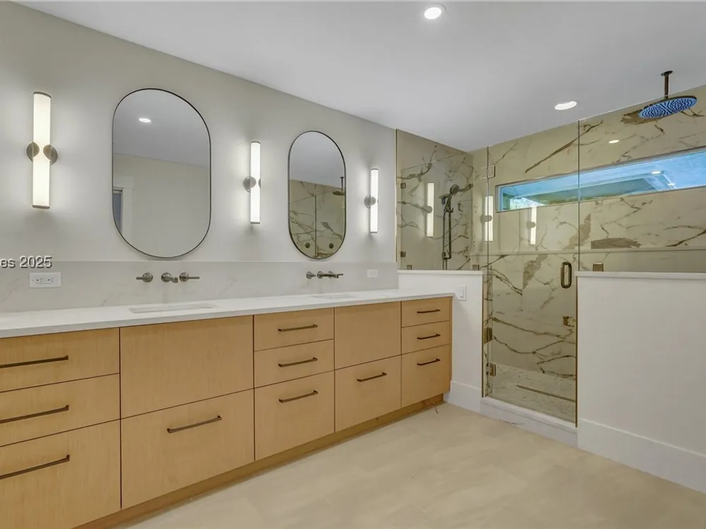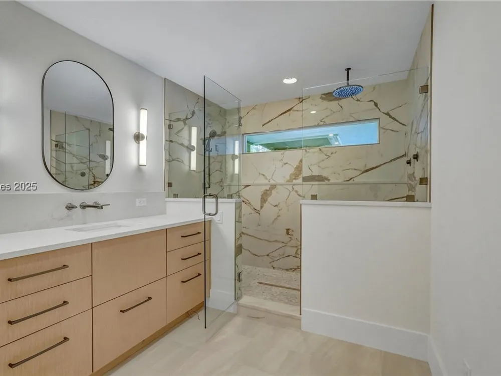 Exquisitely renovated with elegant appointments and elevated finishes, this Hilton Head Plantation home offers the best of island living in 2,623 square feet of sophistication with views out to the third green at Bear Creek Golf Club.This golf scenery entrances through wooded sightlines that provide incredible privacy to the back yards opulent outdoor spaces. Completely screened in for year-round enjoyment, the resort-style swimming pool sparkles beneath the shade of a high tree canopy. Encircling the home, a wide patio allows plenty of room for outdoor dining, grilling and entertaining while gazing out on the course.Within the home, renovations have lent an atmosphere of modern coastal flair to a gorgeous layout that puts a premium on lush natural light and open airiness. In the great room at the heart of the home, wide-plank hardwood flooring runs from custom built-in cabinetry and a wide gas fireplace at one end and into the gourmet kitchen. In between, a custom-built dry bar looks out on the outdoor living spaces.Beautifully opened to the main living space for effortless entertaining, the kitchen is a hosts dream, with its wide center island, plentiful counterspace, flat cooktop range beneath range hood, beverage fridge, panel refrigerator and expansive back kitchen in the nearby laundry room. And throughout, the space looks as well as it cooks, with marbled granite backsplashes and brushed metallic hardware that cut a modern profile.The single-story layout of the home spirals away from the main living spaces into quieter, more intimate corners for relaxation. A spacious office can also serve as a flex space, while a pair of bedrooms each enjoy spacious closets and full baths. The primary suite is a getaway unto itself, with its soaring tray ceiling guiding the eye toward private access to the screened lanai. At the far end of this generously sized suite, modern style and spaciousness combine for an en suite bath that could serve as a personal spa getaway. A massive walk-in shower with custom stone work and dual wall-mounted vanities exult in modern stye while indulging with sheer comfort. With golf living just around the bend and inspired renovations that create an atmosphere of modern sophistication, this property represents your chance to live the Hilton Head Island lifestyle of your dreams.