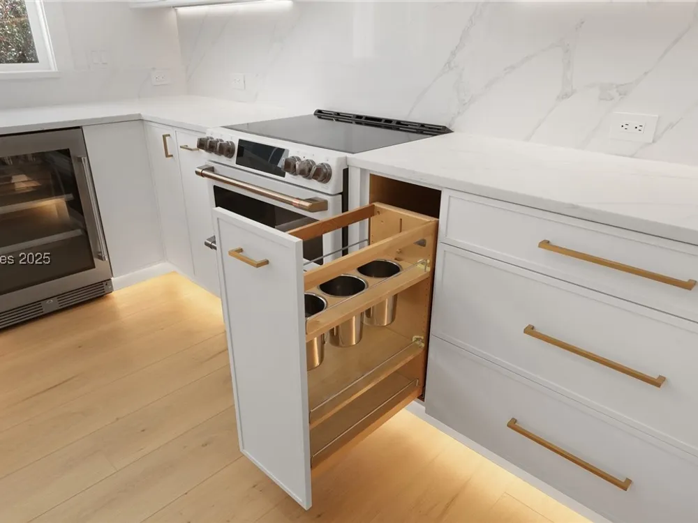 - Dryer, Dishwasher, Disposal, Microwave, Range, Refrigerator, Wine Cooler, Washer