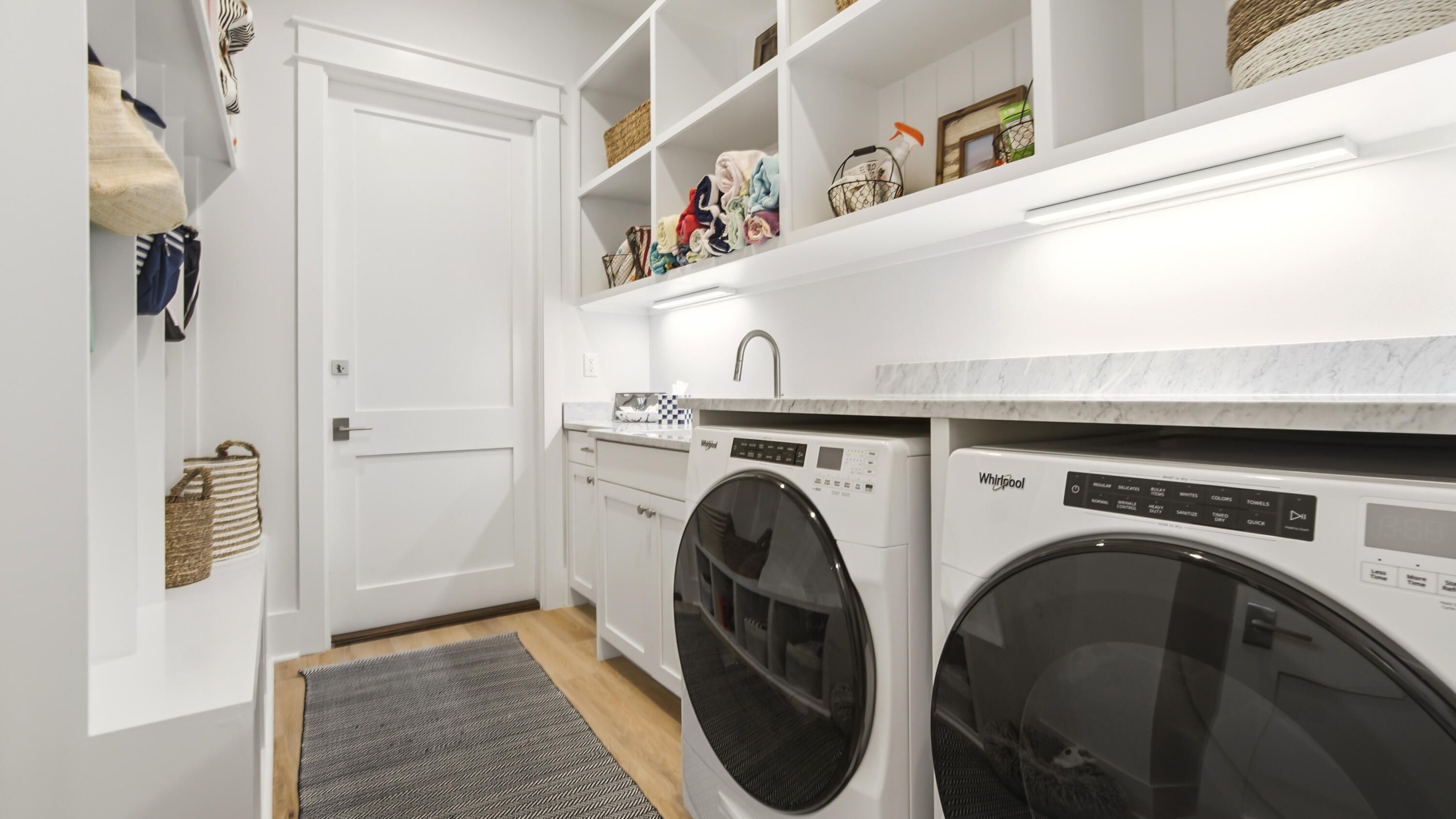 - Dishwasher, Disposal, Dryer, Microwave, Range Hood, Washer, Tankless Water Heater, Electric Garage Door, Refrigerator, Ice Maker, Smoke Detector, Gas Oven, Wine Refrigerator