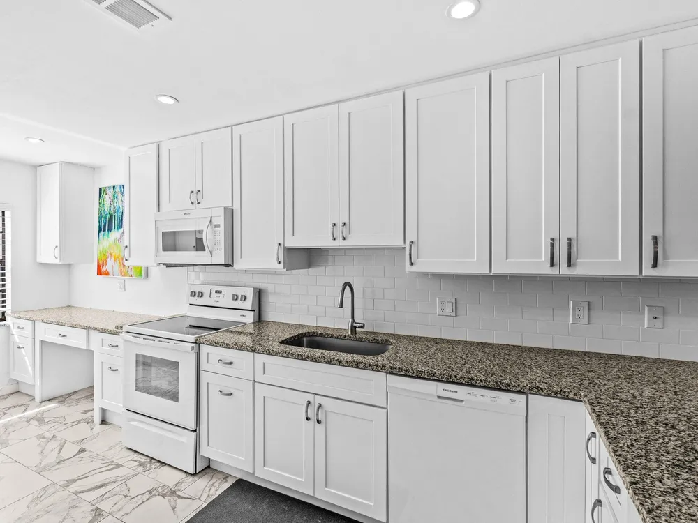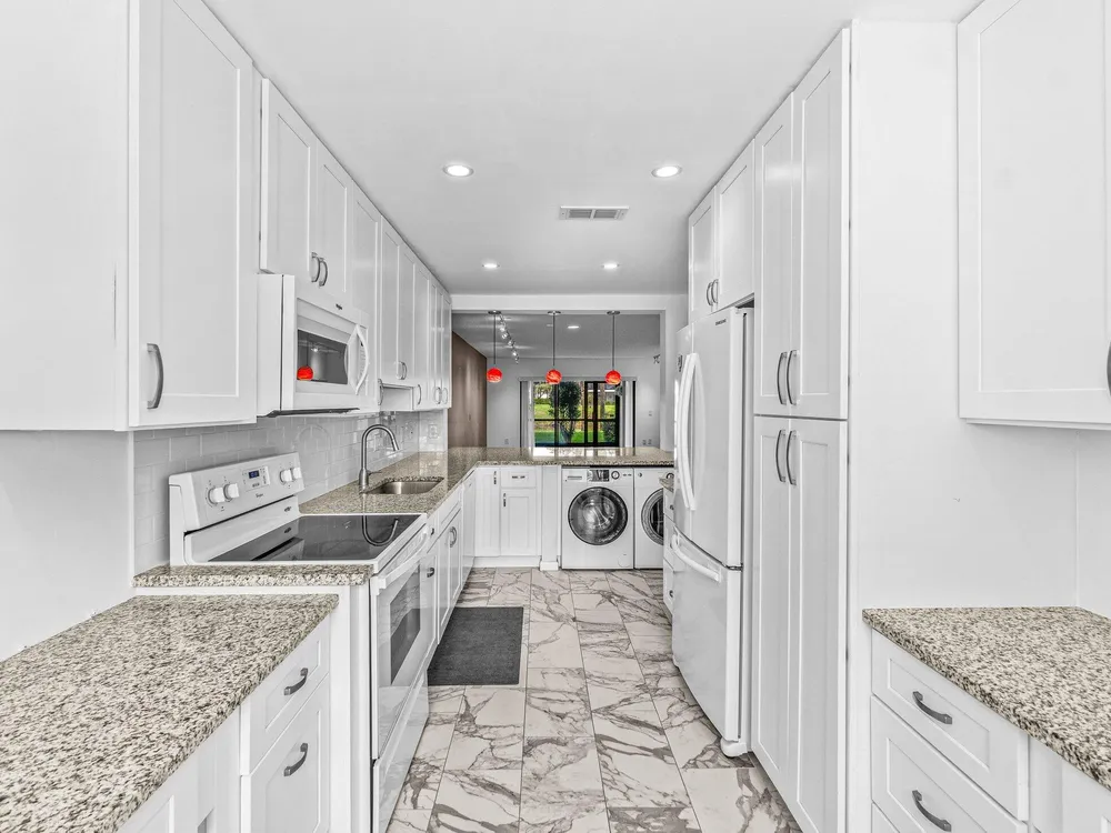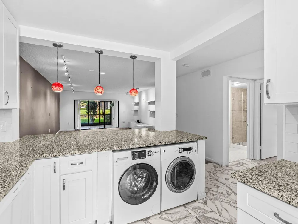 This move-in ready, first floor condo has been fully updated and features 2 bedrooms, 2 baths, and stunning west-facing water views. Step inside to an open-concept contemporary kitchen with upgraded quartz countertops and custom cabinetry, spacious living and dining space, oversized primary suite with private bath, and outfitted walk-in closet. Enjoy beautiful Florida sunsets from your private screened porch and unwind at the Southport pool and clubhouse, just steps away from your front door. Some photos are virtually staged.