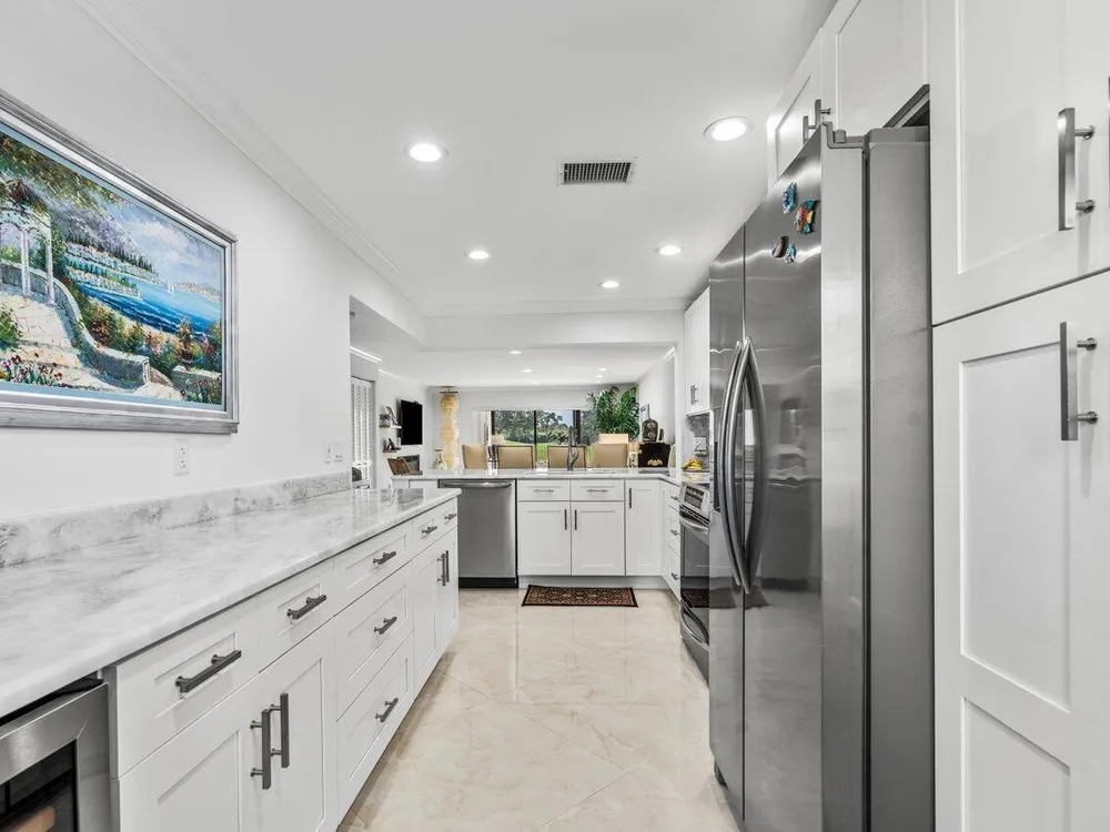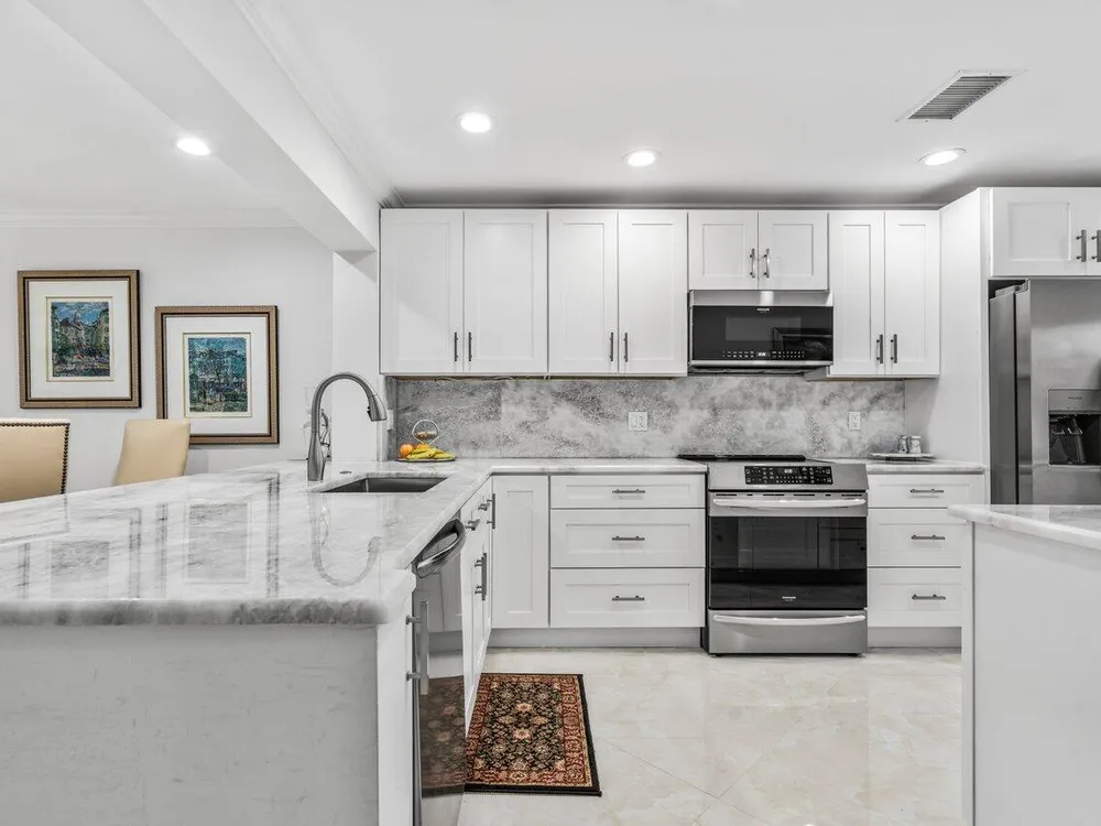 Beautifully renovated downstairs 2-bedroom 2 bath condo with lake and golf views. Hunters Run Country Club has 3 Championship golf courses and a Raquet complex second to none. Located just 3 miles from downtown Delray and 4 miles to the ocean, it can't be beat!