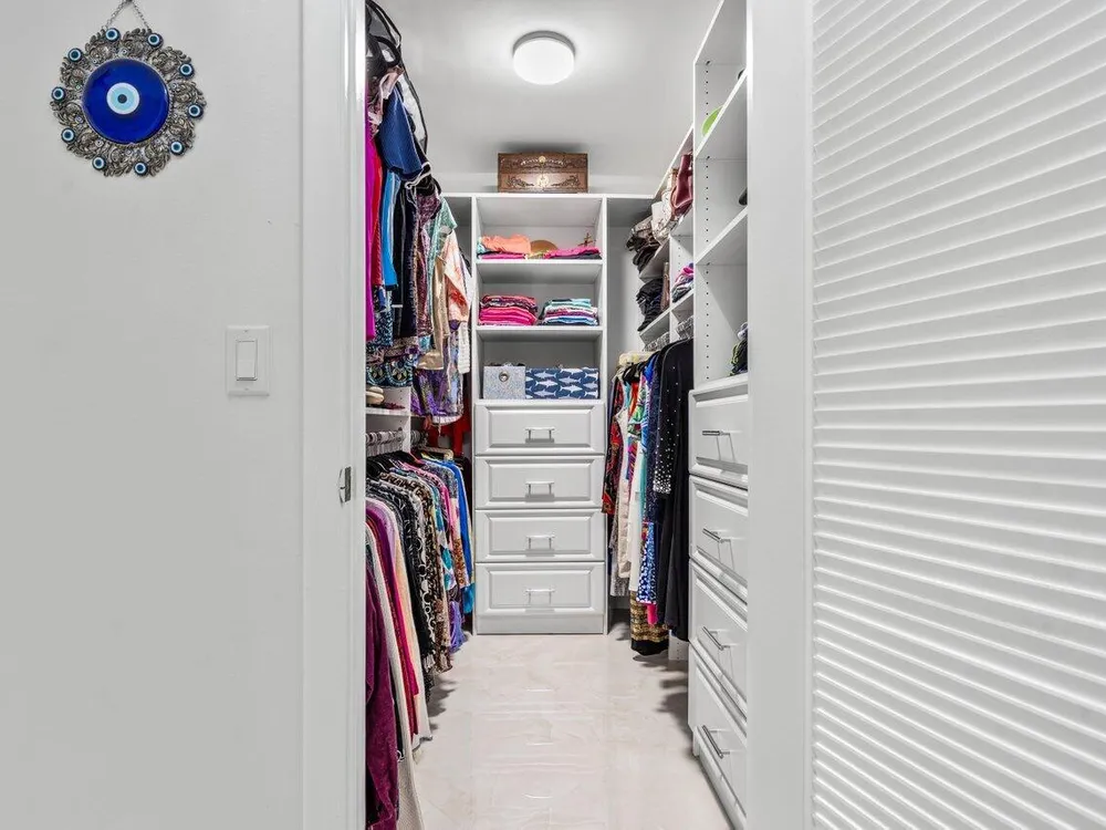 - Built-in Shelving, Closet Cabinetry, Decorative Fireplace, Kitchen Island, Split Bedrooms, Walk-In Closet(s), Living/Dining Room, Eat-in Kitchen, Blinds, Primary Downstairs, Separate Shower