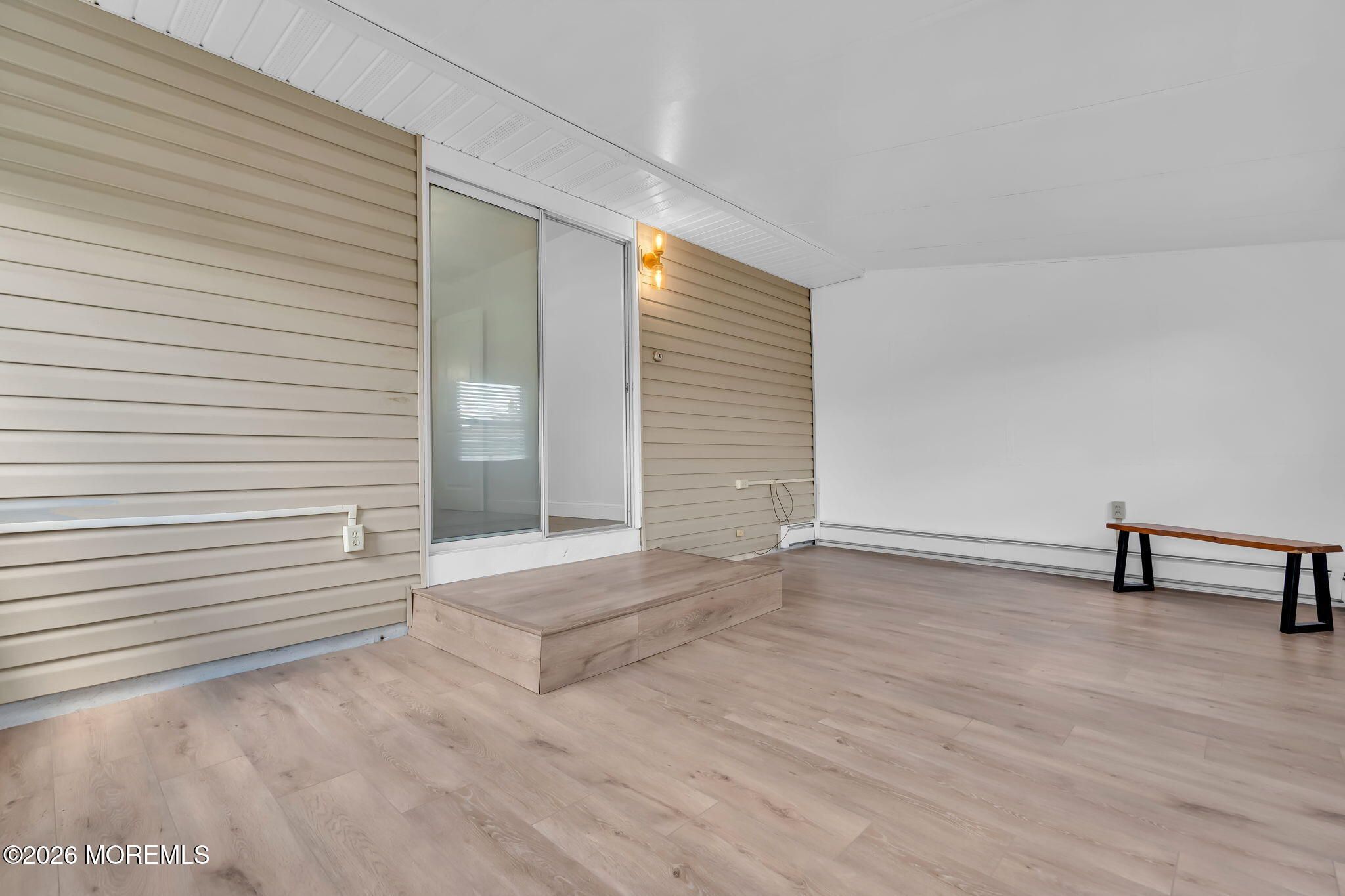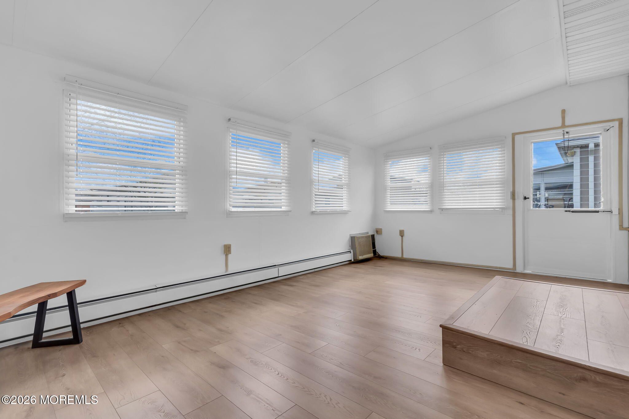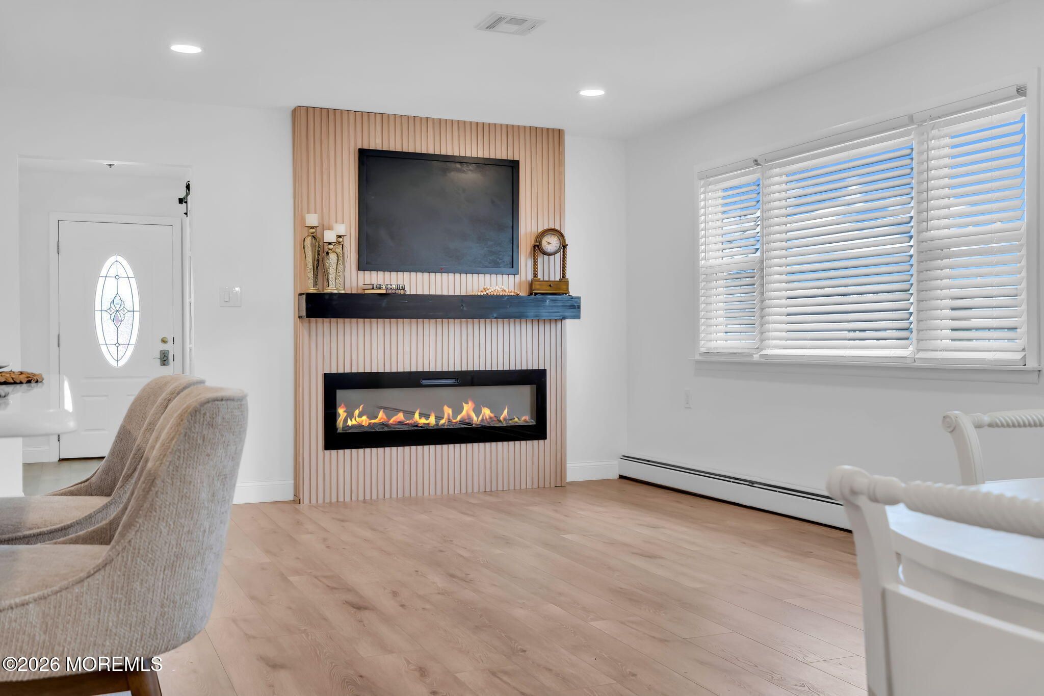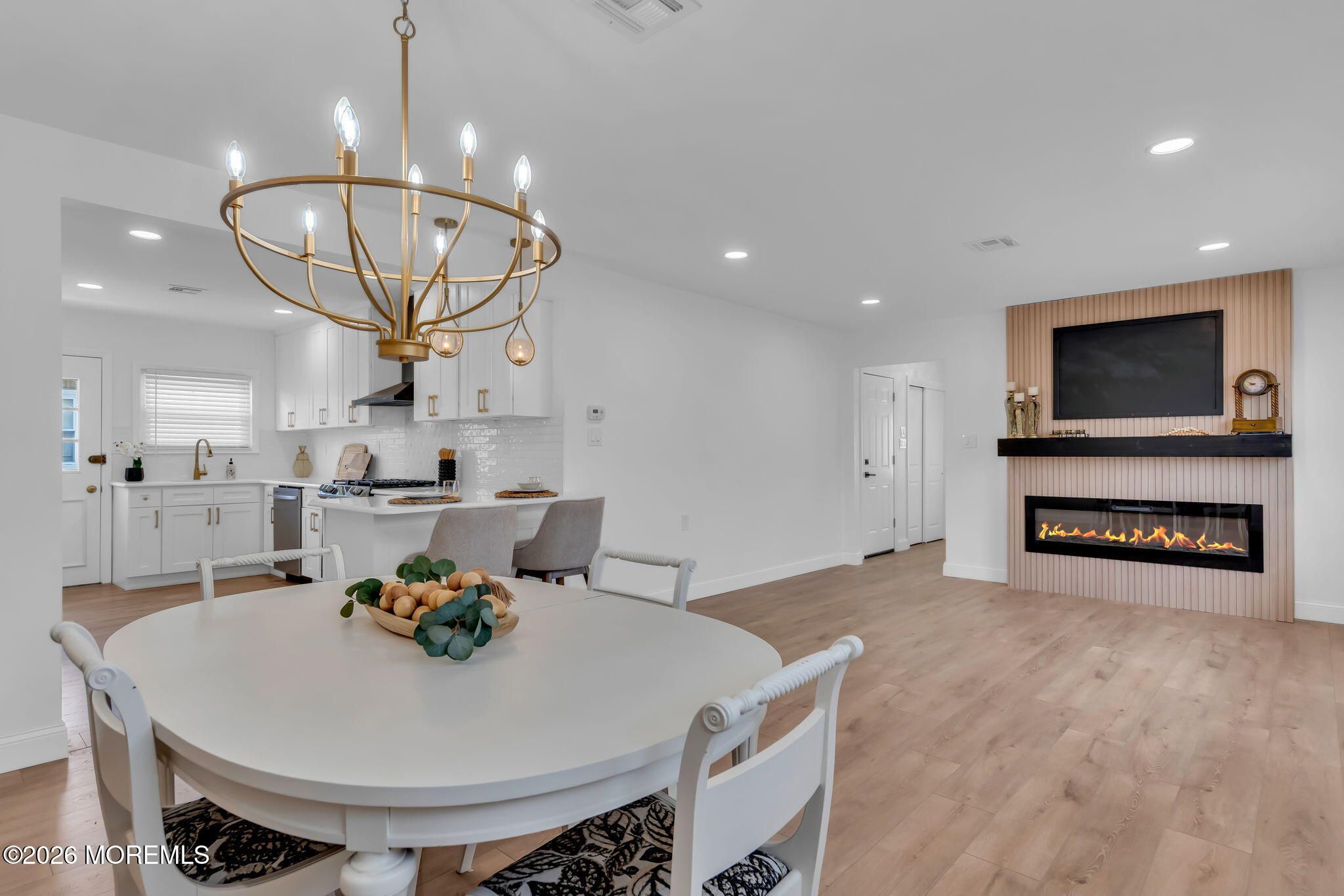 Beautiful 2BR, 2BA Sarasota model in the sought-after Holiday City Berkeley 55+ community! Approx 1,320 sqft of living space! Every detail in this home has been thoughtfully curated, showcasing high-end finishes and stylish design throughout. From gold fixtures to a stunning marble shower with custom glass doors and marble flooring, the craftsmanship is undeniable. A versatile den with barn doors offers the perfect space for a home office or possible 3rd bedroom. The living room features a striking accordion-style accent wall with an electric fireplace, creating a warm and modern focal point. The kitchen is a showstopper with quartz countertops, stainless steel appliances, decorative backsplash, round pendant lighting, and a peninsula with bar seating. Enjoy a beautifully designed dining area complete with a tiled wine and coffee bar nook and built-in wine fridge, perfect for entertaining. The spacious 4-season Florida room provides additional living space, ideal as a rec room or lounge, with dual access to the backyard. An attached bonus room offers endless possibilities for hobbies, art, or a workspace. Additional features include Laminate flooring throughout, fandeliers, recessed lighting, baseboard gas heat, and a primary suite with private bath and dual closets. Located in a vibrant community offering a clubhouse, pool, and amenities, all just a short drive to the Jersey Shore, shopping, and dining. This is truly a one-of-a-kind home--move right in and enjoy!