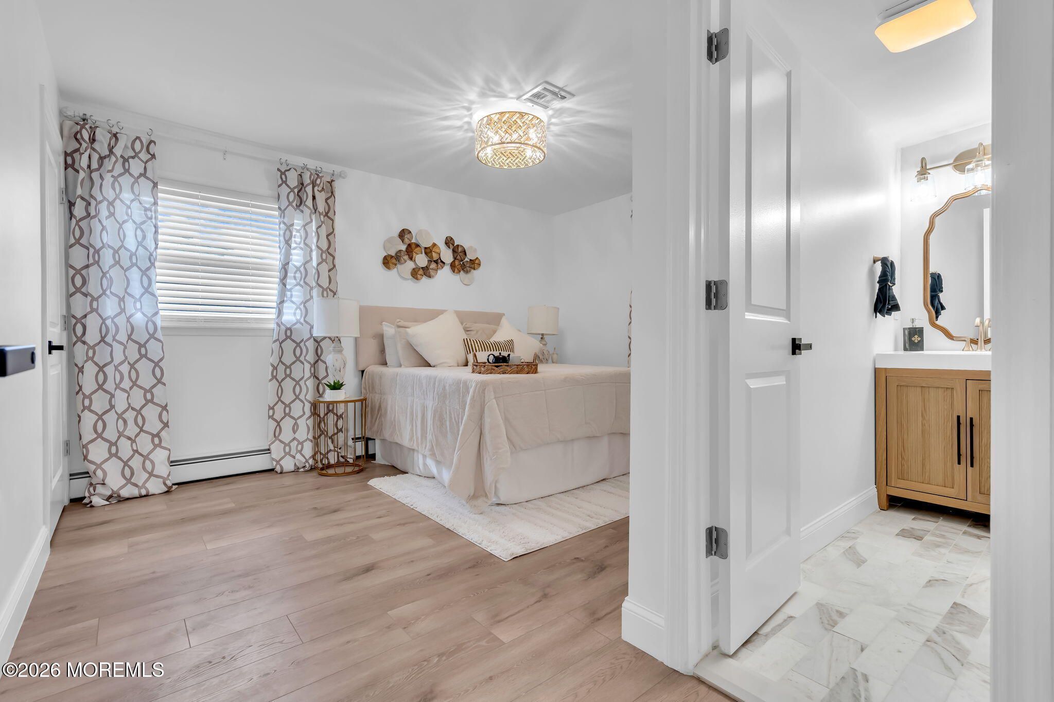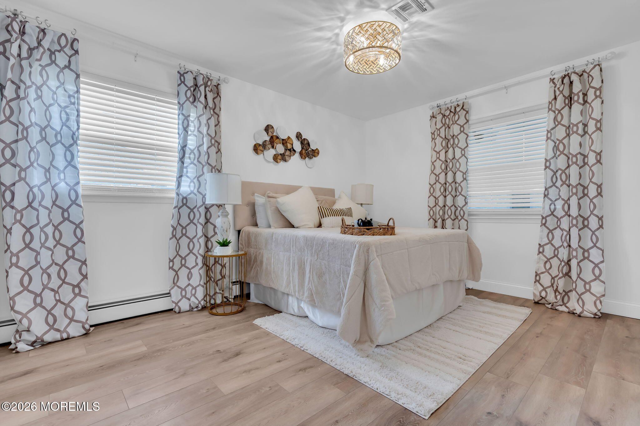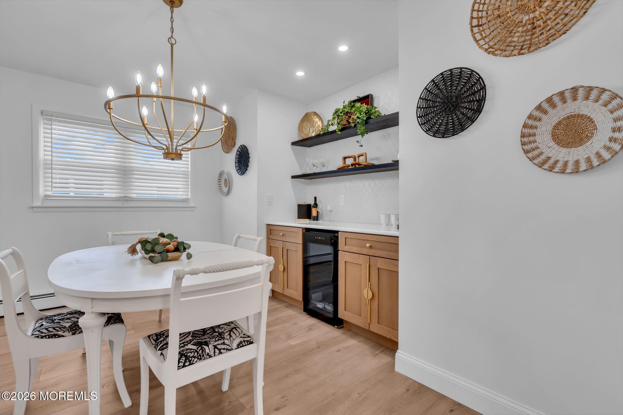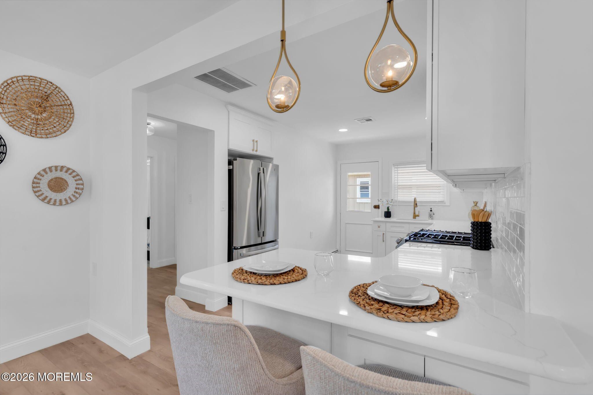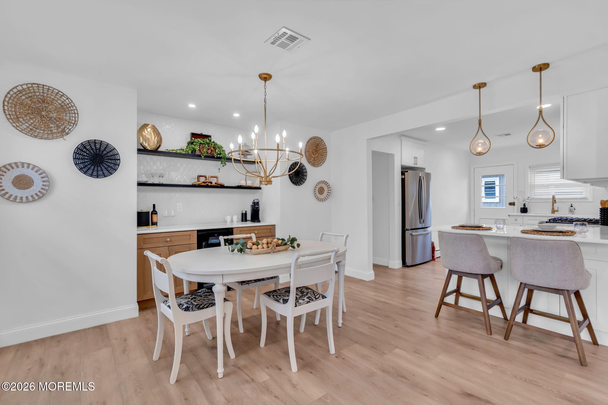 Beautiful 2BR, 2BA Sarasota model in the sought-after Holiday City Berkeley 55+ community! Approx 1,320 sqft of living space! Every detail in this home has been thoughtfully curated, showcasing high-end finishes and stylish design throughout. From gold fixtures to a stunning marble shower with custom glass doors and marble flooring, the craftsmanship is undeniable. A versatile den with barn doors offers the perfect space for a home office or possible 3rd bedroom. The living room features a striking accordion-style accent wall with an electric fireplace, creating a warm and modern focal point. The kitchen is a showstopper with quartz countertops, stainless steel appliances, decorative backsplash, round pendant lighting, and a peninsula with bar seating. Enjoy a beautifully designed dining area complete with a tiled wine and coffee bar nook and built-in wine fridge, perfect for entertaining. The spacious 4-season Florida room provides additional living space, ideal as a rec room or lounge, with dual access to the backyard. An attached bonus room offers endless possibilities for hobbies, art, or a workspace. Additional features include Laminate flooring throughout, fandeliers, recessed lighting, baseboard gas heat, and a primary suite with private bath and dual closets. Located in a vibrant community offering a clubhouse, pool, and amenities, all just a short drive to the Jersey Shore, shopping, and dining. This is truly a one-of-a-kind home--move right in and enjoy!