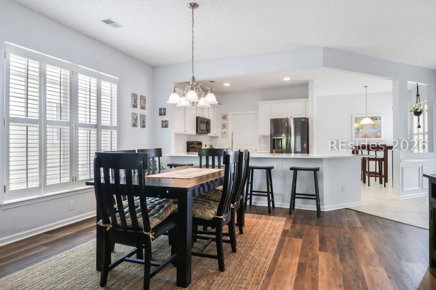Welcome to this beautifully maintained and thoughtfully updated Egret model, ideally situated on a quiet cul-de-sac street in Sun City Hilton Head. This move-in-ready home features a stunning eat-in kitchen with a spacious quartz breakfast bar/peninsula and newer appliances installed in 2023-perfect for both everyday living and entertaining. Additional highlights include a NEW roof installed in March 2026, Gutter Guards, an indoor laundry room with washer and dryer (2022), and hurricane shutters for added peace of mind. Step outside to a lovely, private patio and backyard-perfect for enjoying the serene surroundings. The open-concept floor plan offers a generous great room with additional dining space, creating an inviting flow throughout. Enjoy low-maintenance living with luxury vinyl plank and tile flooring throughout-no carpet anywhere. Elegant plantation shutters add timeless charm and style. This home offers two bedrooms, two baths, plus a large, dedicated office, providing flexibility for work hobbies or extra guest quarters. The primary suite is a relaxing retreat with a bay window, soaking tub, separate shower, and a spacious walk-in closet. Sun City features five outdoor pools, three indoor pools, four fitness centers, three golf courses, over 200 clubs, multiple events throughout the year such as holiday gatherings and dances, famous comedians, plays and shows. Sun City Hilton Head is currently undergoing a $50 million expansion. This new phase features a state-of-the-art amenity center, & a 41,000-42,000+ sq ft Clubhouse. The Two-Story Fitness Center has 15,000+ sq. ft. facility with an indoor walking track & a multi-sports court. Try your hand at painting, ceramics, sewing, or photography. Play bocce ball, croquet, tennis, pickleball, billiards, Ping-Pong, participate in an array of fitness classes, the fun never ends! The opportunities are endless!