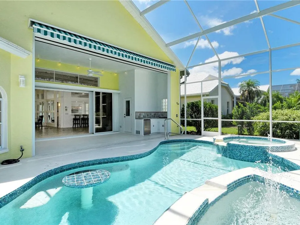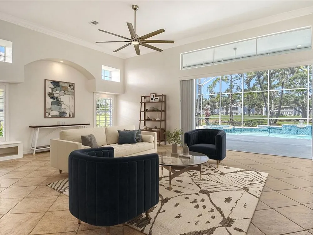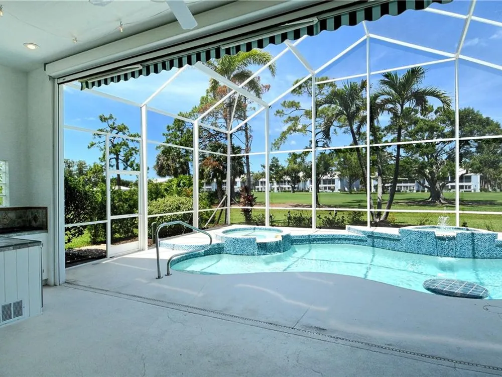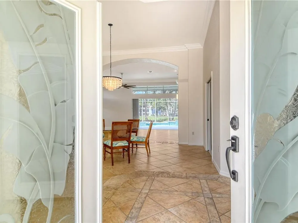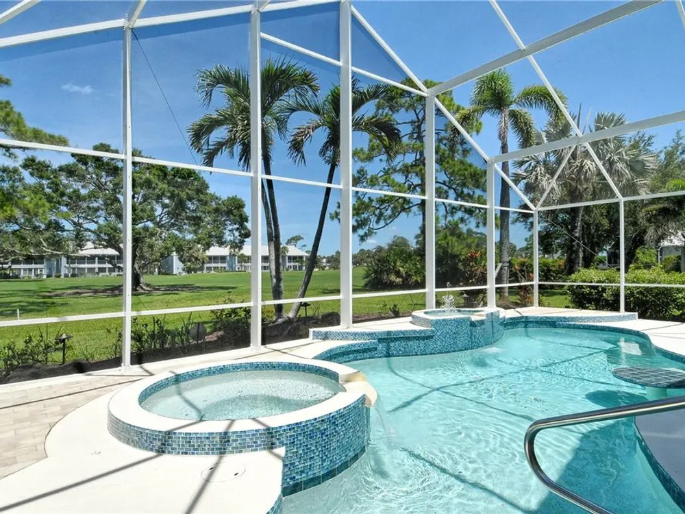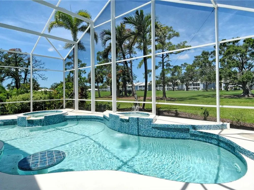 This beautiful MAINTENANCE FREE pool home sits right on the 2nd hole of the Plantation Golf & CC Bobcat course and has been lovingly cared for and recently refreshed throughout. Live close to Wellen Park but WITHOUT A CDD FEE! FRESH PAINT, NEW PLANTATION SHUTTERS, UPDATED LIGHTING, and brand-new LANDSCAPING (2024) give it a clean, modern feel from the start. The fully REDONE POOL AREA (2024) is a true highlight—featuring sparkling glass tile, a relaxing spa and fountain, newer pool pump, and reconditioned heater. Whether you're lounging in the in-pool bar seats, cooking in the outdoor kitchen, or catching the game under the retractable awning, this space was made for enjoying the Florida lifestyle. Inside, the open living and dining areas offer great natural light and GOLF COURSE VIEWS. The spacious primary suite has direct pool access and a large ensuite with jetted tub, walk-in shower, double sinks, and a big walk-in closet. All bedrooms feature new (2025) antimicrobial carpet. The third bedroom offers flexibility for an office or guest room. The kitchen is bright and functional with a wine rack, under-cabinet lighting, reverse osmosis system, and a built-in banquette with storage. You'll also love the versatile extra space that works great as a butler’s pantry, mudroom, or home office. The two-car garage offers plenty of storage, plus attic access. ***An ELECTRIC HURRICANE SCREEN offers peace of mind and doubles as a sunshade for added comfort.*** This home was treasured by its previous owners, and it shows. Come see for yourself why life at The Plantation is so special—friendly neighbors, great amenities, and a place you’ll be proud to call home.