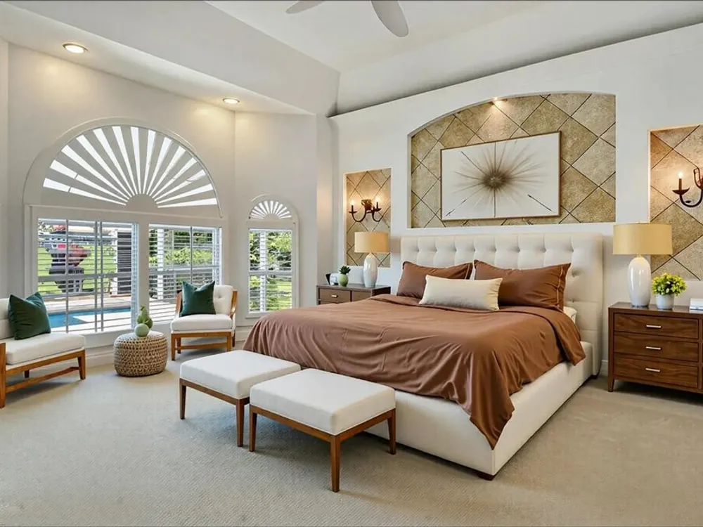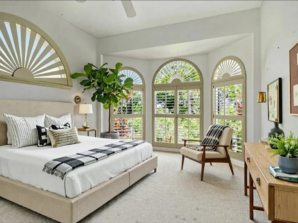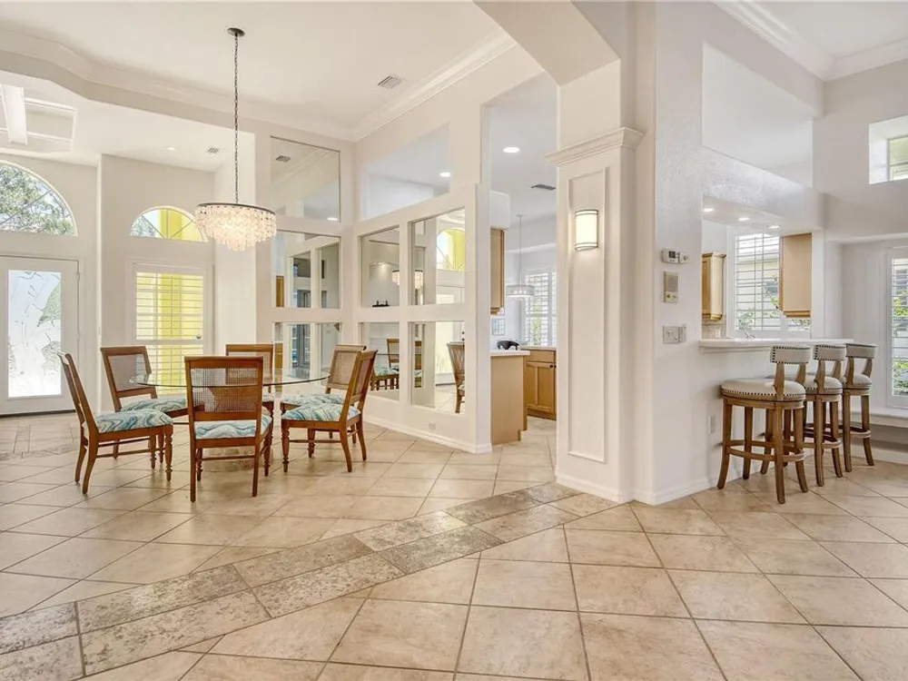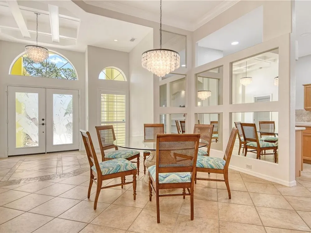 - Ceiling Fan(s), Coffered Ceiling(s), Eat-in Kitchen, High Ceilings, Main Level Primary, Walk-In Closet(s), Window Treatments