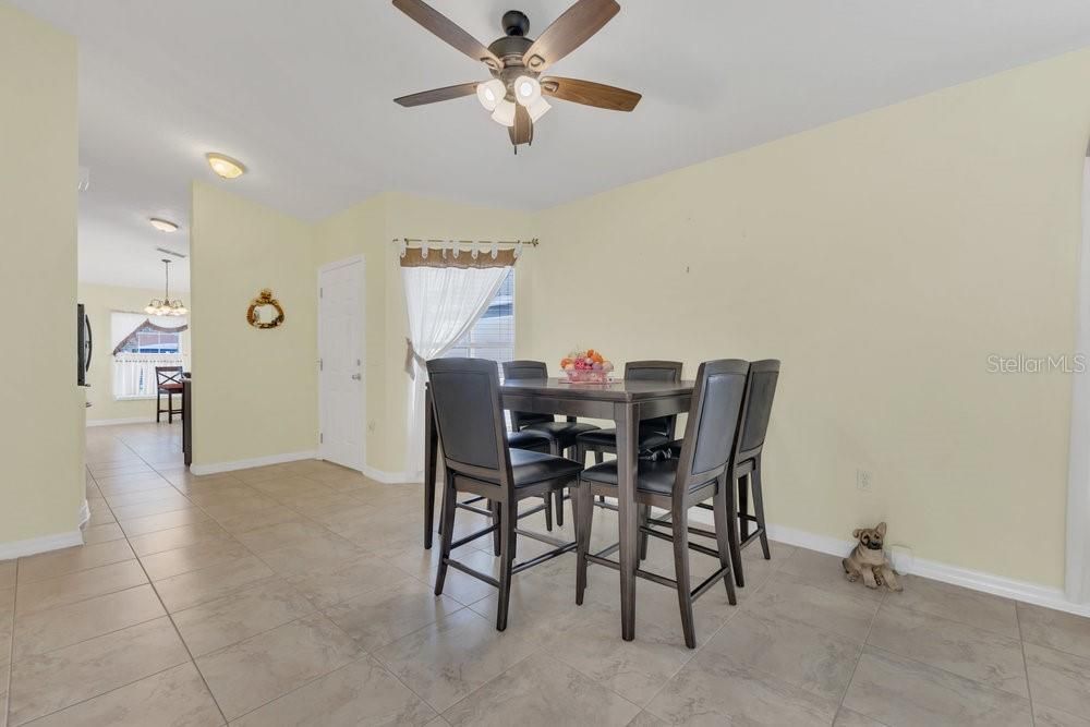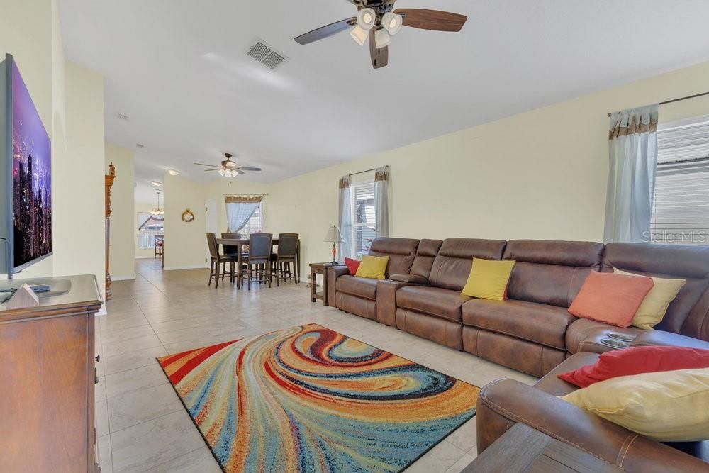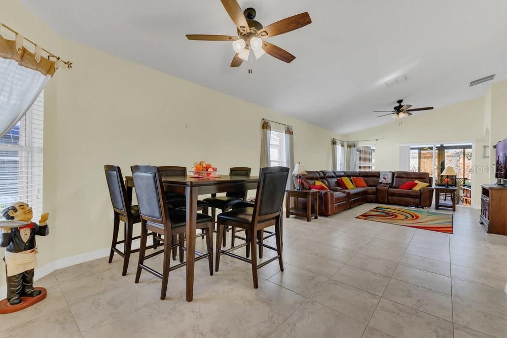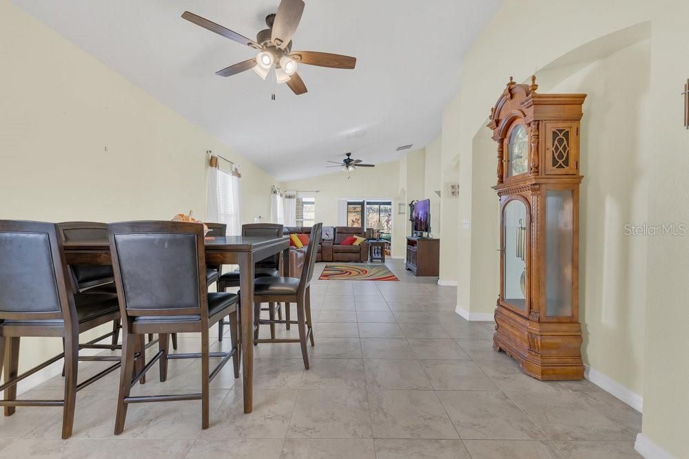 - Ceiling Fan(s), Eat-in Kitchen, High Ceilings, Living/Dining Room, Open Floorplan, Main Level Primary, Split Bedrooms, Thermostat, Vaulted Ceiling(s), Walk-In Closet(s), Window Treatments