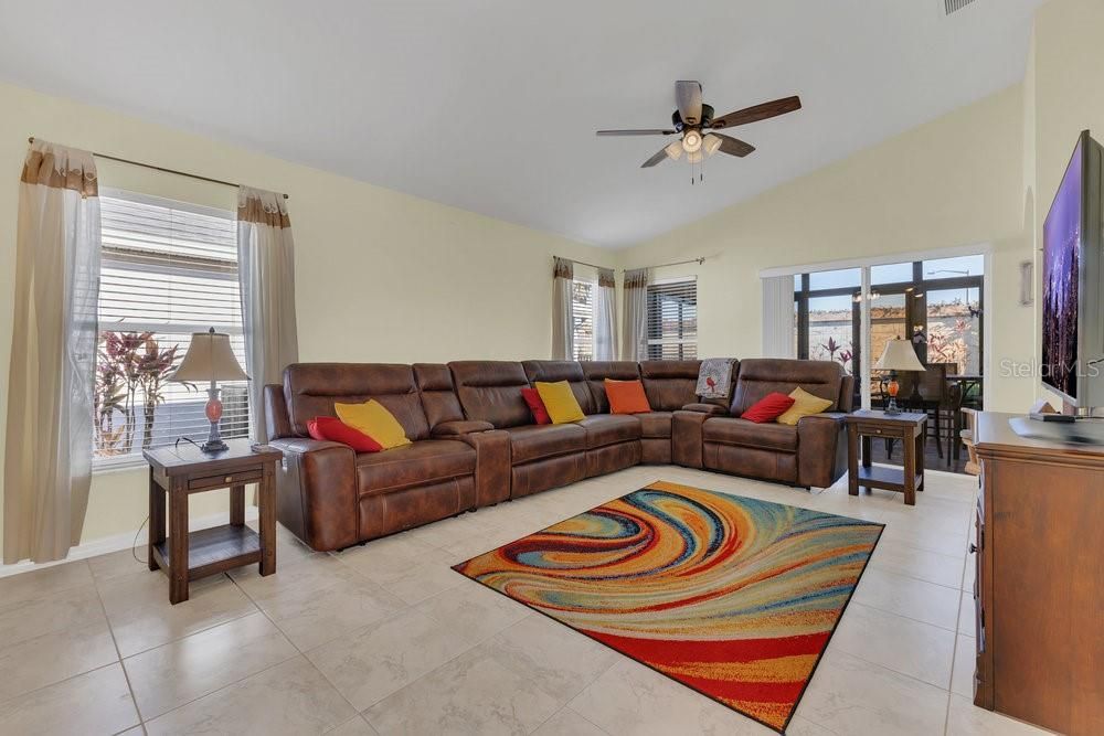 Under contract-accepting backup offers. BRAND NEW ROOF! CHARMING HOME IN THE AWARD WINNING COMMUNITY SOLIVITA | Welcome to the nationally award-winning community Solivita. This 2bd/2ba is uniquely private, as the front door lies down your walkway to the west side of the home and includes a screen enclosed entry. This home has been meticulously kept and has been updated with countertops in the kitchen and master bathroom. This open floorplan gem flows seamlessly throughout the living room/kitchen combo, with views out through a large closed-in screen lanai where you will spend many nights enjoying a sizable back yard with your furry ones while taking in the beautiful Florida weather. The kitchen appliances have also been upgraded and you will also appreciate the new epoxy garage floor where you can proudly pull your golf cart and vehicles into. This 24 hr guard gated 55+ oasis encompasses 4300 acres of conservation, ponds, water features and amenities. Within Solivita you will enjoy 2 - 18 Hole PGA Golf Courses, a Driving Range, a Practice Range, 14 Temp Controlled Pools, 2 Amenity Centers complete with the latest equipment, trainers, and classes, pickleball, tennis, horseshoes, bocce ball, softball, and lots of fun. Join any of the endless clubs, visit the library, garden in the community garden or take your dog to the Dog Park. Fish in the ponds, drive your golf cart, walk or take your car to the Solivita Village Center to enjoy entertainment, the restaurants, a lecture, the art studio or shop in the pro shop or our Hometown Pharmacy and Convenience Store. Buy your produce at our Farmer's Market or picnic in the park. Solivita has been designed with fun, enjoyment and entertainment in mind. It is no wonder why Solivita holds awards for one of the top 55+ communities in the country.