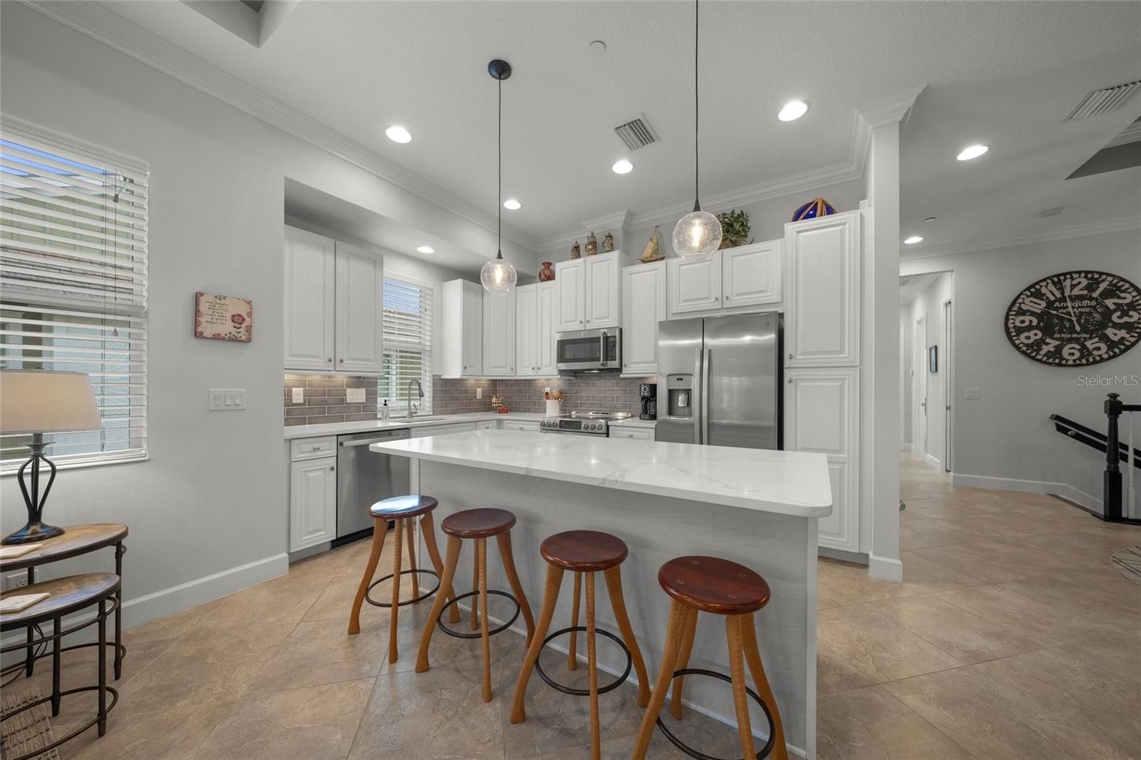 Welcome to coastal living at its best on Sapphire Lake Drive in Harbour Isle! This bright, updated home offers full sunset views over Anna Maria Sound and the relaxed vibe of a luxury island retreat. Inside, nearly every surface has been refreshed: new quartz countertops in all bathrooms and the kitchen, new sinks, painted cabinets, fresh accent paint, crown molding throughout, and shiplap ceilings in the master. The kitchen shines with quartz counters, backsplash, new pendant lighting, and newer appliances—including refrigerator (2023) and dishwasher (2024). The guest room features new carpet, while the office was upgraded with a closet and Murphy bed. The dumbwaiter was converted to a private elevator in 2021 for easy access. Enjoy a whole-home Q audio system that can be operated independently in each room, perfect for entertaining or setting the mood throughout the day. Additional highlights include a custom wooden accent wall in the dining room, new lighting, a fully painted interior, and a Tesla-ready garage with built-in storage solutions. Beyond your door, Harbour Isle offers resort-style amenities: four pools, fitness center, kayak launch, trails, hammocks, fire pits, and the Beach Club with panoramic Sound-to-Bay views. Just outside the gates: marina, dining, and Anna Maria Island’s sugar-sand beaches. Live the island lifestyle you’ve been dreaming of—sunrise to sunset.