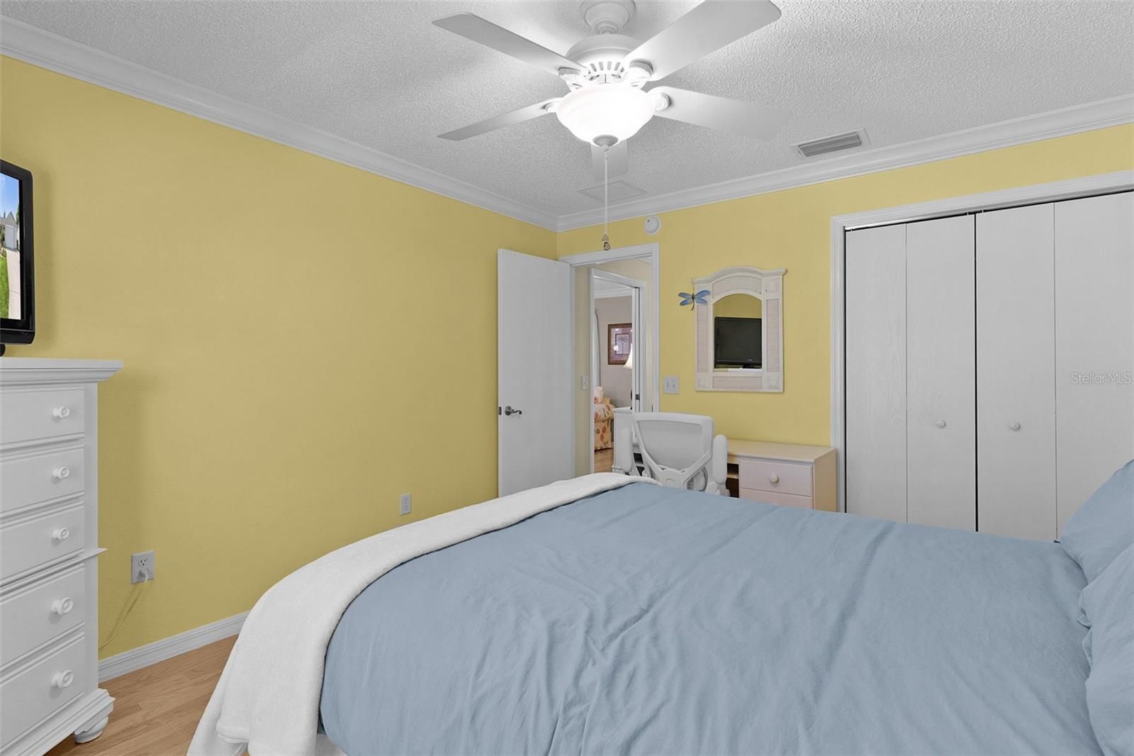 - Ceiling Fan(s), Crown Molding, Open Floorplan, Split Bedrooms, Walk-In Closet(s)