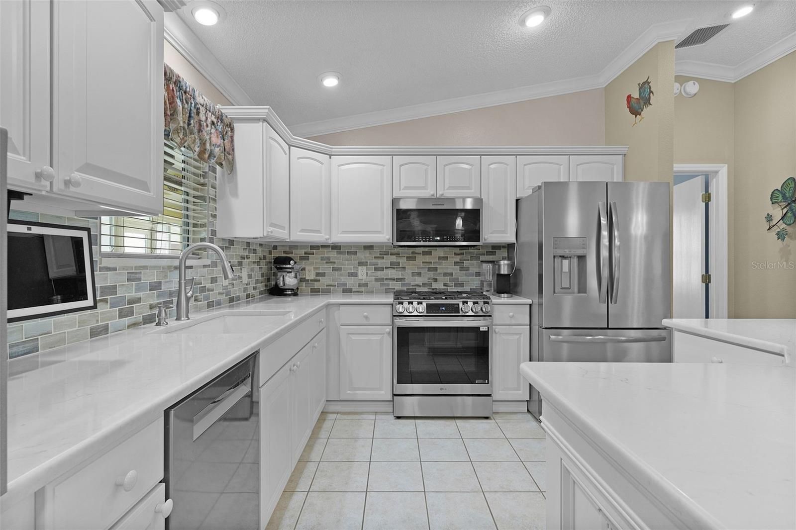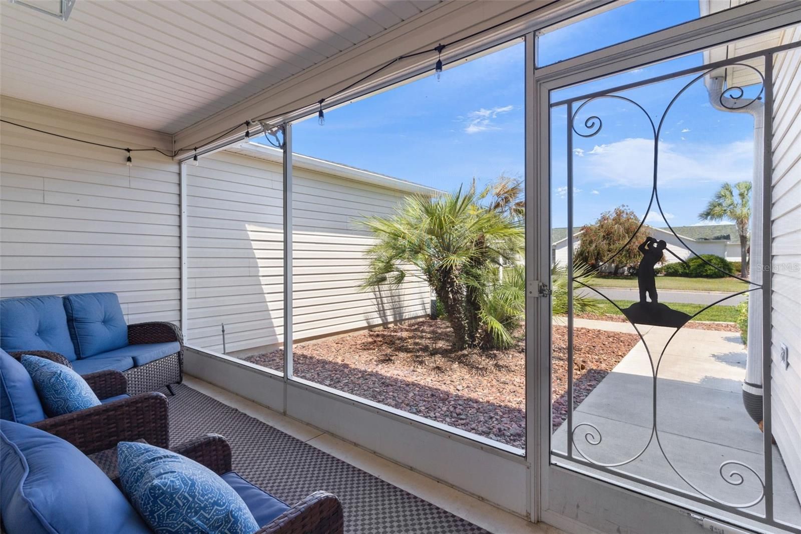 *~BOND PAID~* *~GOLF CART GARAGE~* *~ROOM FOR A POOL~* *~VAULTED CEILINGS~* *~2018 ROOF~* *~2025 MINI-SPLIT UNIT~* *~QUARTZ COUNTERTOPS (kitchen and guest bath)~* *~NO CARPET~* *~OPEN CONCEPT~* *~SPLIT FLOORPLAN~* *~2025 STAINLESS STEEL APPLIANCES~* _________Welcome home to this 3 bed/2 bath beautifully EXPANDED AMARILLO model located in the highly desirable Village of Belle Aire. Perfectly situated on a CORNER LOT, this home offers exceptional curb appeal with lovely landscaping, decorative curbing, and stone beds, creating an inviting exterior. Enjoy relaxing mornings on the SCREENED FRONT PORCH, the perfect place to enjoy Florida’s beautiful weather. The spacious lot also offers room for a pool (please see pool sketch), giving you the opportunity to create your own private outdoor oasis. Inside, you’ll immediately notice the CROWN MOLDING throughout and the beautiful WOOD AND TILE flooring that adds warmth and elegance throughout the home. The kitchen is both stylish and functional, featuring WHITE cabinetry, QUARTZ countertops, a TILE BACKSPLASH, 2025 stainless STEEL APPLIANCES with GAS STOVE, BOSE dishwasher, along with PENDANT LIGHTING over the island bar for a modern touch. The guest side of the home offers privacy with a POCKET DOOR separation, creating an ideal space for visitors. The guest bathroom is beautifully finished with QUARTZ countertops, WHITE cabinetry, a SHOWER/TUB combination, and a convenient LINEN CLOSET, with an ADDITIONAL LINEN CLOSET located in the hallway for extra storage. The spacious primary suite with 2 WALK-IN CLOSETS includes a well-appointed bathroom with DOUBLE SINKS, WHITE cabinetry, and a POCKET DOOR leading to the PRIVATE WATER CLOSET. One of the standout features of this home is the FLORIDA ROOM /SUNROOM which adds additional living space to the original floor plan. And, the LARGE ENCLOSED REAR LANAI, complete with tile flooring and a MINI-SPLIT UNIT, making it a comfortable and versatile space to enjoy year-round — perfect for entertaining, relaxing, or creating an additional living area. The laundry room is thoughtfully designed with a UTILITY SINK and OVERHEAD CABINETS above the washer and dryer for added convenience and storage. The GOLF CART GARAGE offers dedicated space for your golf cart along with additional storage, while the main garage provides even more storage options, complete with PULL-DOWN ATTIC STAIRS for convenient access to attic storage. This beautifully maintained home combines comfort, style, and practicality in one of the highly sought-after communities in The Villages.