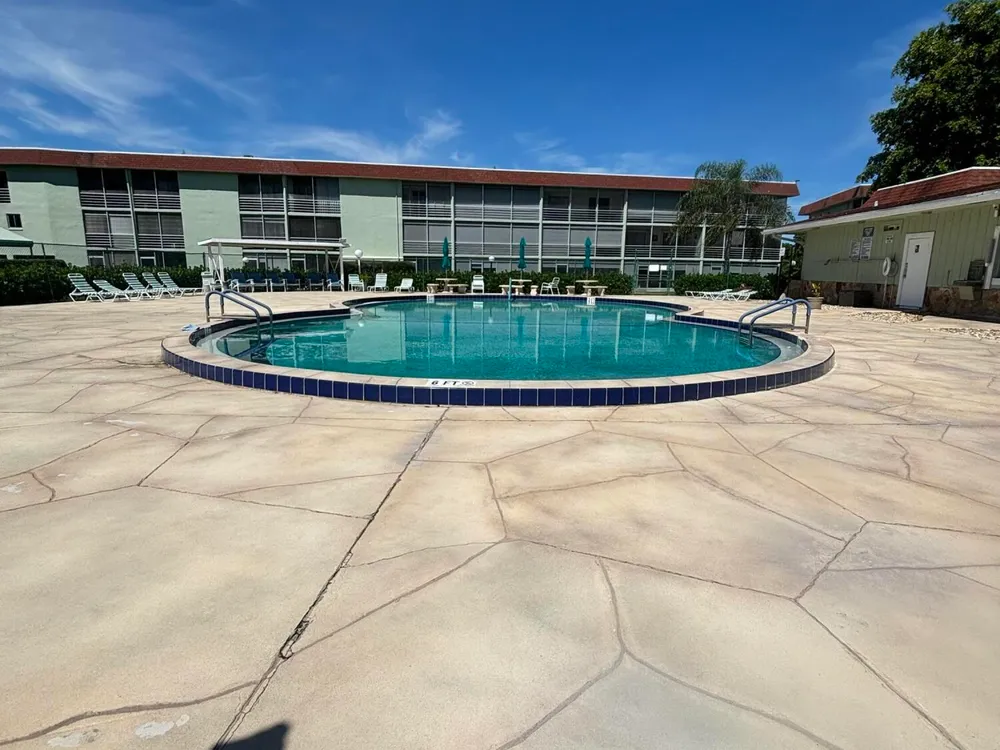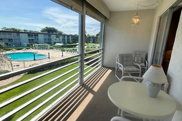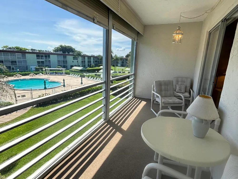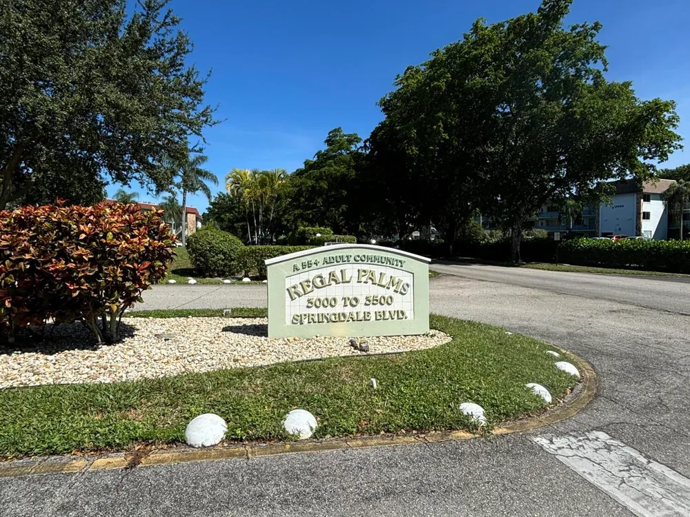 Serene 55+ community of Regal Palms! This third-floor unit boasts an incredible pool view, offering relaxing vibes right from your private screened-in patio. Ideally located near Palm Beach Airport, the community features manicured grounds, a clubhouse, pool, and more. The unit is sold as-is, ready for your personal touch. On-site laundry adds convenience to this tranquil escape!