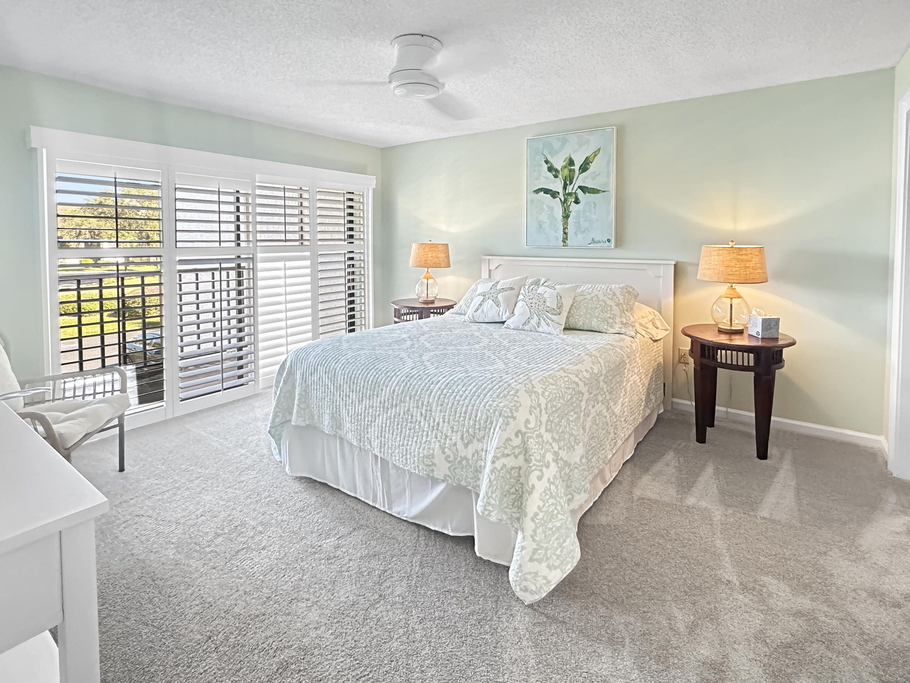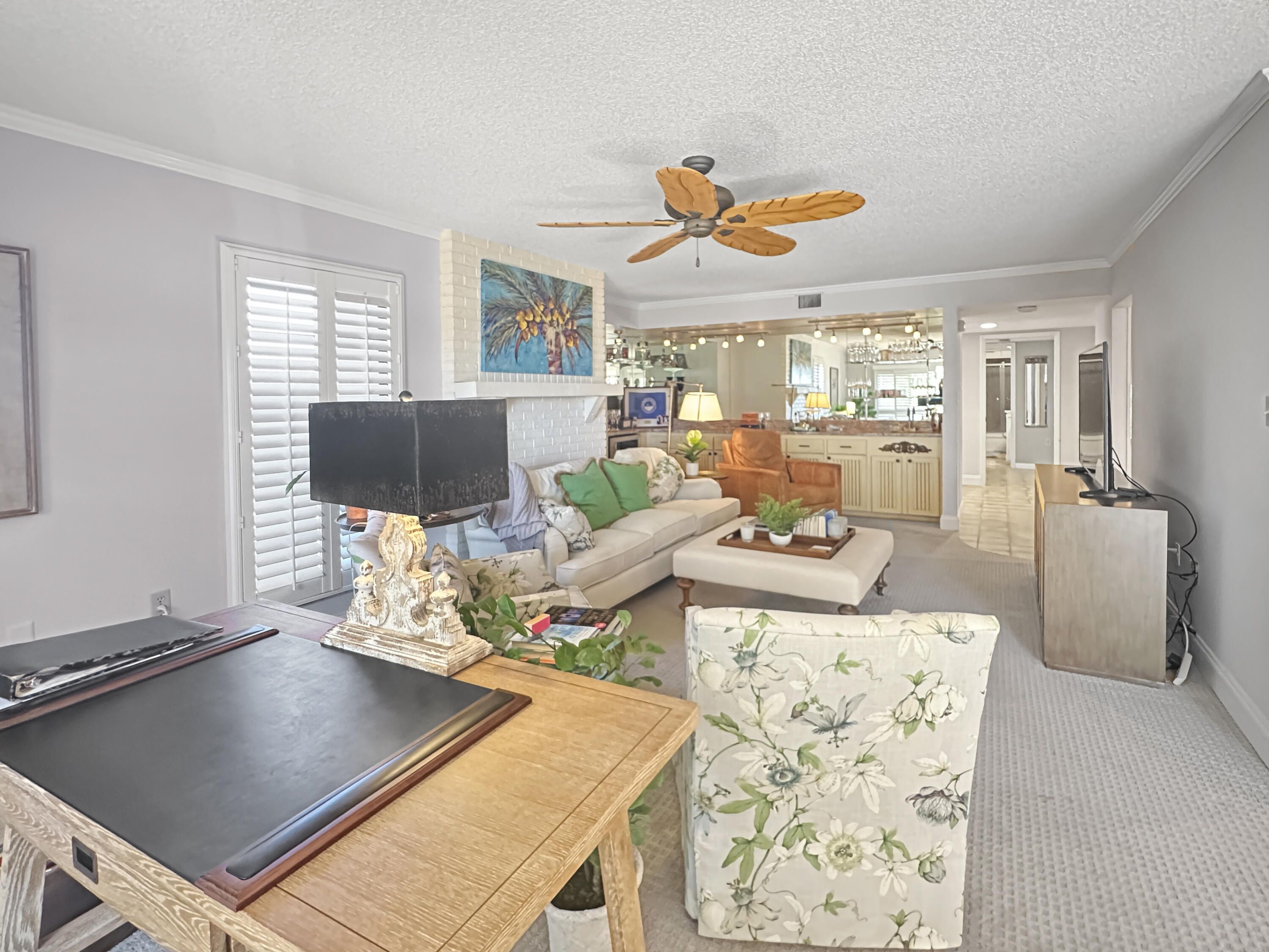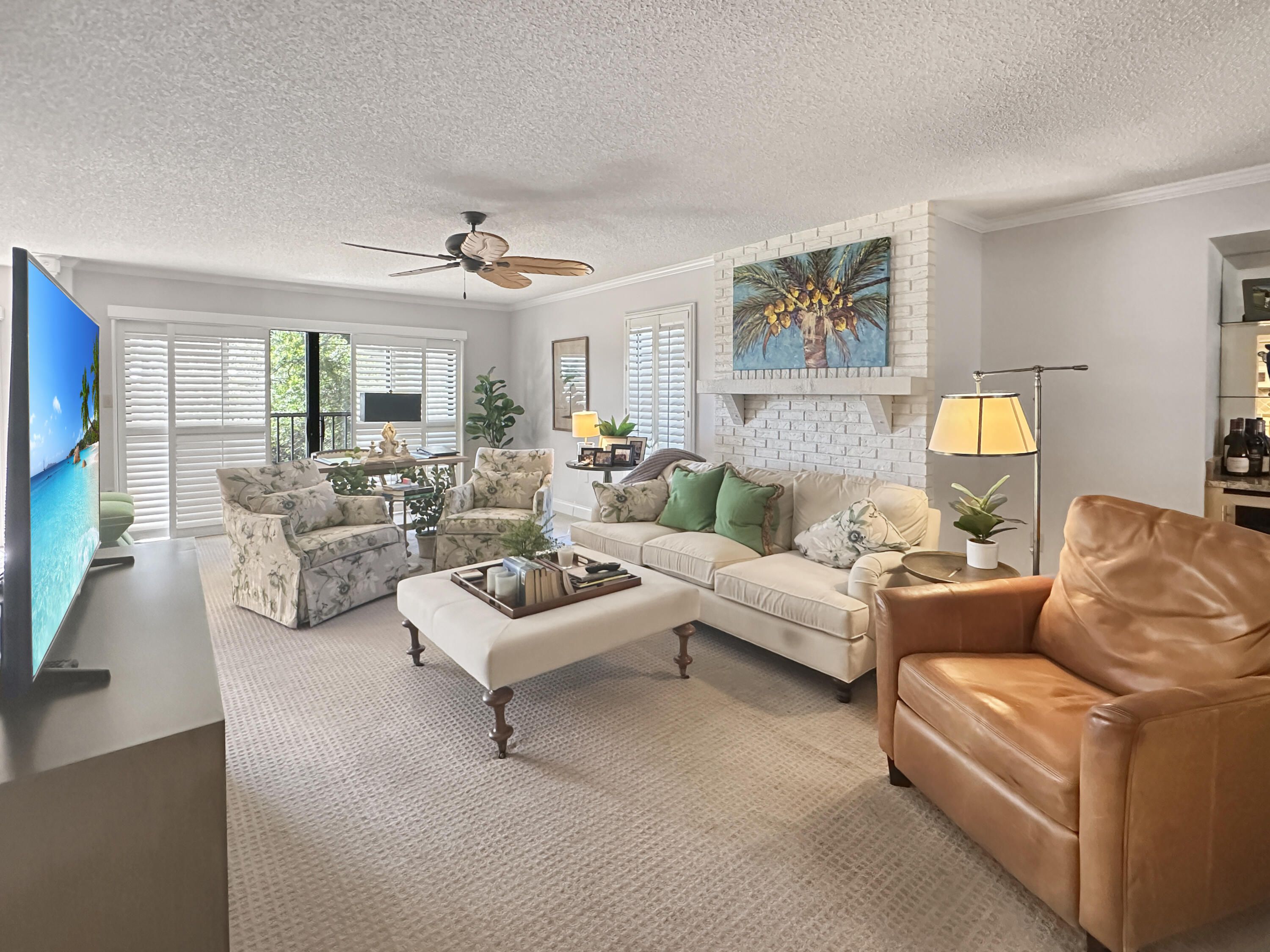 Welcome to luxury living with a view! This stunning 3-bedroom, 2-bathroom unit boasts elegance and comfort across two captivating stories. Indulge in serene golf course backdrop and enjoy the tranquility of your own screened porch, perfect for dining al fresco or sipping your morning coffee in peace. Step inside to discover a spacious open kitchen/dining area featuring granite countertops, a stylish island with a copper farm sink, and a charming, coffered ceiling. Entertaining is a breeze with the kitchen's convenient layout, complete with a snack bar, and beautiful tiled backsplash. The large living room, complete with a cozy fireplace and wet bar area, invites you to relax and unwind. Upstairs, the expansive master suite becomes your private oasis, complete with a fireplace, walk-in closet and two rooftop patios offering sweeping views. The master bath is a spa-like retreat, featuring a double sink granite vanity and a luxurious walk-in shower with a rain head. Additional perks include spacious guest bedrooms, a guest bath with granite vanity and wainscoting, Bahama shutters, and a coveted detached garage for your car and/or golf cart. As a resident of the prestigious, gated, Meadowood community, enjoy access to a plethora of amenities with optional memberships to meet your recreational and social needs and as a new resident, you can take advantage of a short-term trial membership. With the convenience of nearby shopping, dining, and beaches, this is a place where every day feels like a vacation. Welcome home to your personal slice of Florida paradise!