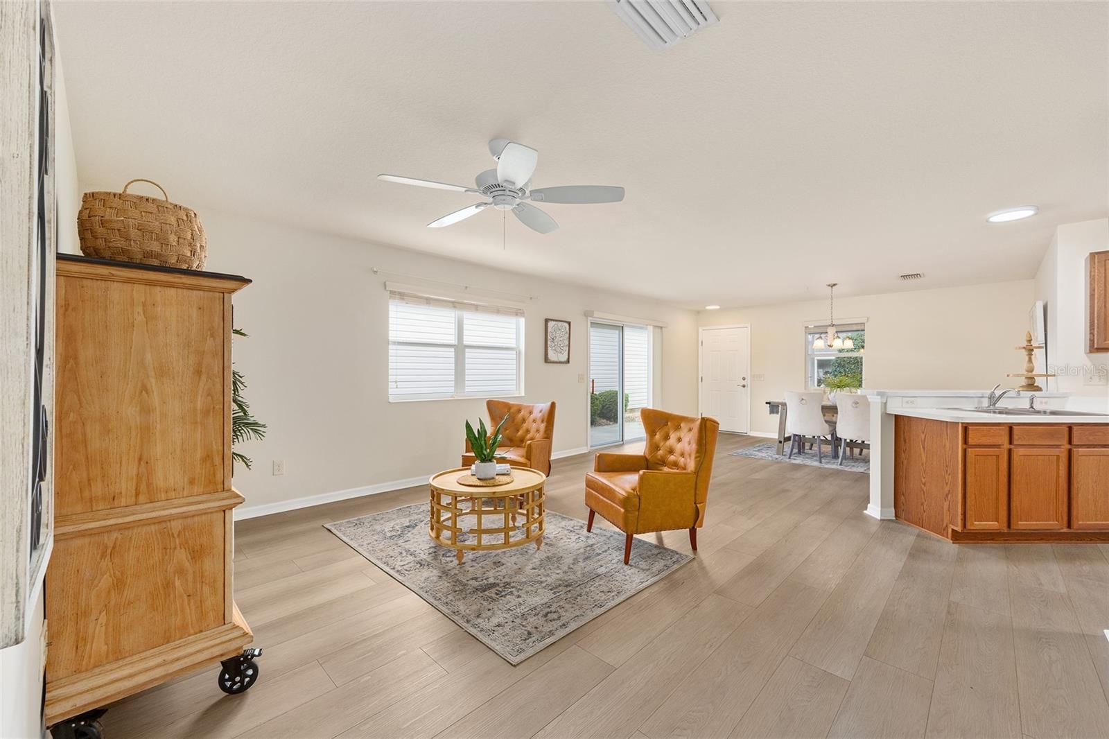 Welcome to The Village of Collier – Carrabelle Villas, one of the most DESIRABLE and CENTRALLY LOCATED communities in The Villages. This 2-bedroom, 2-bath Colony Patio Villa represents exactly what many buyers are looking for—a WELL-LOCATED, LOW-MAINTENANCE home with just the right updates to move in and start enjoying the lifestyle immediately. The home features NEW LUXURY VINYL PLANK FLOORING and NEW COUNTERTOPS, giving the interior a clean, refreshed feel while still keeping ownership simple and efficient. The OPEN FLOOR PLAN allows the space to live comfortably, with a natural flow between the kitchen, dining, and living areas that works well for both everyday living and entertaining, while still maintaining a cozy, easy-to-manage footprint. The primary and guest spaces are thoughtfully separated, offering privacy for both owners and visitors, and the home also includes the convenience of an INDOOR LAUNDRY AREA. The SCREENED LANAI provides a quiet outdoor space to relax, whether it’s morning coffee, an afternoon break, or an evening wind-down after a full day of activities. This is the kind of home that is easy to lock and leave, yet equally comfortable for full-time living. What truly drives the value here is the LOCATION. Positioned just minutes by golf cart to Brownwood Paddock Square, you have immediate access to dining, shopping, and nightly entertainment. You’re also conveniently located near BONIFAY and EVANS PRAIRIE CHAMPIONSHIP GOLF COURSES, along with executive courses including SWEETGUM and MANGROVE, making it easy to enjoy a quick round or a full day on the course without going far from home. Nearby recreation options include Eisenhower Regional Recreation Center, Big Cypress Recreation Center, multiple neighborhood pools, walking paths, and a wide range of organized activities that define The Villages lifestyle. Homes in this area consistently attract strong interest because they offer that balance buyers want—PRICE POINT, CONVENIENCE, and ACCESS to everything that makes The Villages unique. The Village of Collier in particular continues to be a high-demand area due to its proximity to Brownwood and its established, well-maintained surroundings. Whether used as a full-time residence, seasonal getaway, or investment property, this home offers flexibility and long-term appeal. If LOCATION, LIFESTYLE, and LOW-MAINTENANCE LIVING are the priority, this home checks the right boxes and represents a strong opportunity in today’s market. LOW BOND balance, $8,507 and LOW BOND PAYMENT, $714 annually. Roof, AC, and Water heater all 2013.