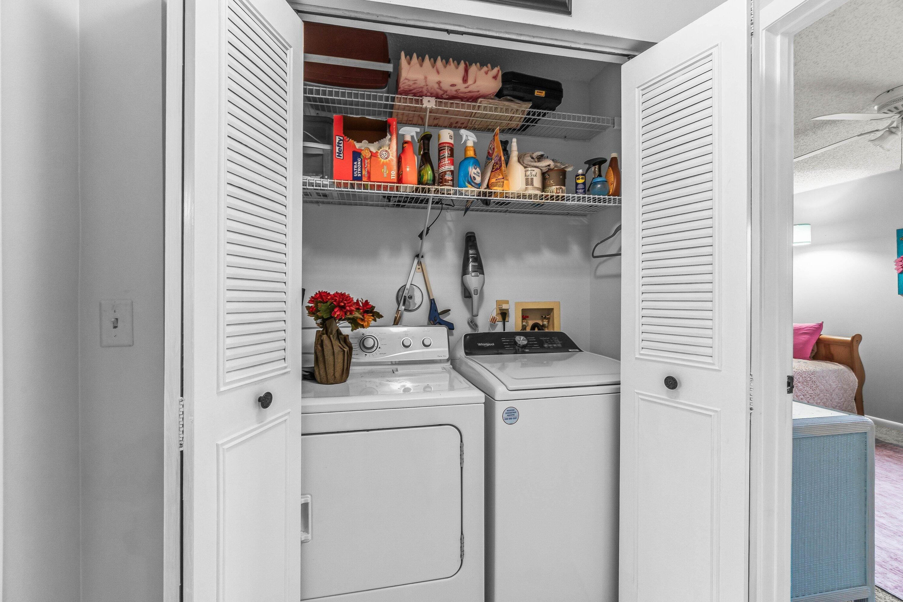 - Electric Water Heater, Dryer, Disposal, Dishwasher, Electric Range, Microwave, Refrigerator, Water Heater, Washer