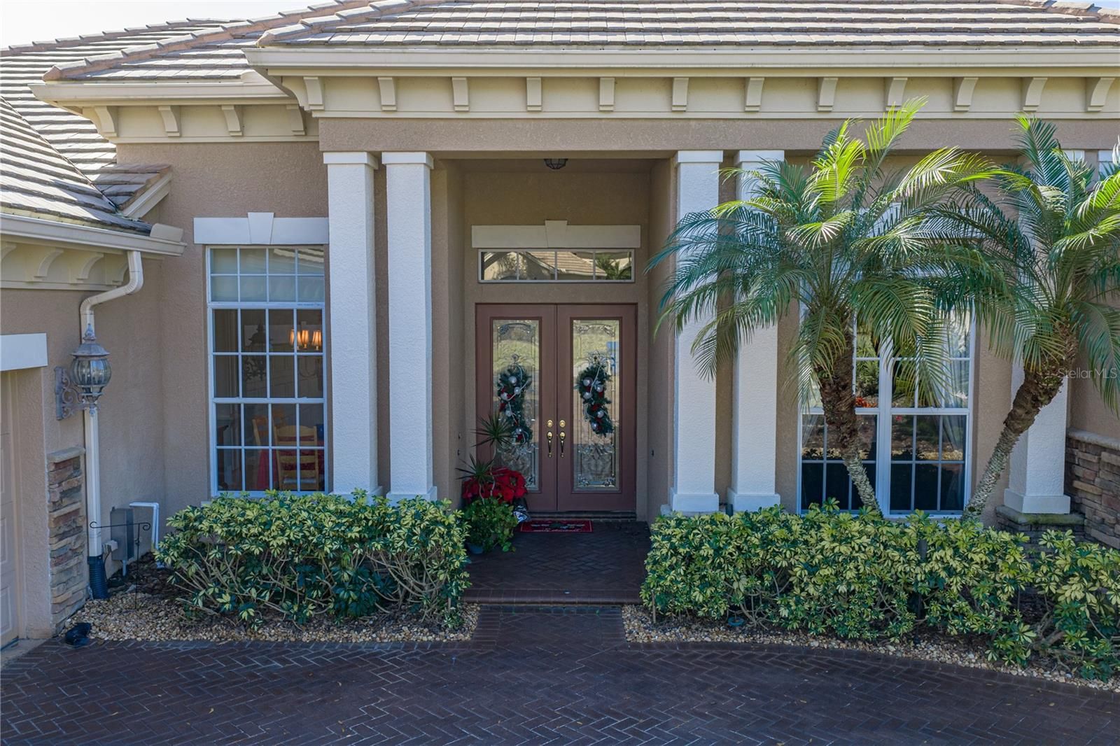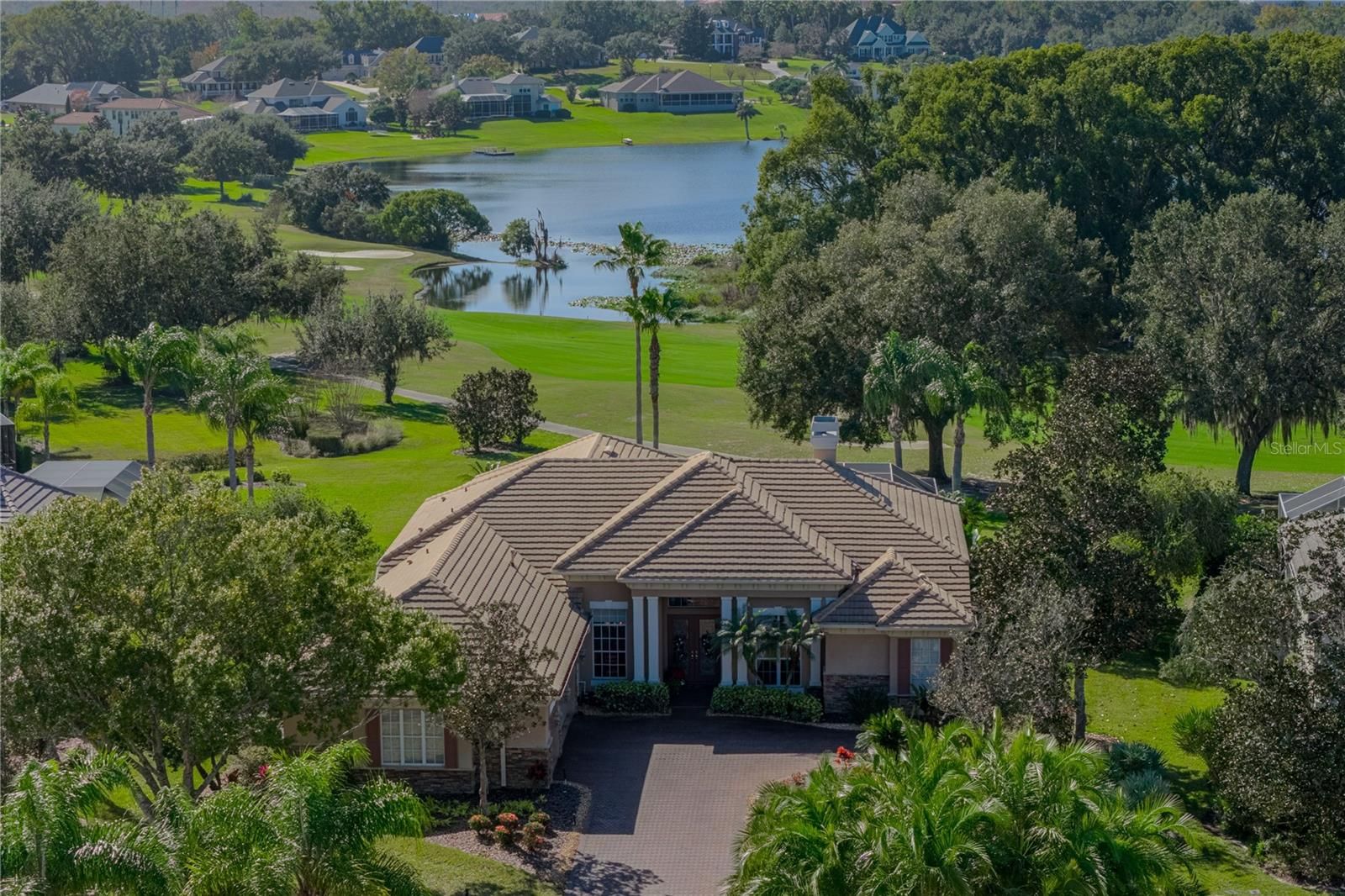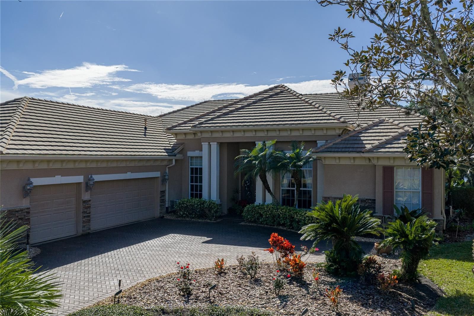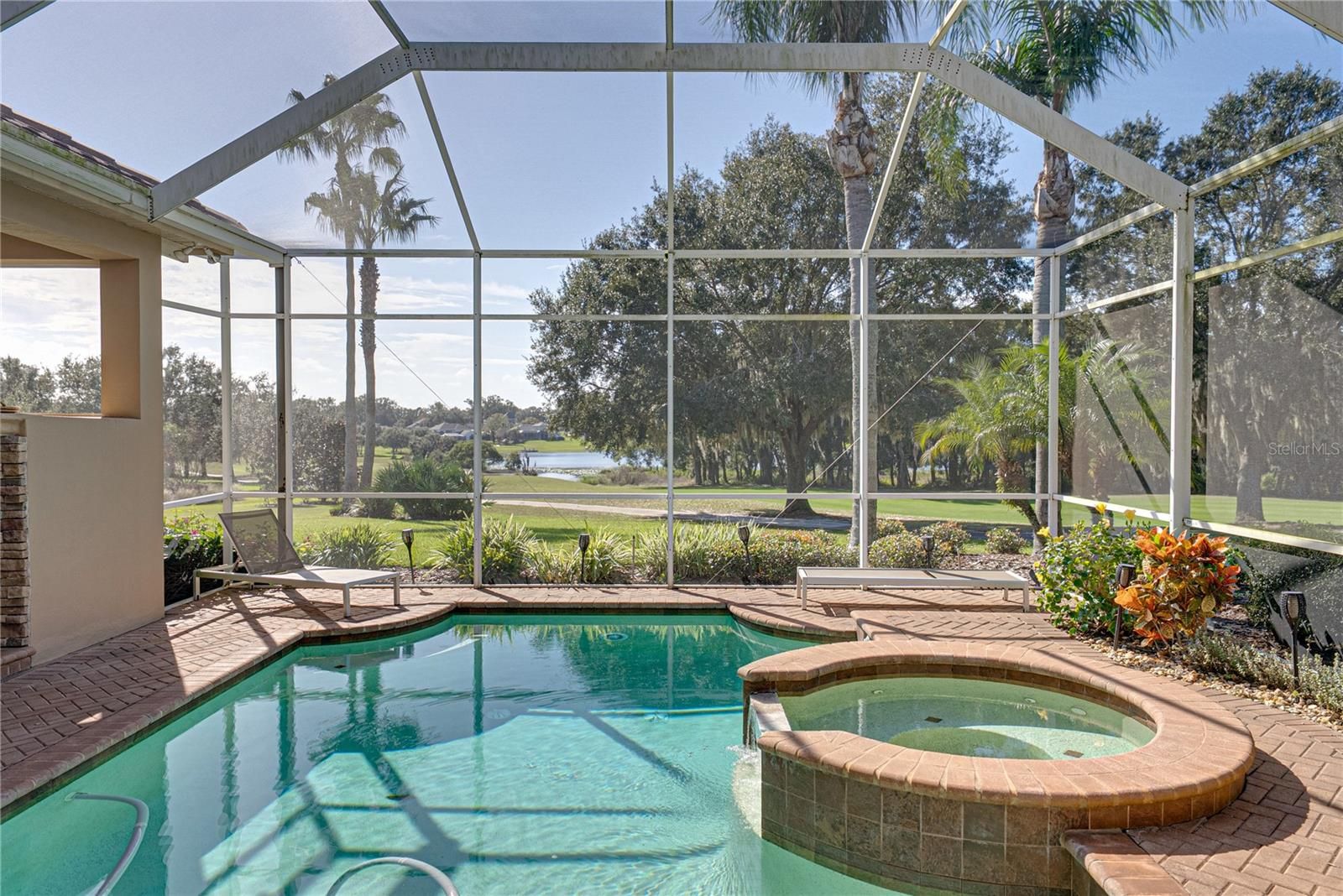 NEW TILE ROOF BEING INSTALLED THIS MONTH!Gracefully positioned within the resort-style and gated Lake Jovita community, on a lush, impeccably landscaped homesite with golf course and water views, this exceptional 3 bedroom, 4 bath residence presents a thoughtfully designed floor plan, refined architectural detail, and an effortless indoor outdoor lifestyle. A 3 car garage, private office, bonus room with sweeping views, and curated outdoor entertaining spaces come together to create a home that feels both warm and welcoming. From the moment you enter, the scale and flexibility of the layout make an immediate impression. Crown molding, tray ceilings, and intricate trim details frame the living spaces, while walls of sliding glass doors flood the home with natural light and capture the surrounding scenery. The formal living room is anchored by a propane fireplace and offers elegant sightlines across the formal dining room, through triple sliders to the pool, and into the eat in kitchen through decorative pillar accents, creating a sense of cohesion and flow throughout the main living areas. The kitchen is beautifully appointed with granite countertops, a substantial center island with generous seating, stainless steel appliances, a custom range hood, and a walk in pantry. Centrally located, the oversized family room is ideal for entertaining on any scale, with sliding doors intentionally placed to connect seamlessly to the outdoor living spaces beyond. A flexible bonus room enjoys stunning golf course views and sits just off a full guest bath, offering effortless pool access and versatility for guests, media, or additional living space. Near the front of the home, a private office features wood flooring and detailed ceiling work, providing a polished work from home retreat. The primary suite is privately positioned and designed as a true sanctuary, complete with tranquil views, a gracious foyer entry, two walk in closets, and an impeccable ensuite bath. This spa inspired space features a central island, dual vanities with seating, a jetted bathtub, and a walk in shower. Bedroom 2 is thoughtfully placed on the opposite side of the home near a hallway desk nook and offers a walk in closet and ensuite bath, while the 3rd bedroom provides a generous closet and convenient access to the home’s 4th full bathroom. Additional functional space includes a temperature controlled private garage office, ideal for those seeking a dedicated workspace without compromising storage. Outdoors, peaceful Florida living awaits with stone accented gathering areas surrounding a built in propane fireplace and grill, a second covered seating space, and a serene pool and spa overlooking the golf course from the screened and pavered lanai. Notable extras include surround sound wiring, central vacuum with floor sweeps, a water softener, and a brand new roof with a full price offer. Residents of Lake Jovita enjoy access to a playground, park, pickleball court, and walking trails. Optional membership packages at the Lake Jovita Golf and Country Club include access to 2 18- hole world-class golf courses, a Jr. Olympic size swimming pool, a restaurant, a clubhouse, a fitness center, a pro shop, and more! Make this holiday one to remember by finding your dream home in one of the most desirable communities. Schedule your private showing and experience the elevated living Lake Jovita is known for.