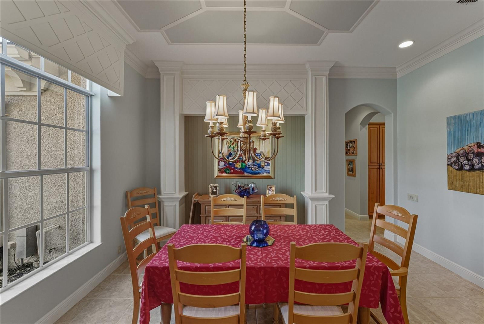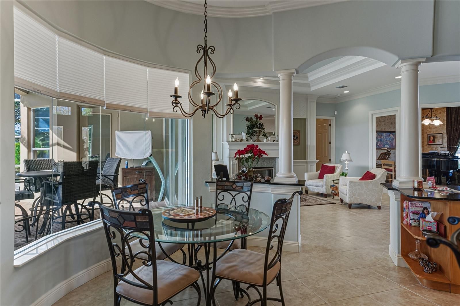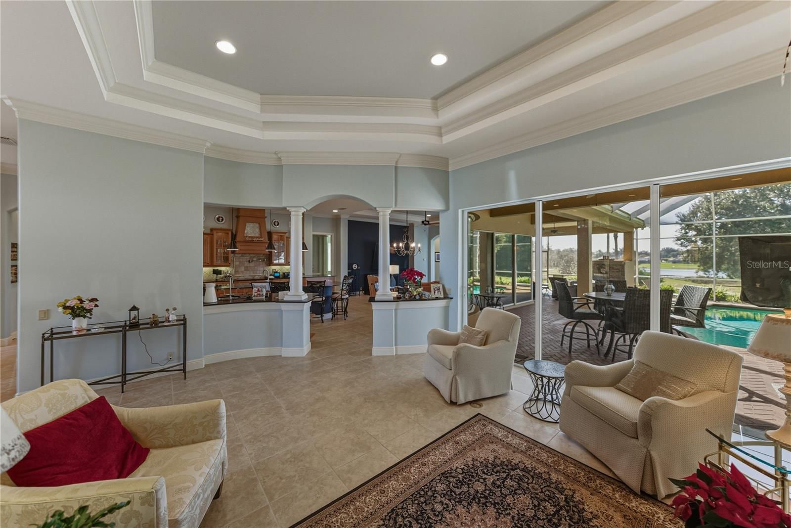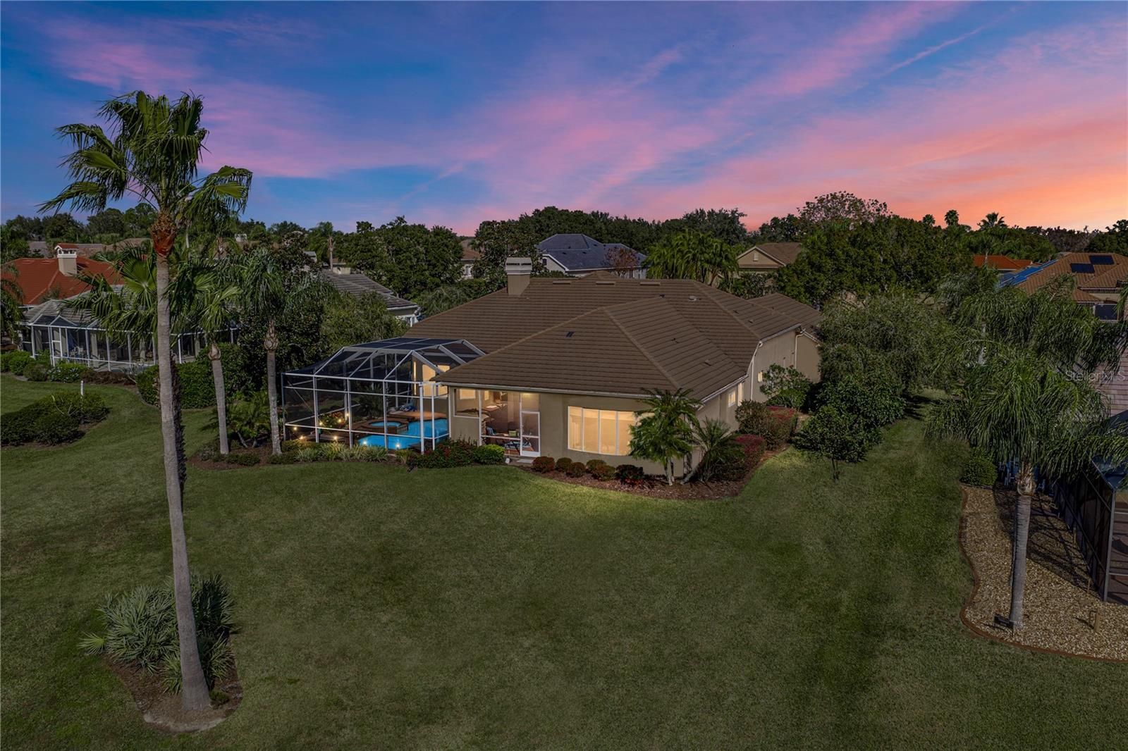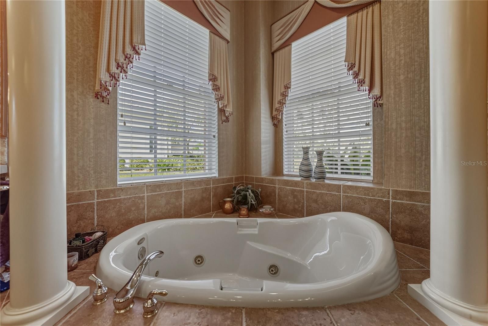 NEW TILE ROOF BEING INSTALLED THIS MONTH!Gracefully positioned within the resort-style and gated Lake Jovita community, on a lush, impeccably landscaped homesite with golf course and water views, this exceptional 3 bedroom, 4 bath residence presents a thoughtfully designed floor plan, refined architectural detail, and an effortless indoor outdoor lifestyle. A 3 car garage, private office, bonus room with sweeping views, and curated outdoor entertaining spaces come together to create a home that feels both warm and welcoming. From the moment you enter, the scale and flexibility of the layout make an immediate impression. Crown molding, tray ceilings, and intricate trim details frame the living spaces, while walls of sliding glass doors flood the home with natural light and capture the surrounding scenery. The formal living room is anchored by a propane fireplace and offers elegant sightlines across the formal dining room, through triple sliders to the pool, and into the eat in kitchen through decorative pillar accents, creating a sense of cohesion and flow throughout the main living areas. The kitchen is beautifully appointed with granite countertops, a substantial center island with generous seating, stainless steel appliances, a custom range hood, and a walk in pantry. Centrally located, the oversized family room is ideal for entertaining on any scale, with sliding doors intentionally placed to connect seamlessly to the outdoor living spaces beyond. A flexible bonus room enjoys stunning golf course views and sits just off a full guest bath, offering effortless pool access and versatility for guests, media, or additional living space. Near the front of the home, a private office features wood flooring and detailed ceiling work, providing a polished work from home retreat. The primary suite is privately positioned and designed as a true sanctuary, complete with tranquil views, a gracious foyer entry, two walk in closets, and an impeccable ensuite bath. This spa inspired space features a central island, dual vanities with seating, a jetted bathtub, and a walk in shower. Bedroom 2 is thoughtfully placed on the opposite side of the home near a hallway desk nook and offers a walk in closet and ensuite bath, while the 3rd bedroom provides a generous closet and convenient access to the home’s 4th full bathroom. Additional functional space includes a temperature controlled private garage office, ideal for those seeking a dedicated workspace without compromising storage. Outdoors, peaceful Florida living awaits with stone accented gathering areas surrounding a built in propane fireplace and grill, a second covered seating space, and a serene pool and spa overlooking the golf course from the screened and pavered lanai. Notable extras include surround sound wiring, central vacuum with floor sweeps, a water softener, and a brand new roof with a full price offer. Residents of Lake Jovita enjoy access to a playground, park, pickleball court, and walking trails. Optional membership packages at the Lake Jovita Golf and Country Club include access to 2 18- hole world-class golf courses, a Jr. Olympic size swimming pool, a restaurant, a clubhouse, a fitness center, a pro shop, and more! Make this holiday one to remember by finding your dream home in one of the most desirable communities. Schedule your private showing and experience the elevated living Lake Jovita is known for.