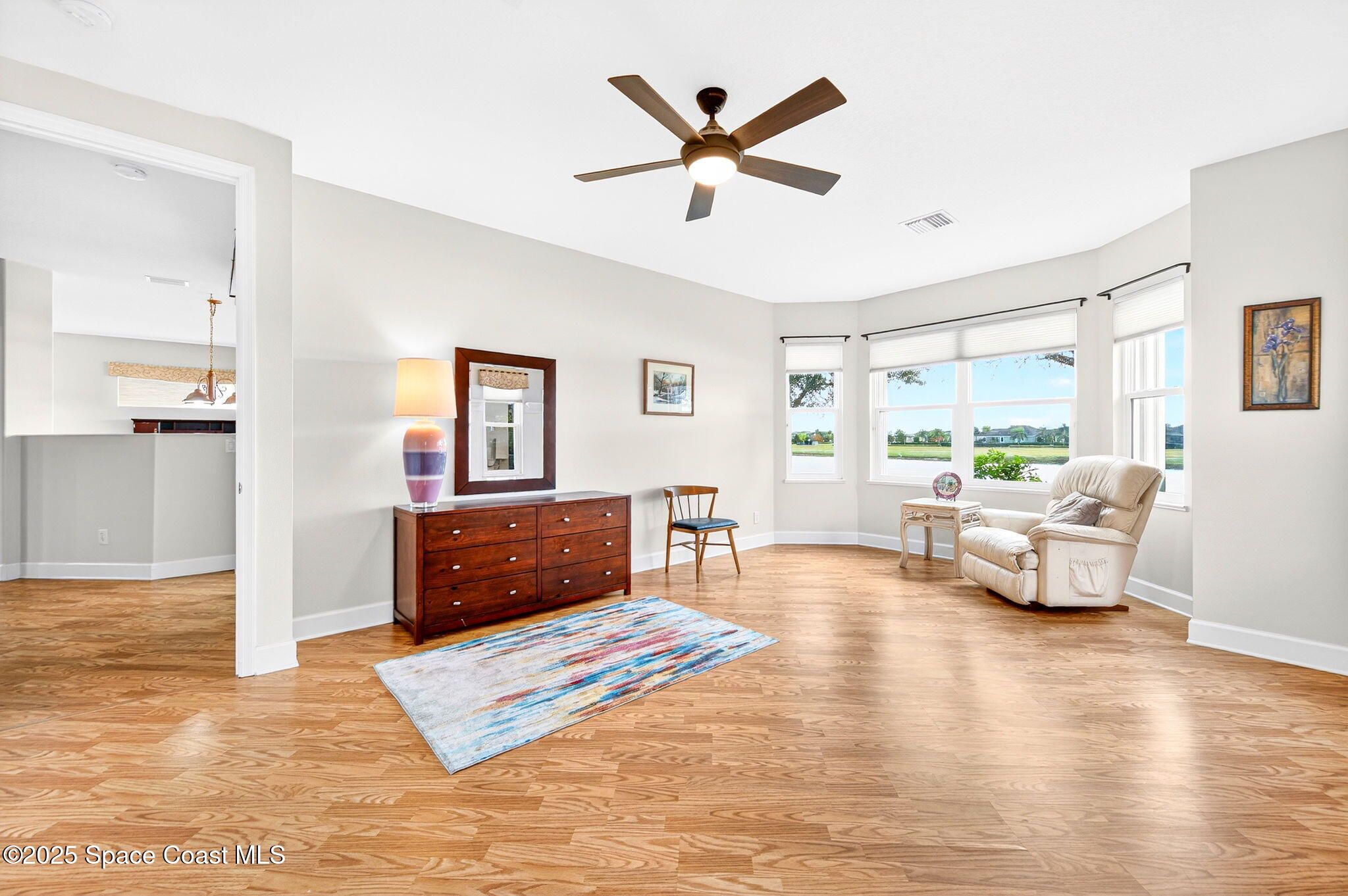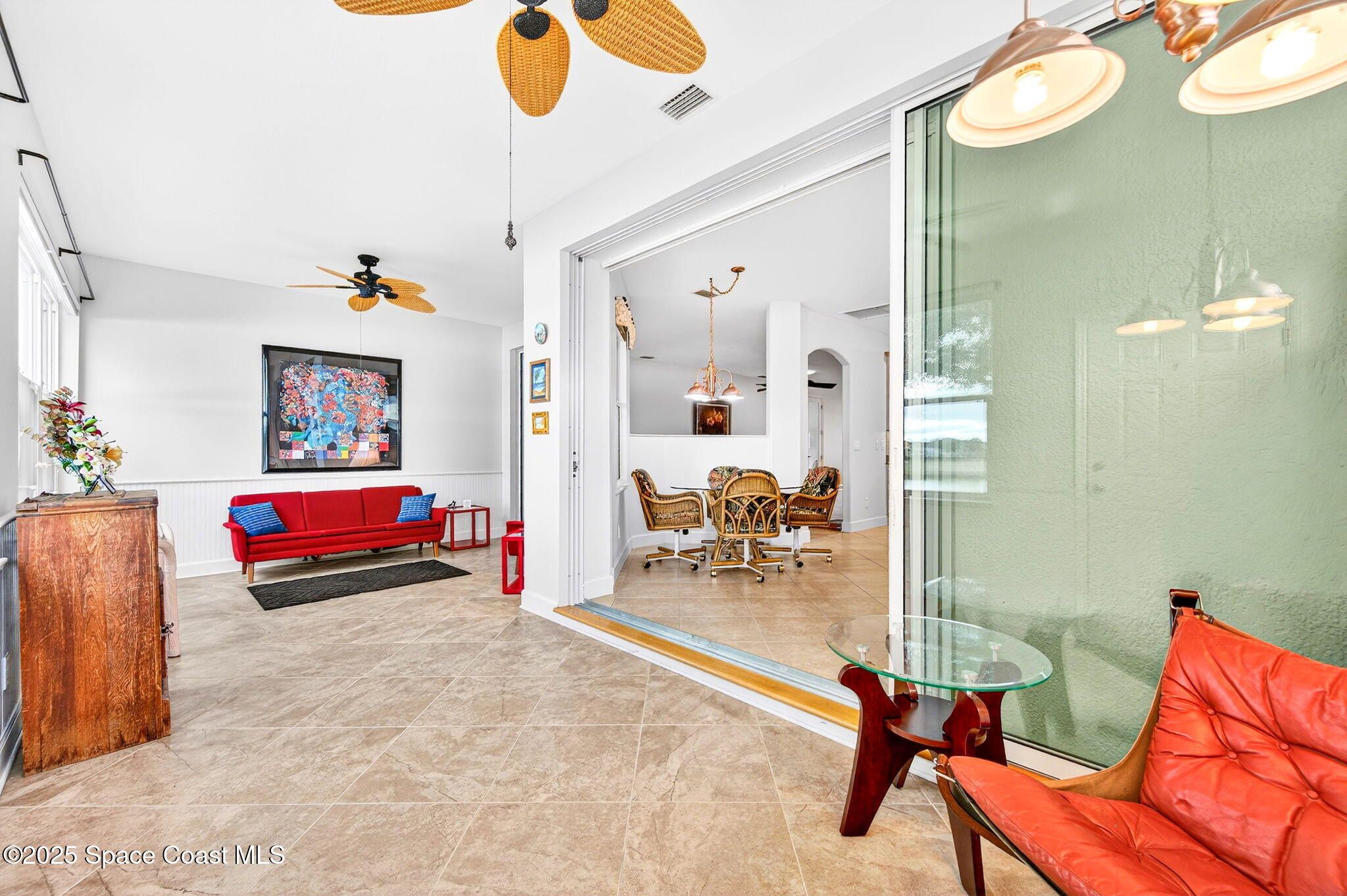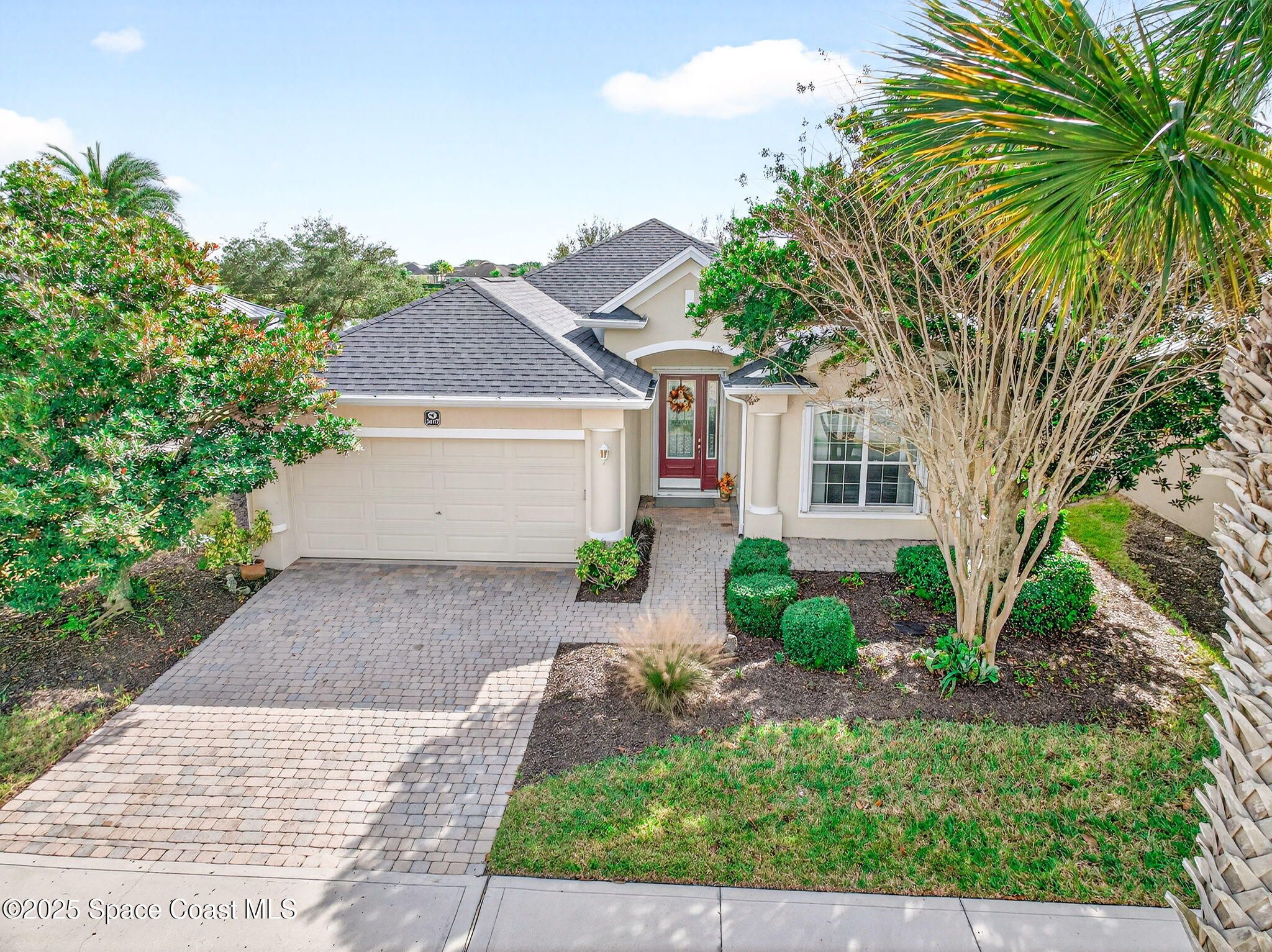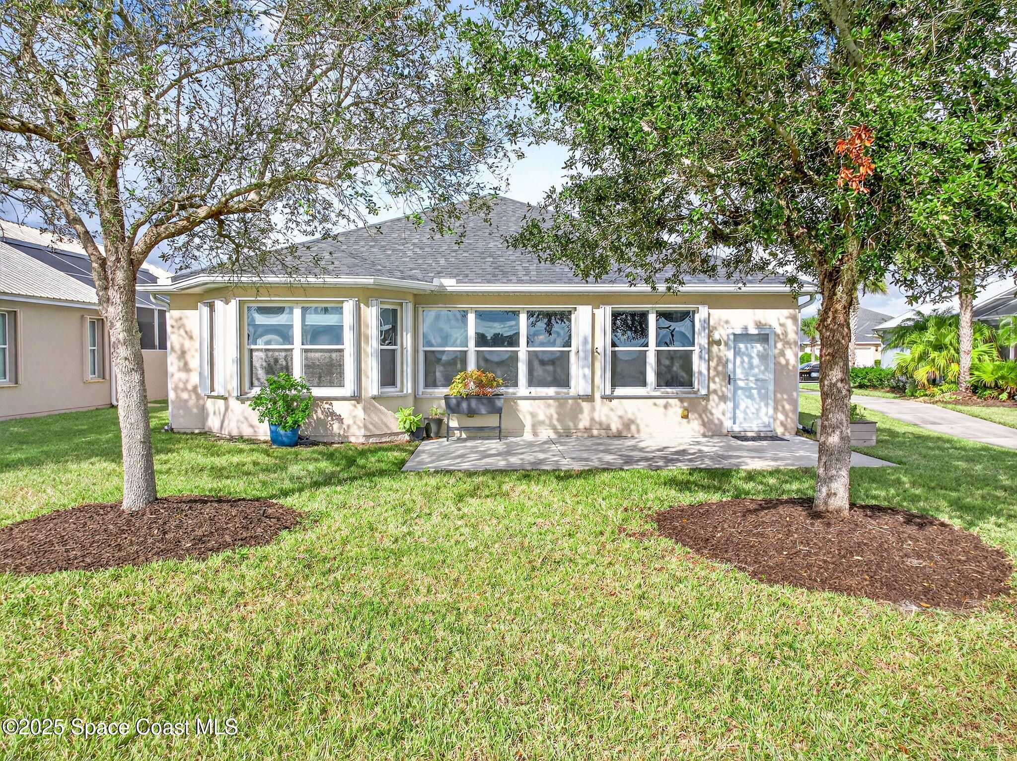 Relax and take in the direct water views of this gorgeous 3 BR 2 bath home in the exclusive, resort-style 55+ Heritage Isle community. Wake up to gaze at birds skimming the water under the morning sun from the bay window in the light-filled primary suite. Enjoy a panoramic view of the lake from the fully enclosed and finished Florida room, which sets this home apart. Upgrades and practical bonuses include a 2-car garage, new roof (2025), new A/C (air handler 2025, condenser/compressor 2023), fresh interior paint (2025), accordion storm shutters, tankless water heater, and custom Hunter Douglas window and glass door treatments. The smart open layout flows with practicality and convenience for effortless entertaining. The spacious kitchen showcases solid wood cabinetry, quartz countertops, and generous storage with deep drawers and pull-out shelves for easy access and organization. A breakfast bar and adjoining family room provide casual dining space, or entertain in the dedicated dining room with tray ceiling. The Florida room connects to both the family room and living room, perfect for morning coffee or an afternoon pause. The expansive primary suite provides a sitting area in the bay window alcove overlooking the lake. Two closets (one walk-in) separate the bedroom from the bath, which features separate vanities and a large walk or roll-in shower. Life at Heritage Isle centers around the clubhouse, offering on-site dining and bar, billiards, a theater, ballroom, library, craft rooms, and an active events calendar. Outside, enjoy a heated pool & spa, tennis and pickleball courts, bocce, shuffleboard, volleyball, and miles of paths for walking or golf carts. Carefree living in this gated community in the heart of Viera awaits!