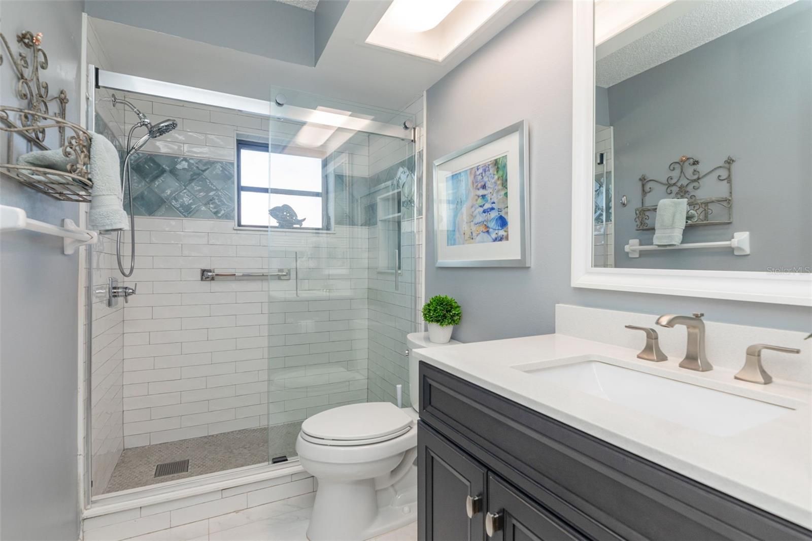 This spacious home has been remodeled and upgraded in the last 5 years making it an exceptional choice in Highland Lakes. Tasteful design and quality materials combine to create casual elegance for comfortable living. The refined renovation provides great flow complemented by generous rooms and abundant natural light. You will love the beautifully remodeled kitchen with a sunny breakfast nook open to the cozy family room, and the serving counter open to dining and living areas. The primary suite is a serene retreat with a well-outfitted walk in closet, and newly renovated en suite with a step in tile shower, designer fixtures, and great lighting. The hall bath is also recently upgraded with artful hand made Italian tile in the shower and newer fixtures. You'll love the large lanai with vaulted ceiling, fan, & skylight. It's made even better by mature privacy landscaping offering lush views and quiet comfort. A grill patio is just outside the lanai door and be prepared to enjoy daily visits from the bunny rabbits that shelter among the plantings. What else will you like? Recent structural, mechanical system & appliance updates include the new roof in 2023, water heater in 2022, professional exterior painting, Trane HVAC system in 2013, a 6900 watt dual fuel generator in 2022, and major appliances all new in recent years. Garage door is hurricane rated and the extra fridge in the garage stays with the house. A successful 4-Point Insurance Inspection was just completed and is available for review. Highland Lakes is Palm Harbor's premier 55+ golf & lakefront community and Stirling Rd is a most desirable location in the neighborhood. Close to the clubhouse & amenities and no through traffic. Resort style amenities include free green fees on three private executive courses! Enjoy an active lifestyle with water aerobics, yoga, pickleball, tennis, and many other fit and fun activities. The main clubhouse is the busy venue for entertainment and social events and you will like the friendly country club atmosphere. The Arts and Crafts building has a wood shop, studios, and classes. The Lake Tarpon Lodge is a rustic retreat with a second heated pool, party & picnic facilities, fishing pier, open dock, community pontoon boats, and a secure lot for free RV or boat storage. Highland Lakes is high and dry above the flood plain and this house is even in a non-evacuation zone. Live blissfully close to the best Gulf beaches, Pinellas Trail, a wealth of restaurant & shopping options, rich cultural resources, excellent medical services, exciting pro sports, 2 international airports, and an award-winning cruise port. Don't wait - You will love your home & your lifestyle in Highland Lakes!