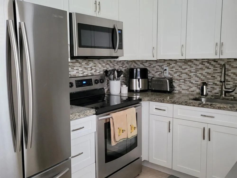- Dryer, Microwave, Electric Range, Refrigerator, Smoke Detector, Washer, Electric Water Heater