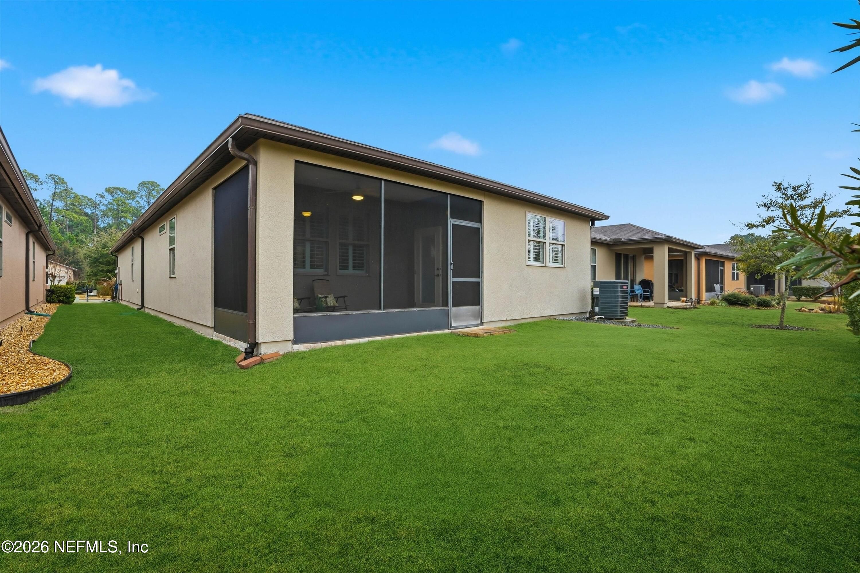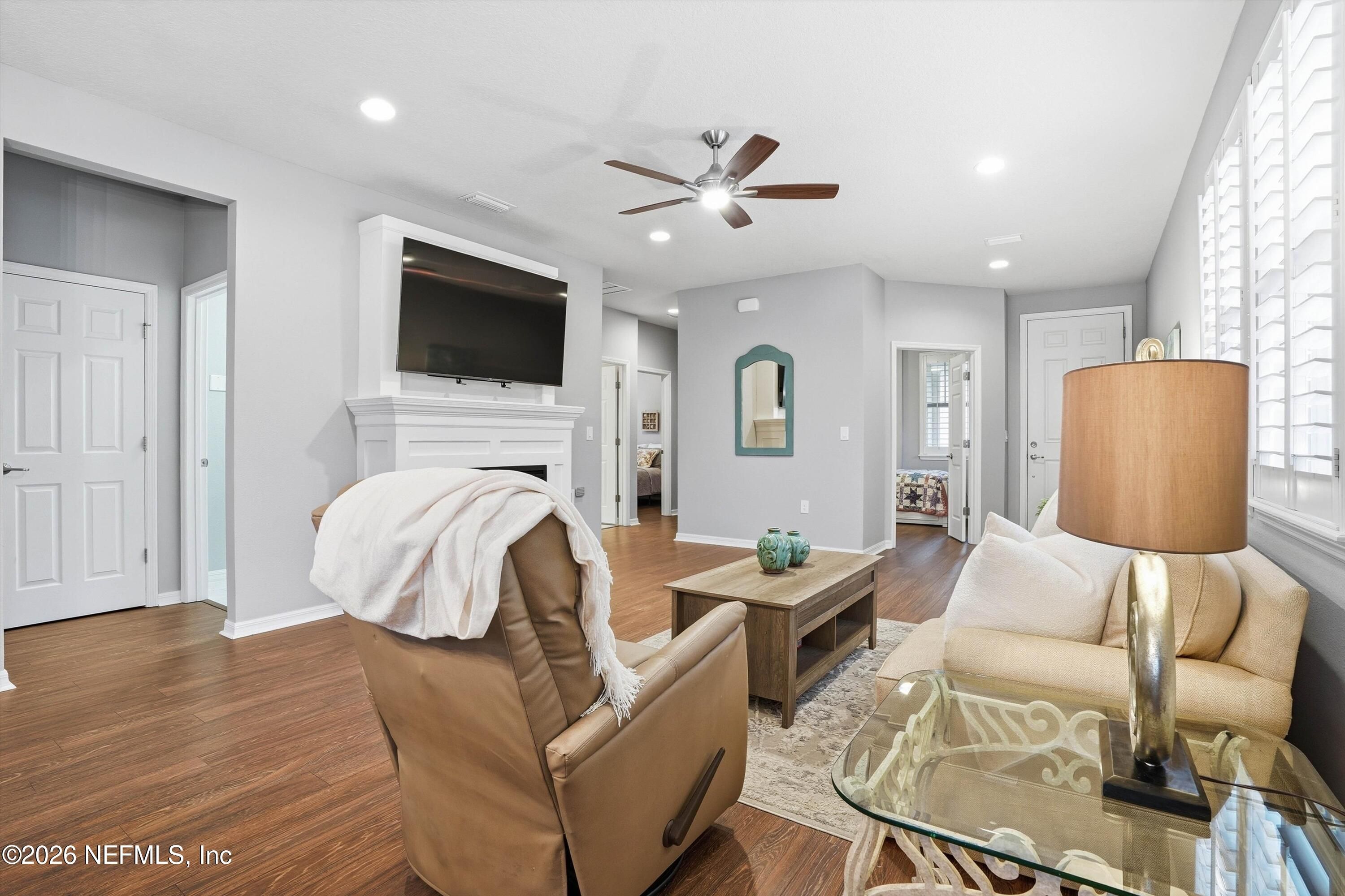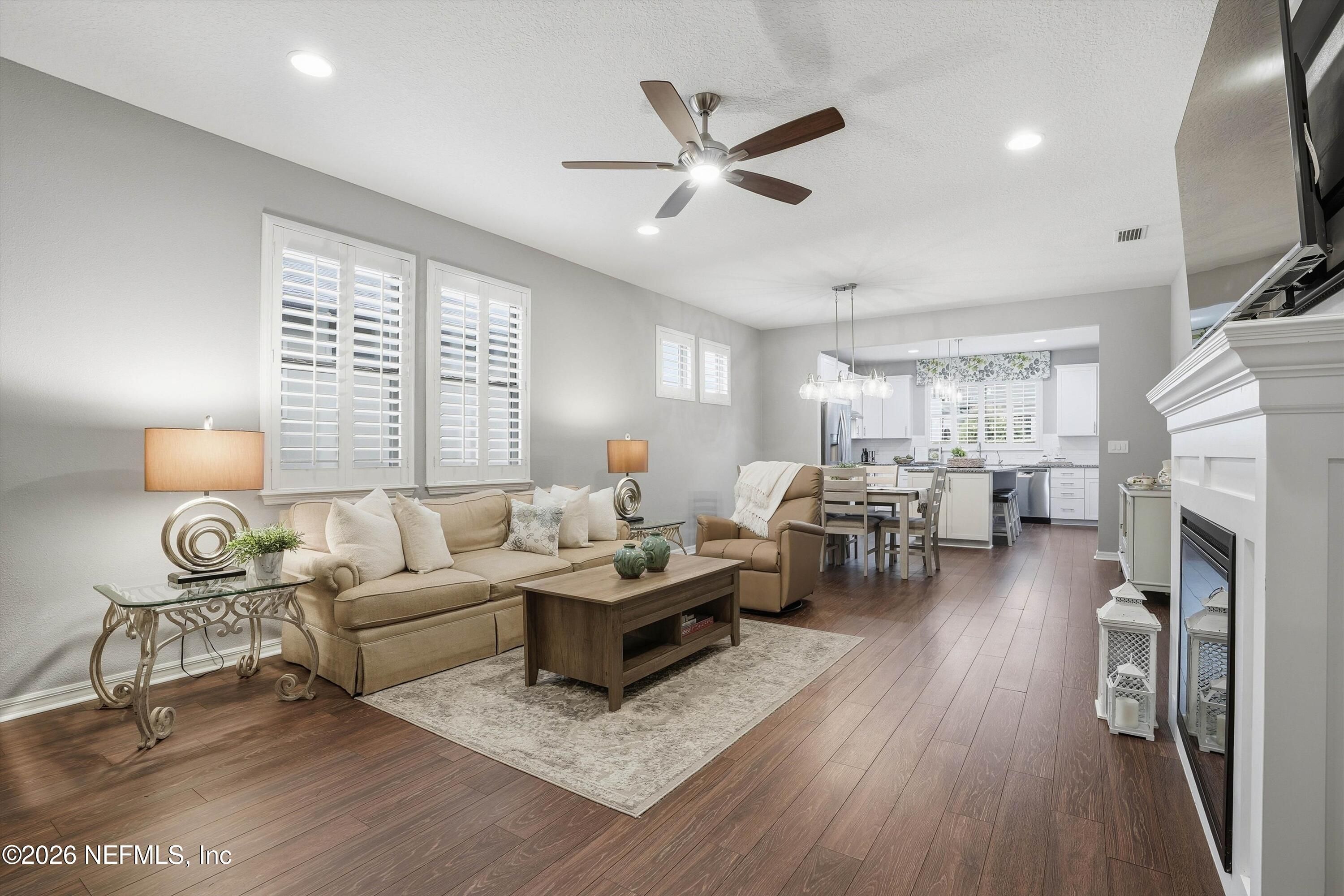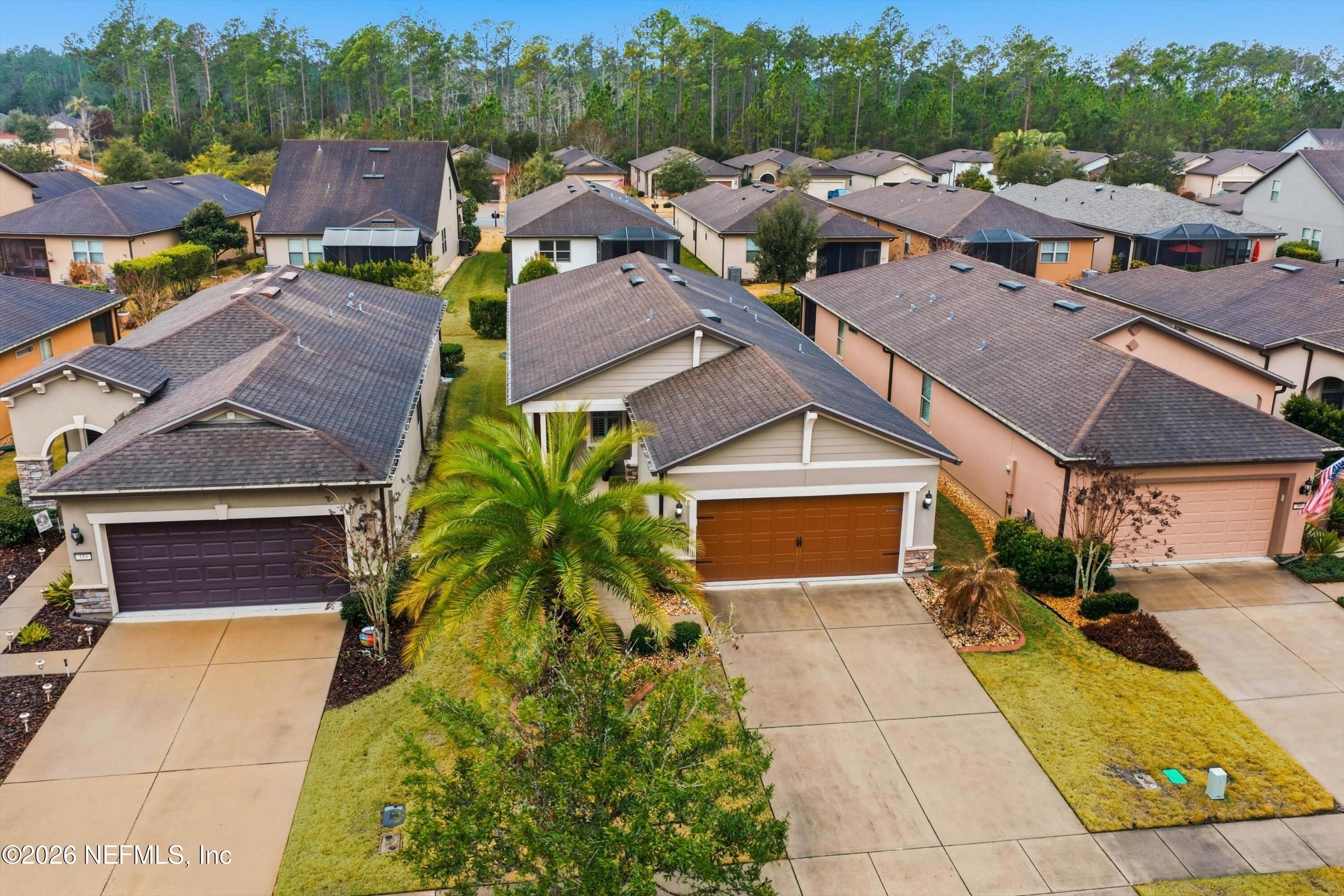Move-in ready Taft model featuring 3 bedrooms and 2 baths, beautifully maintained and loaded with thoughtful upgrades. The extended 4-ft garage includes ceiling-mounted storage racks and a utility sink, offering exceptional functionality. Inside, enjoy 9-ft ceilings, plantation shutters, and luxury vinyl plank flooring throughout ''no carpet''. The kitchen shines with 42'' white Shaker cabinets with pull-out shelving, granite countertops, subway tile backsplash, single-bowl sink, upgraded stainless-steel appliances, reverse osmosis system, and a water softener. The living area is anchored by an electric fireplace with mantle and heater, creating a warm, inviting space. Additional upgrades include a steam washer and dryer with pedestal bases. Outdoors, the home is enhanced by lush, professionally landscaped grounds and a privacy hedge in the backyard, perfect for relaxing or entertaining. Owners enjoy all Del Webb PV privileges at the Anastasia Club including indoor and outdoor pools & spas, pickle ball, bocce, tennis, fitness center, numerous clubs, a full-time activity director plus access to the Nocatee Water Parks & Amenities Close to Publix & the town center, restaurants & shopping. Just 10 minutes to the beach & golfing