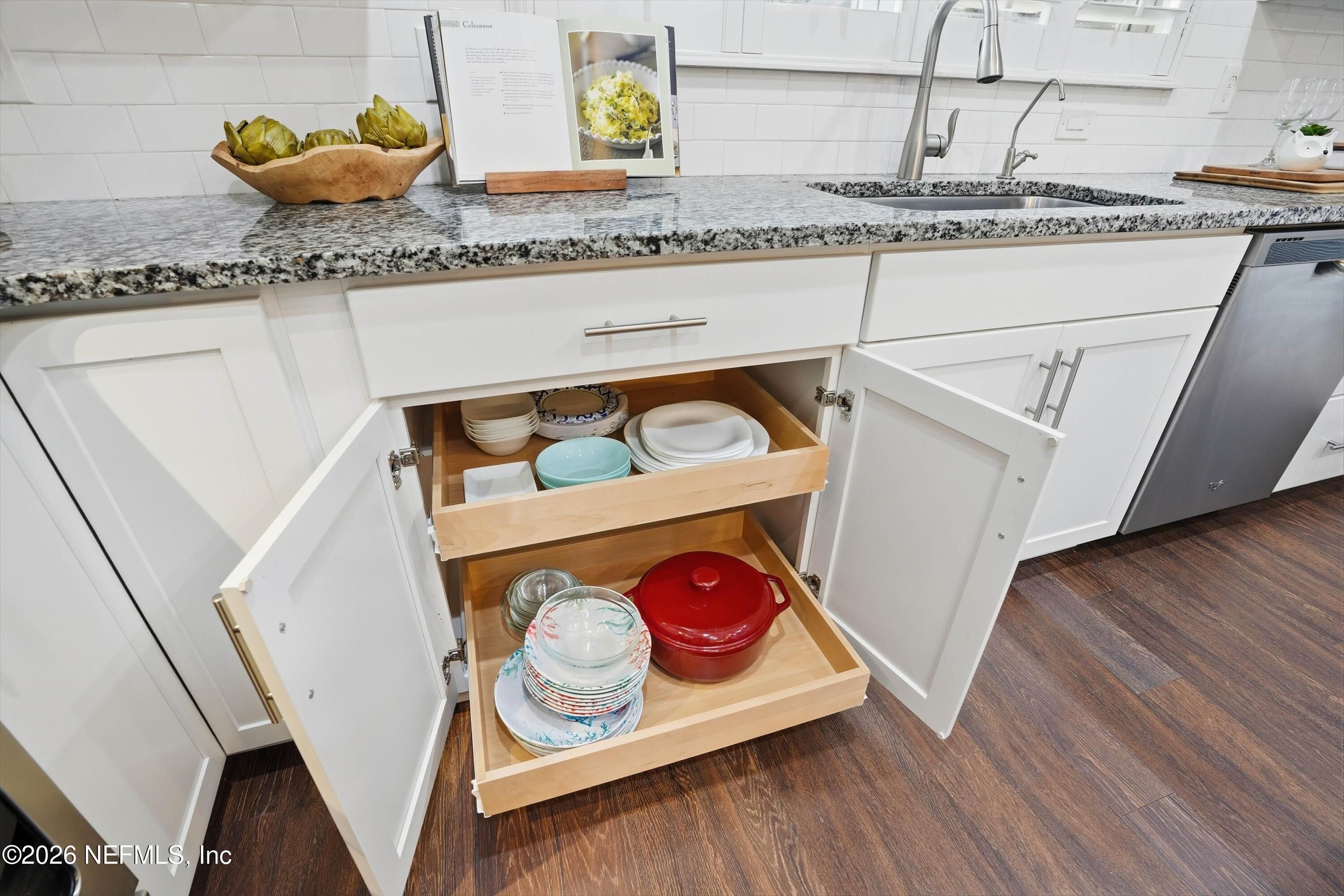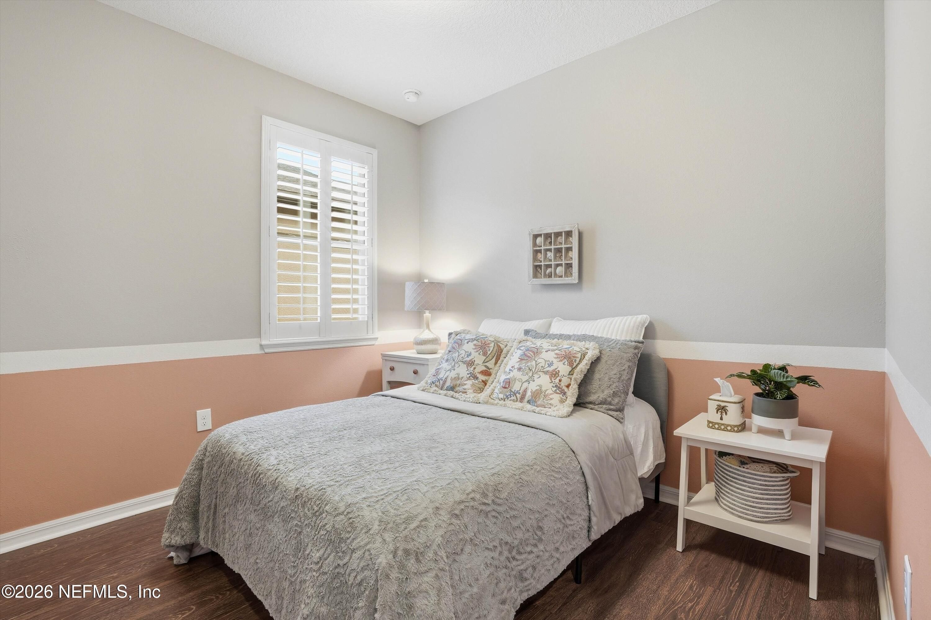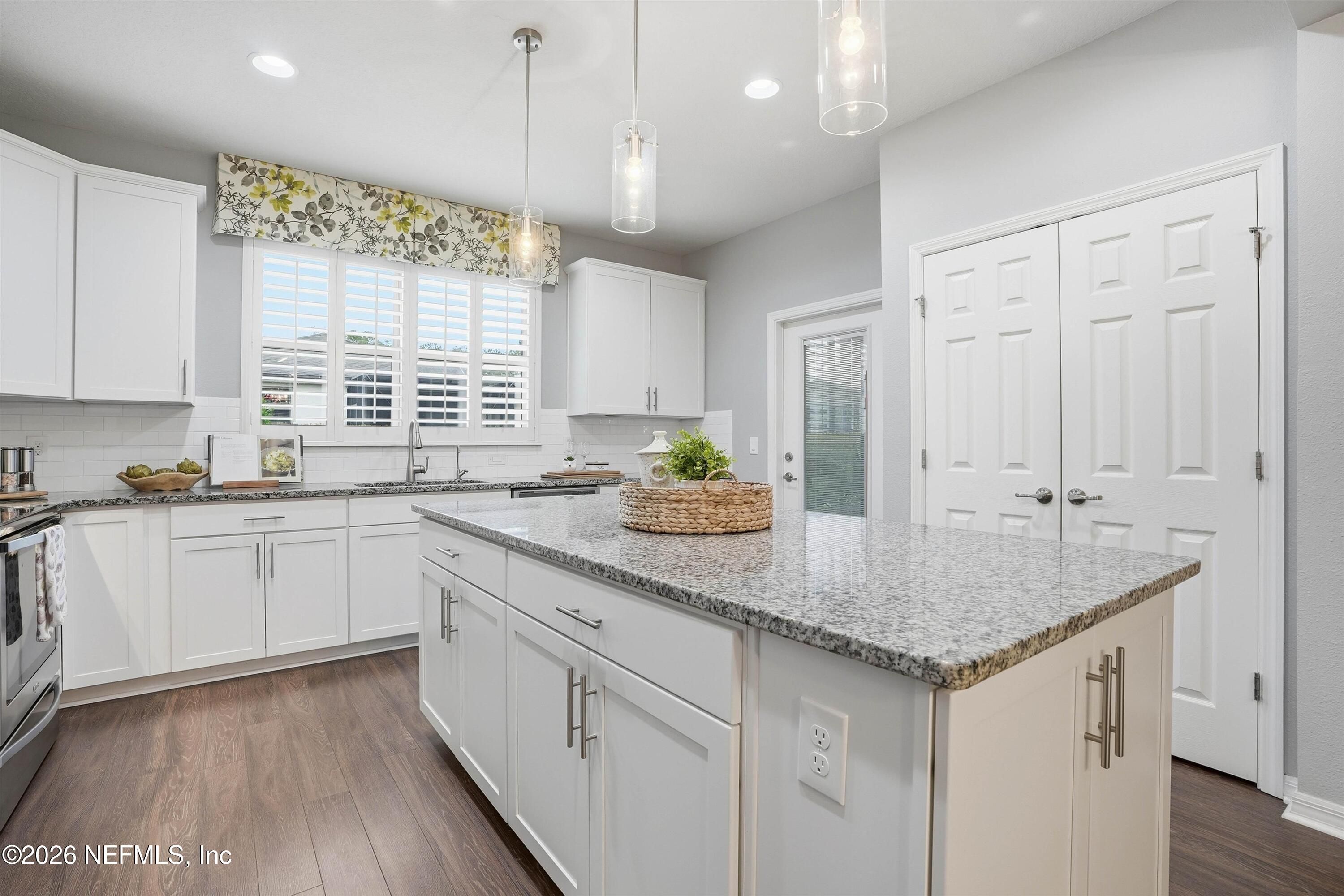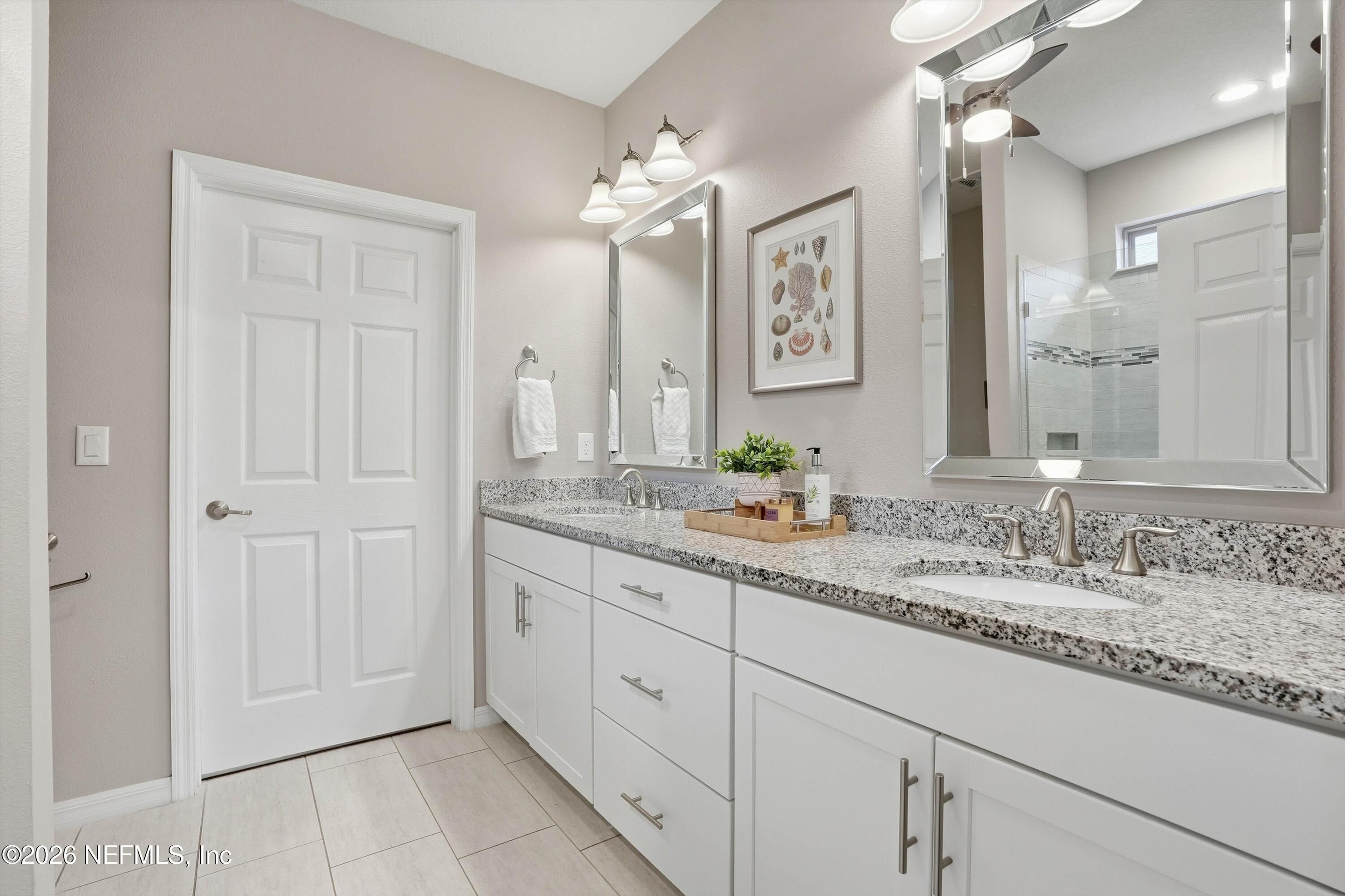 Move-in ready Taft model featuring 3 bedrooms and 2 baths, beautifully maintained and loaded with thoughtful upgrades. The extended 4-ft garage includes ceiling-mounted storage racks and a utility sink, offering exceptional functionality. Inside, enjoy 9-ft ceilings, plantation shutters, and luxury vinyl plank flooring throughout ''no carpet''. The kitchen shines with 42'' white Shaker cabinets with pull-out shelving, granite countertops, subway tile backsplash, single-bowl sink, upgraded stainless-steel appliances, reverse osmosis system, and a water softener. The living area is anchored by an electric fireplace with mantle and heater, creating a warm, inviting space. Additional upgrades include a steam washer and dryer with pedestal bases. Outdoors, the home is enhanced by lush, professionally landscaped grounds and a privacy hedge in the backyard, perfect for relaxing or entertaining. Owners enjoy all Del Webb PV privileges at the Anastasia Club including indoor and outdoor pools & spas, pickle ball, bocce, tennis, fitness center, numerous clubs, a full-time activity director plus access to the Nocatee Water Parks & Amenities Close to Publix & the town center, restaurants & shopping. Just 10 minutes to the beach & golfing