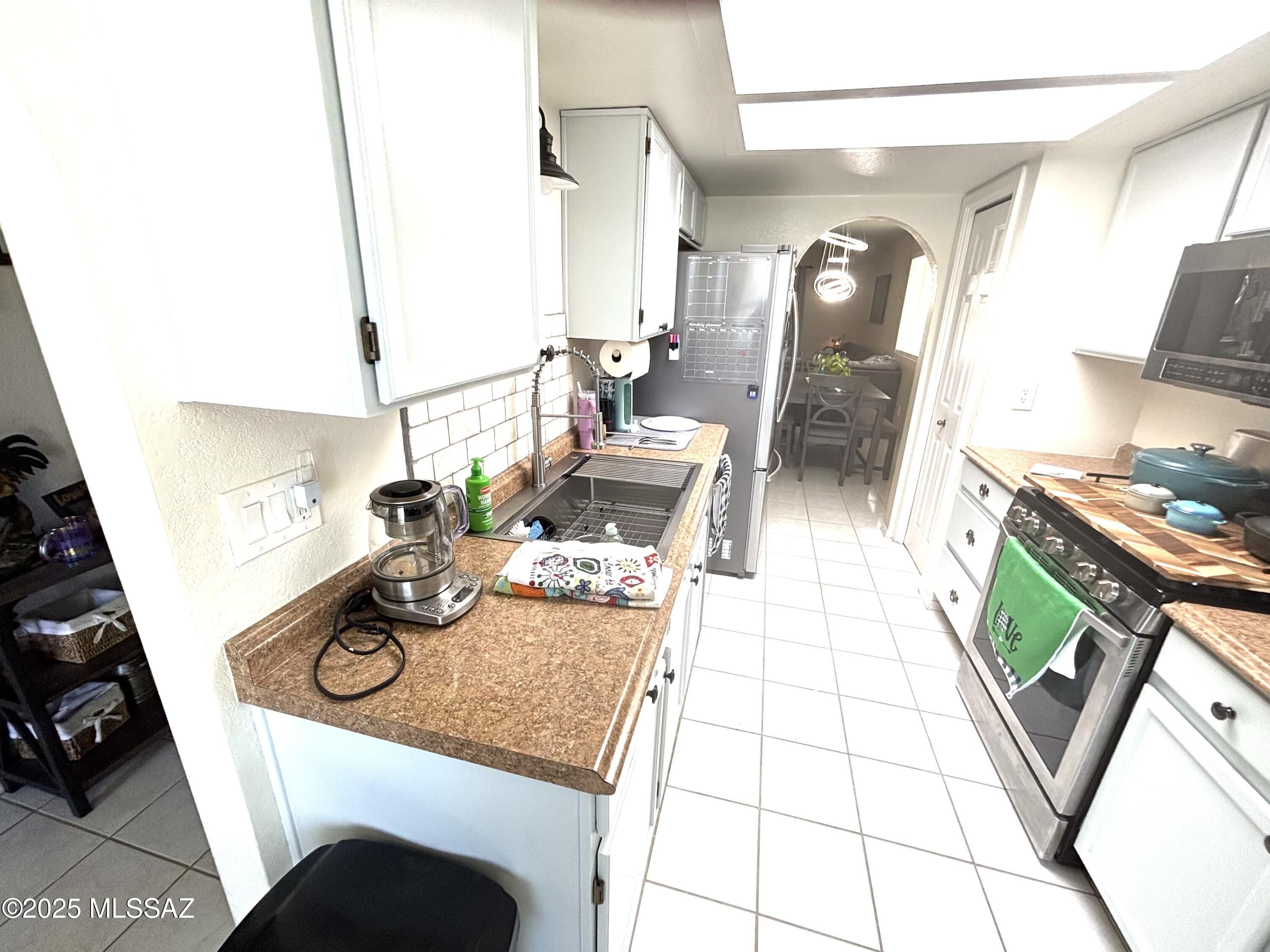 Absolutely Beautiful 3 Bedroom, 2 Ba Townhouse in the Popular Casa De Abregos community in Green Valley, Arizona. This home has a 2 car garage, end unit, nicely updated throughout. Amazing community pool right next to unit, Kitchen features newer countertops, trendy painted cabinetry, and all appliances stay including high end front loader washer and dryer. Stylish remodeled bathrooms, Tile in all the right places. Master suite offers gorgeous size walk in closet plus separate storage. New Roof completed in 2017. No rear neighbors with wide open space behind back yard.Low Hoa dues include pool, spa, and playground area. Will not last long. Come see this beautiful home.