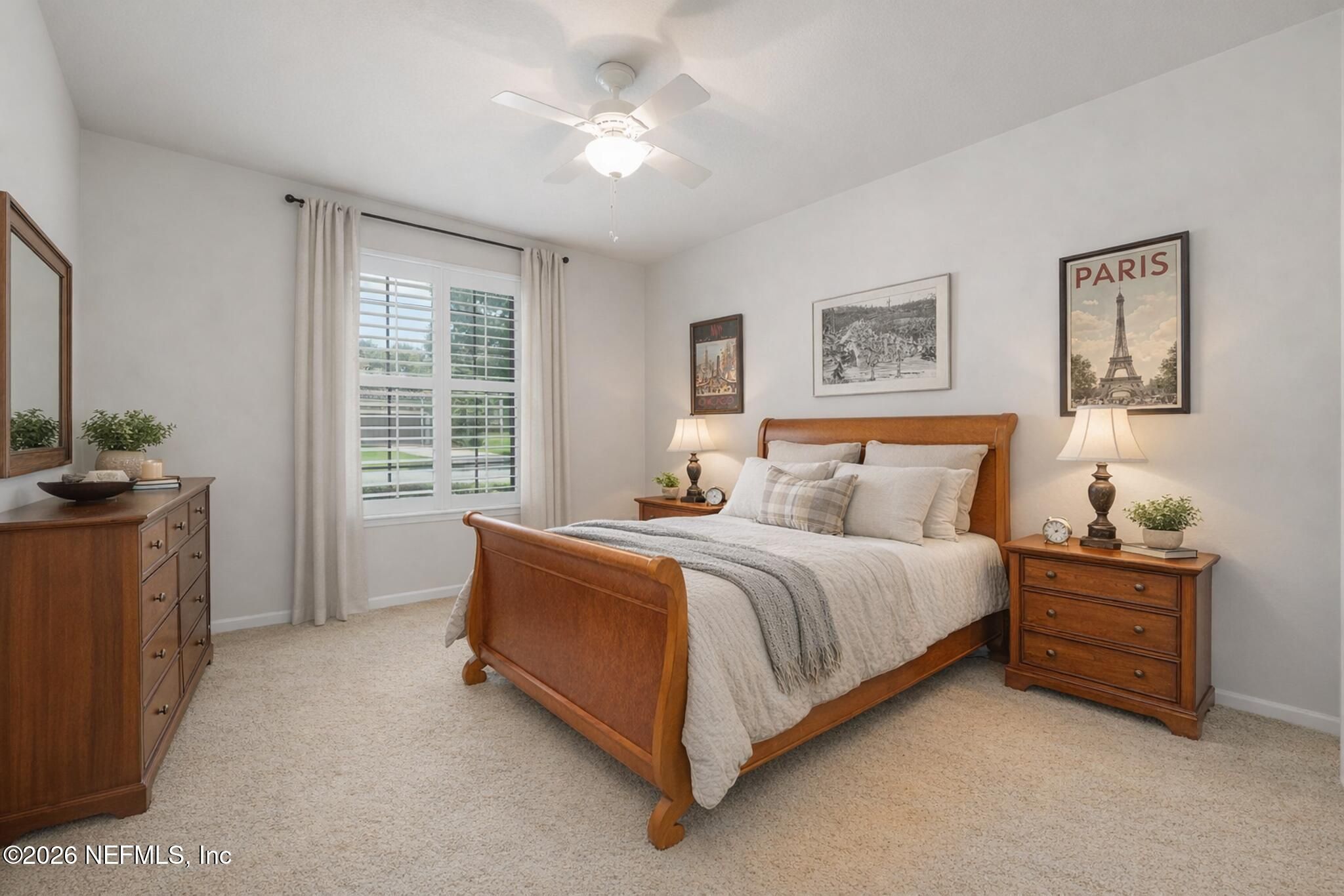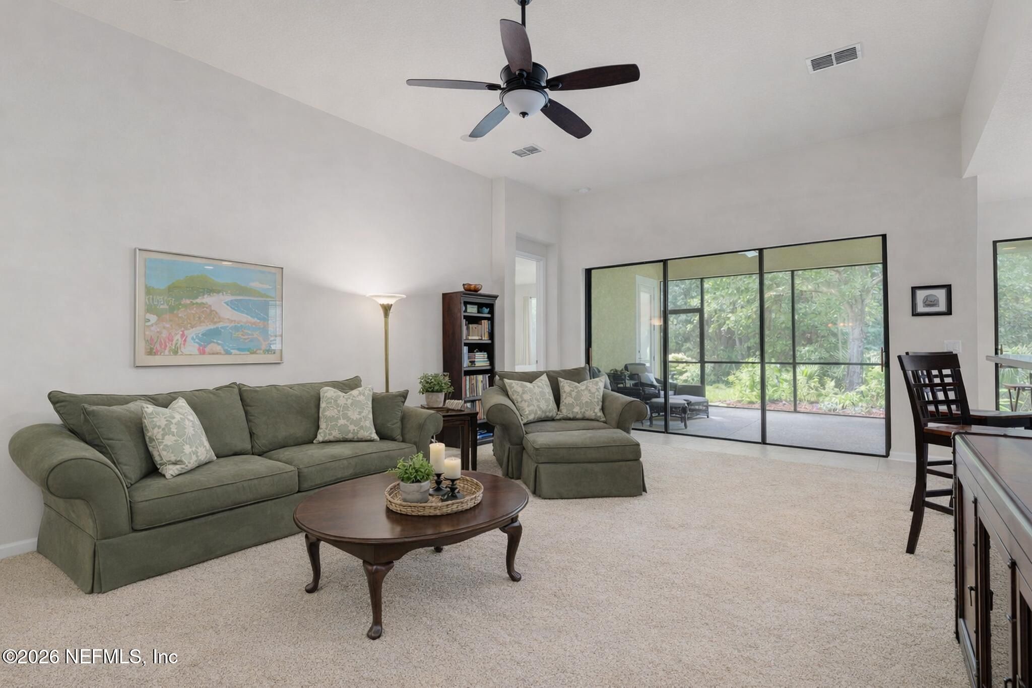 *Thoughtfully designed and priced to sell!* Ideally located near the front gate of Del Webb Ponte Vedra, a gated 55+ lifestyle community, this home offers easy access to Nocatee amenities, shopping, and dining just a short golf cart ride away. Providing peace of mind with a STORM ROOM, HURRICANE SHUTTERS, & BLOCK CONSTRUCTION! Set on a quiet cul-de-sac with a private preserve view, the expansive extended screened lanai and nesting triple slider create seamless indoor-outdoor living. Inside, 12' ceilings enhance the open design featuring a beautiful kitchen with stainless appliances, pantry, breakfast nook, and formal dining space. The open living room is ideal for entertaining, while the den/flex room with French doors offers space for an office or study. A guest bedroom and full bath provide privacy for visitors. The spacious owner's retreat overlooks the preserve and features an ensuite with double vanity, garden tub, and separate glass walk-in shower The Anastasia Club, featuring a beautiful clubhouse, a heated indoor pool, resort style outdoor pool, and a fully equipped fitness center. The community also offers tennis, pickleball, and bocce ball courts, scenic walking trails, and a full calendar of social activities and clubs. The Anastasia Club is home to the Sawgrass Café, providing convenient snacks and dining in a relaxed setting. Golf cart friendly access makes it easy to enjoy everything Nocatee Town Center has to offer just minutes from home.
