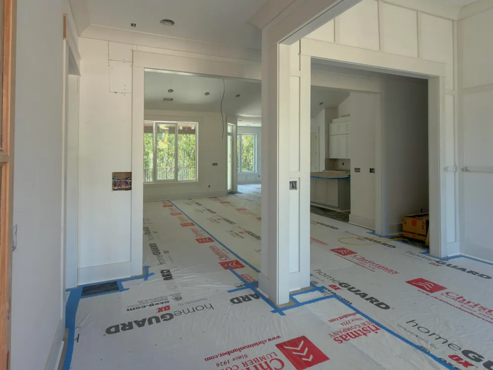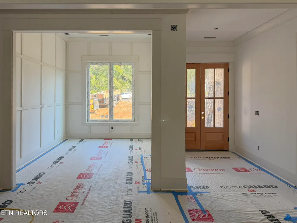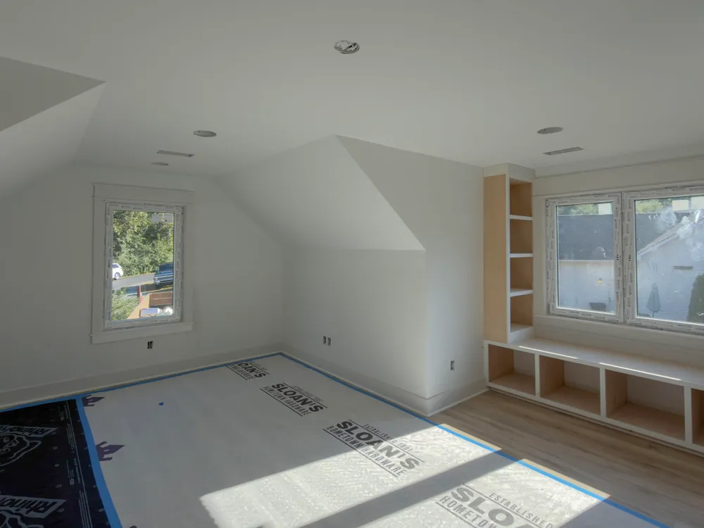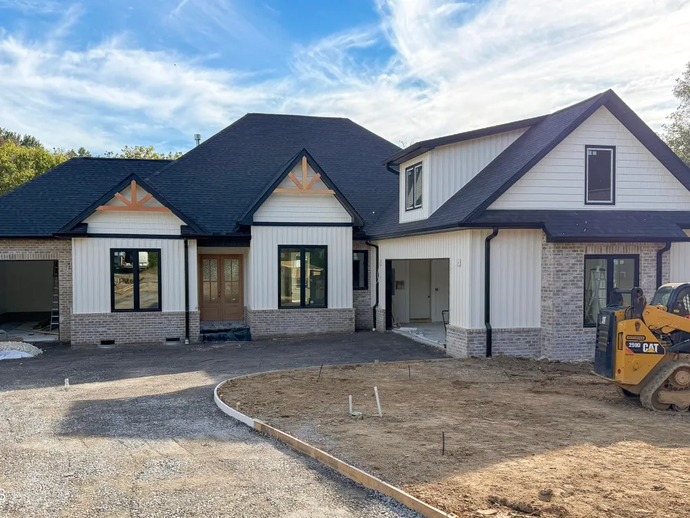 Set on an approx. half-acre lot at the end of a quiet cul-de-sac and backing to common property, this nearly finished new construction home offers privacy and premium finishes! Featuring 3 bedrooms plus a versatile bonus room, 2 full baths, 2 half baths, and 3,096 sq ft, it's crafted with energy-efficient 2×6 exterior walls, premium finishes, and custom details throughout. The exterior combines brick, board-and-batten, and vinyl siding over a brick foundation. Inside, a spacious yet inviting layout highlights luxurious details from the start: 10' ceilings, 8' doors, wide crown moulding, accent trim work, LVP flooring, and European tilt-and-turn windows throughout. The living room showcases a floor-to-ceiling shiplap and tiled fireplace with built-ins. Elevated formal dining room features tray ceiling with beams, accent trim, and will include a grand chandelier. The chef's kitchen offers abundant cabinetry, an oversized island, custom hood, pot filler, GE SS appliances (refrigerator, wall oven/microwave, gas cooktop), under-cabinet lighting, and two pantries. Spacious primary suite features a beamed ceiling and accent wall, spa-style bath with double vanities, tiled mirror wall, freestanding tub, walk-in shower, and custom closet. Two guest bedrooms share a double-vanity bath with tiled shower, plus there's an additional powder bath. A tiled mudroom with shelving and a well-designed laundry room add organization. Upstairs, a true bonus room with half bath, reading nook, dry bar, and beverage cooler is perfect as a 4th bedroom, media space, or office. Outdoor living will shine with a screened deck featuring a stone accent wall and adjoining open deck, and your pets will LOVE the large, open, and level backyard. A tall crawlspace with an extra concrete pad offers additional storage. Oversized 18-ft two-car garage includes a dog shower, plus a separate 9-ft third garage with its own exterior entrance. Professional landscaping and irrigation will complete the package - with time still to personalize final selections. Please include in offer: Buyer to reimburse Seller at closing for the one-time Loudon County impact tax of $1.00 per finished sq ft.