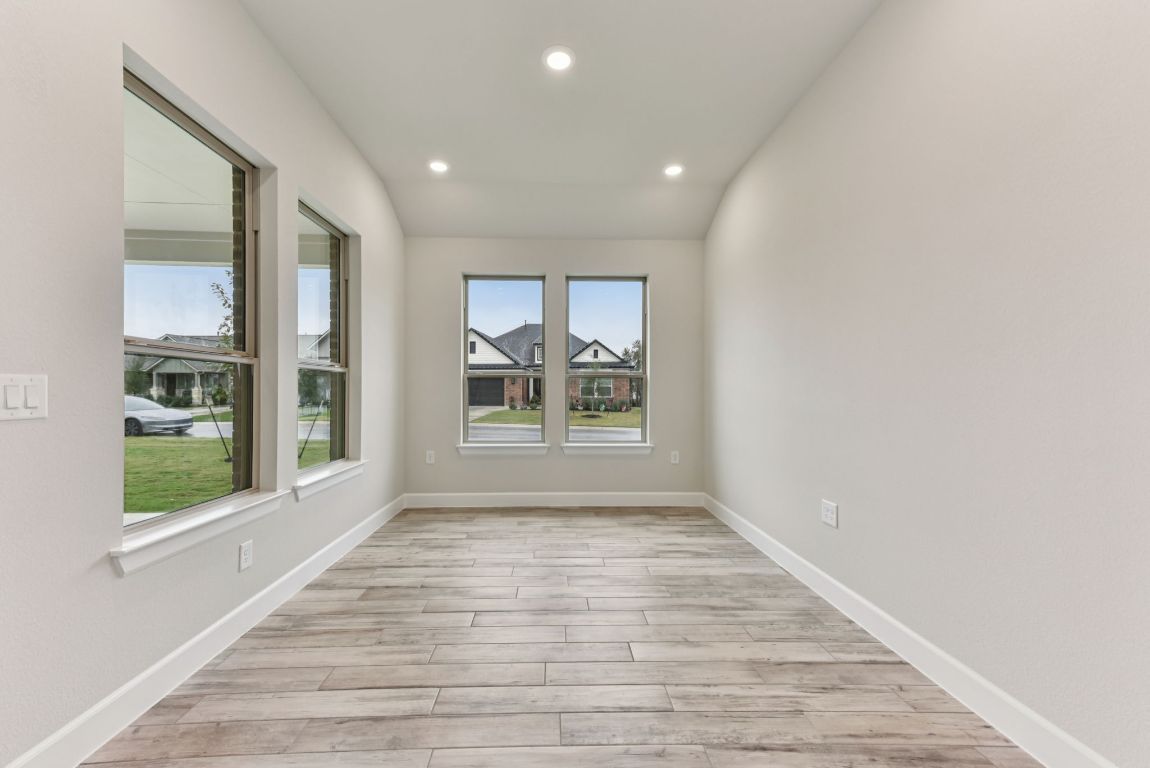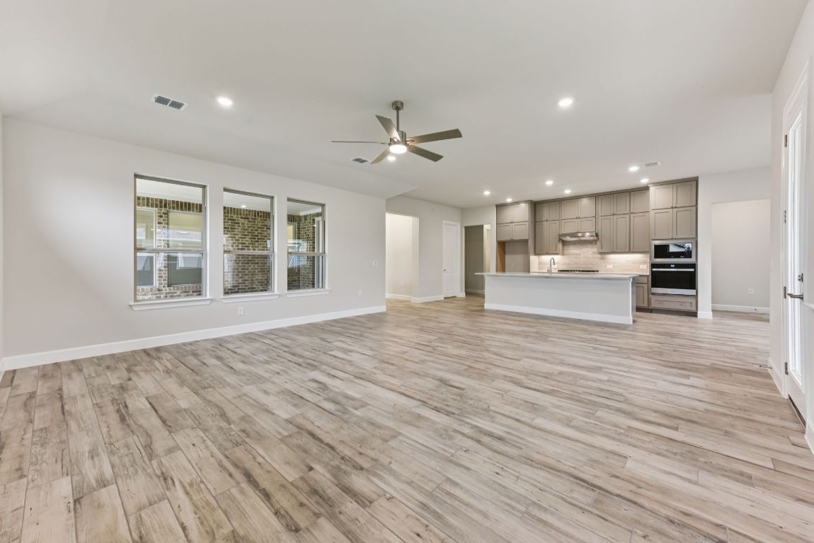 Trinity plan with upgraded kitchen, quartz countertops, upgraded tile flooring, optional study with double doors, dry bar without frig, optional covered patio 2