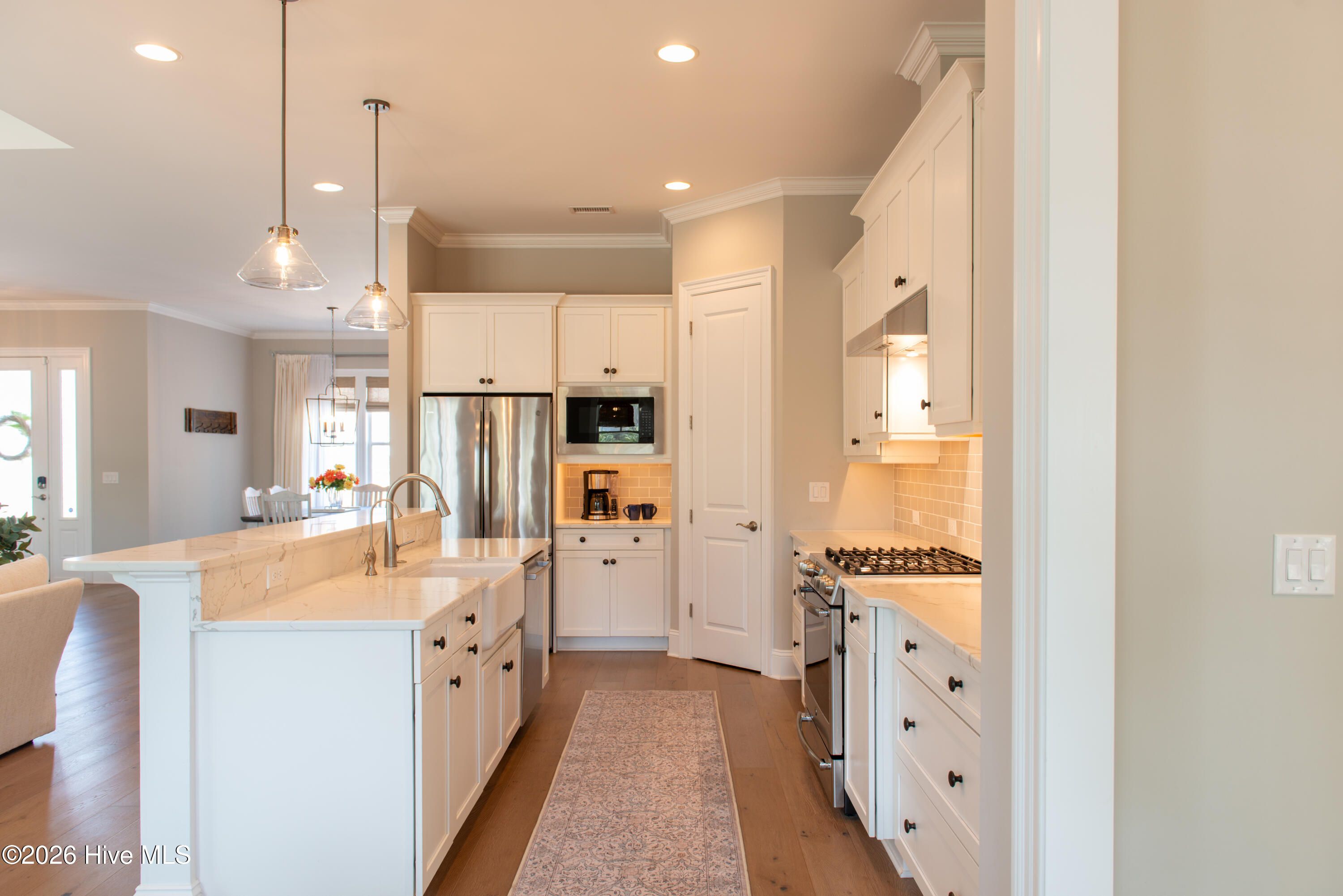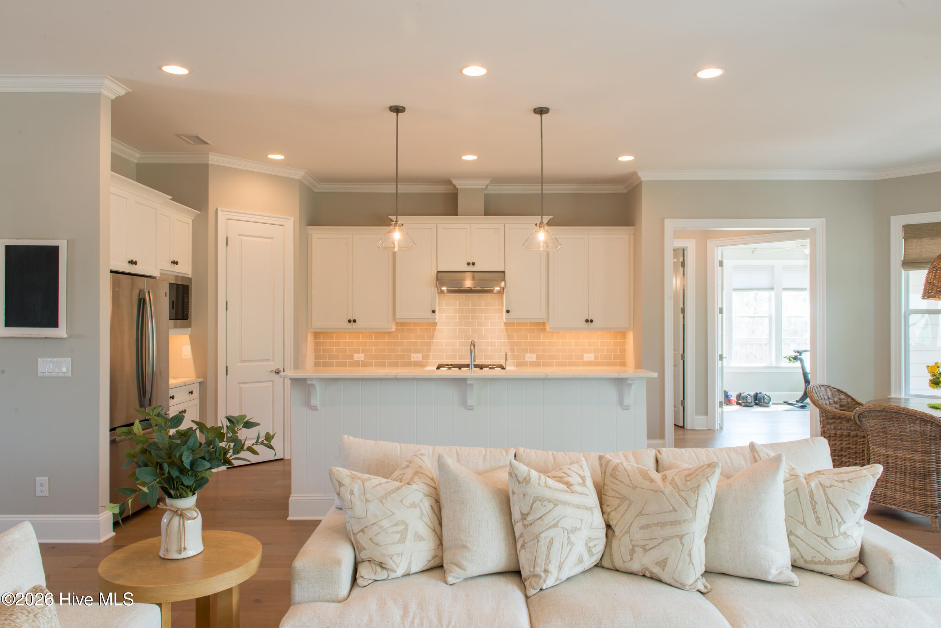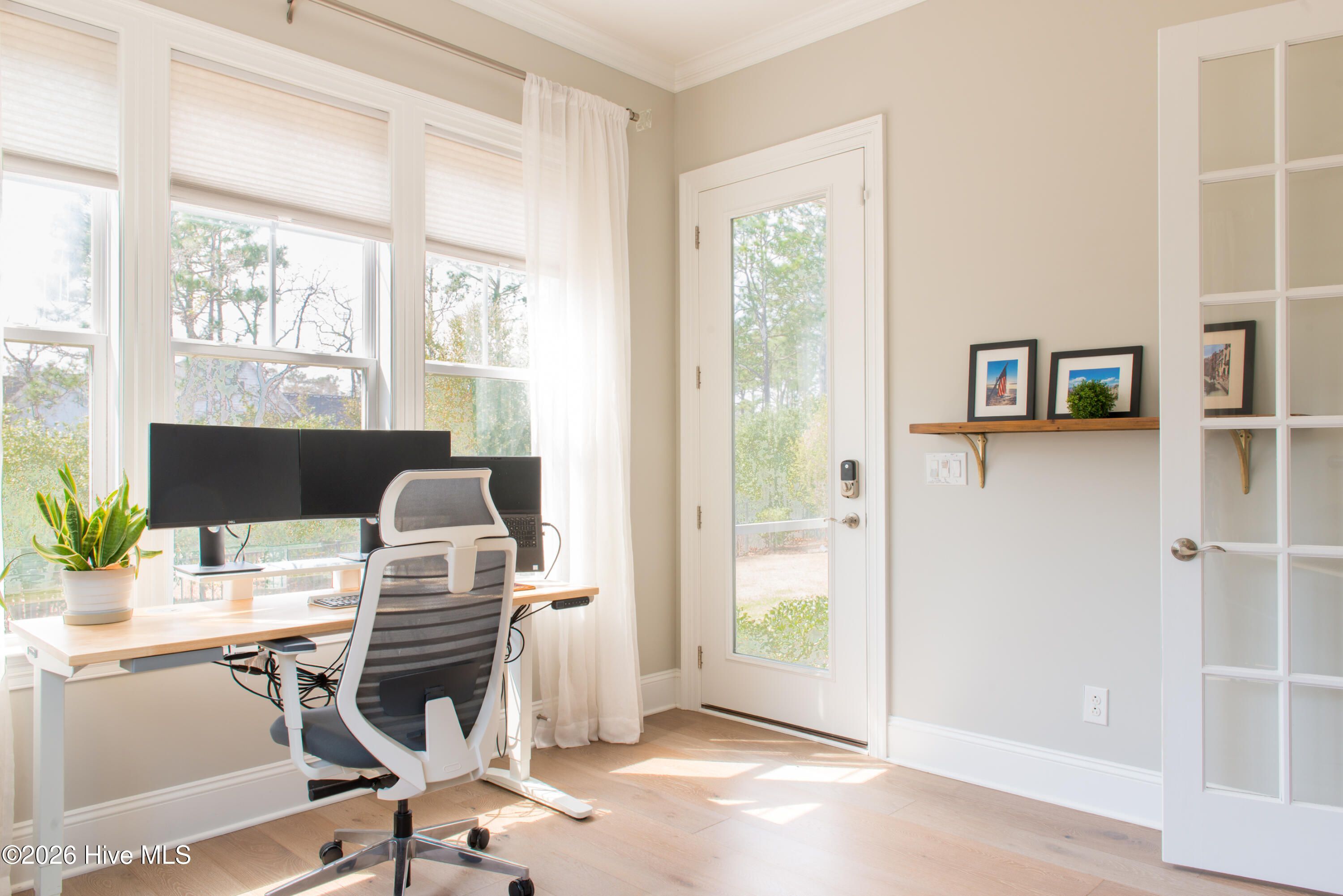 Welcome to Riverlights, one of Wilmington's premier communities along the scenic Cape Fear River -- where coastal charm, natural beauty, and vibrant neighborhood living come together. Perfectly positioned on a beautifully manicured lot with peaceful surroundings and breathtaking sunset views, this home immediately captures your heart the moment you step inside. The open split floor plan features tall ceilings and beautiful hardwood floors throughout the home. The stunning kitchen offers quartz countertops, gas cooking, refrigerator, built-in microwave, walk-in pantry, and an expansive breakfast bar perfect for entertaining. The private primary retreat is located on its own wing with dual closets and a luxurious spa-like bath. Two additional bedrooms on the opposite side share a full bath, providing ideal privacy for family or guests. A formal dining room, welcoming foyer, and spacious great room with gas fireplace and custom built-ins create warm, inviting living spaces. Telescoping sliding glass doors open to the expansive screened porch, blending indoor and outdoor living. A private office with french doors overlooks the outdoor space and also provides porch access. Upstairs is a versatile bonus room or fourth bedroom with a large closet and access to a floored attic for additional storage. Notable upgrades include a drop zone, soft close drawers and doors in kitchen and baths, hurricane shutters, irrigation system, fenced yard, new hybrid water heater, whole-house water filtration and reverse osmosis, a 50-amp circuit and outlet ready for a future electric car charger and prewired for a portable generator. Riverlights offers award-winning amenities including two amenity centers, pickleball courts, scenic walking trails, two dog parks, kayaking, canoeing, paddleboarding, vibrant community events and so much more creating a vibrant coastal lifestyle. The community also features its own fire station and is conveniently located near shopping, dining, medical facilities, schools and historic Downtown Wilmington, Wrightsville Beach, and Carolina Beach. Riverlights truly feels like a town of its own. Come experience the lifestyle so many buyers are searching for -- schedule your private tour today before this beautiful home is gone.