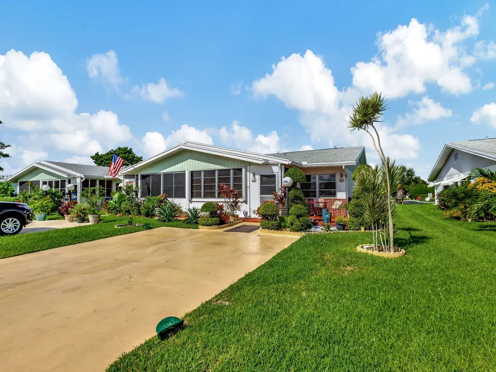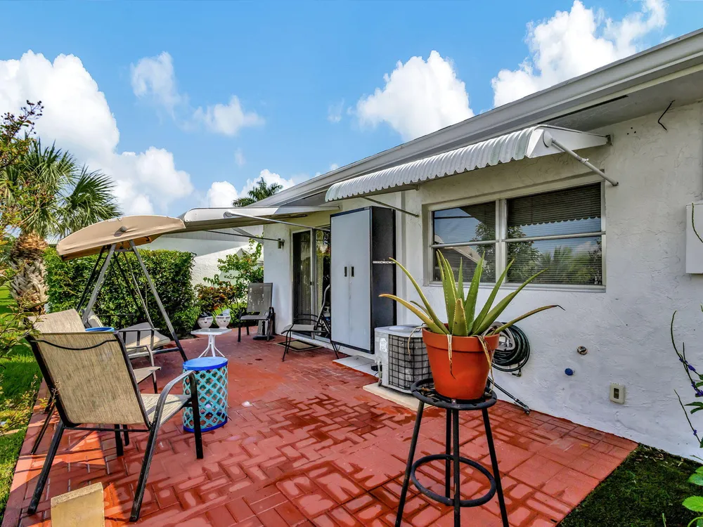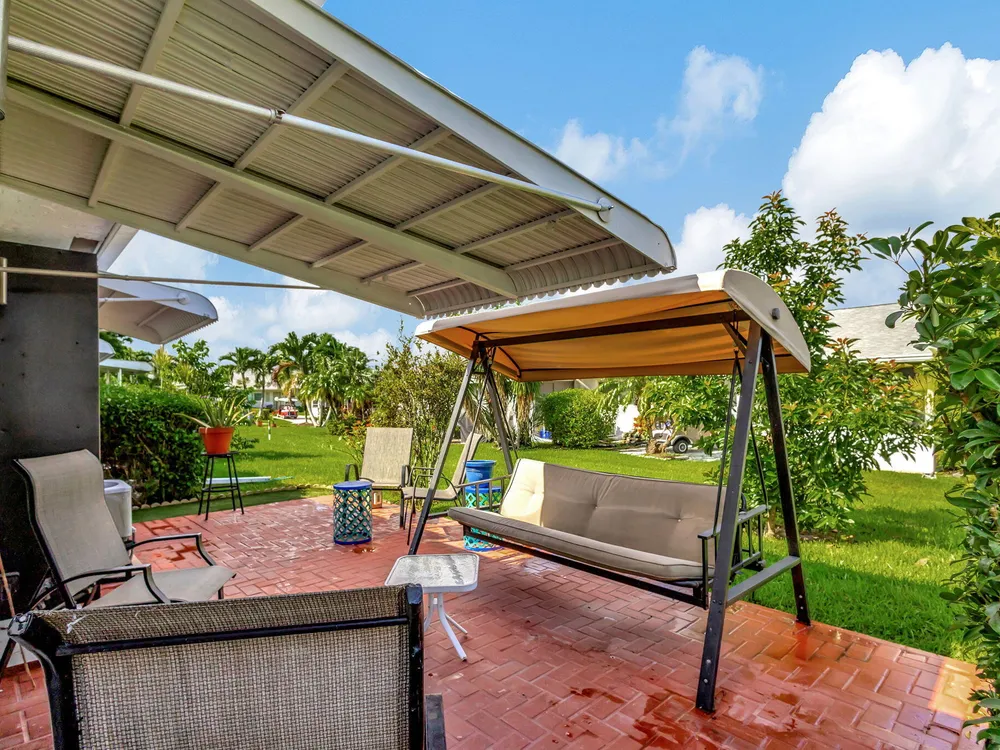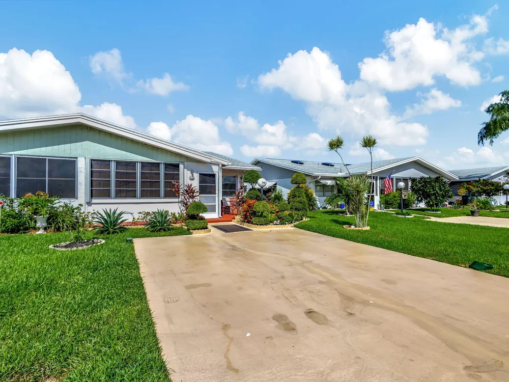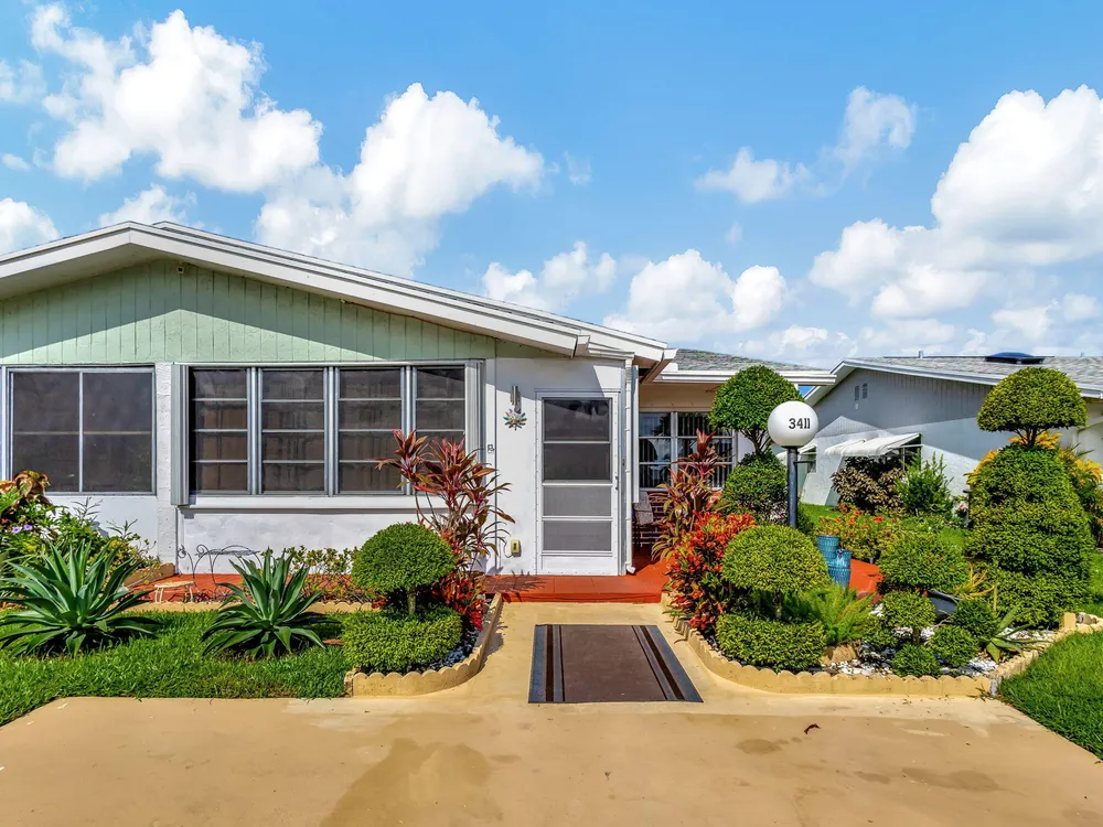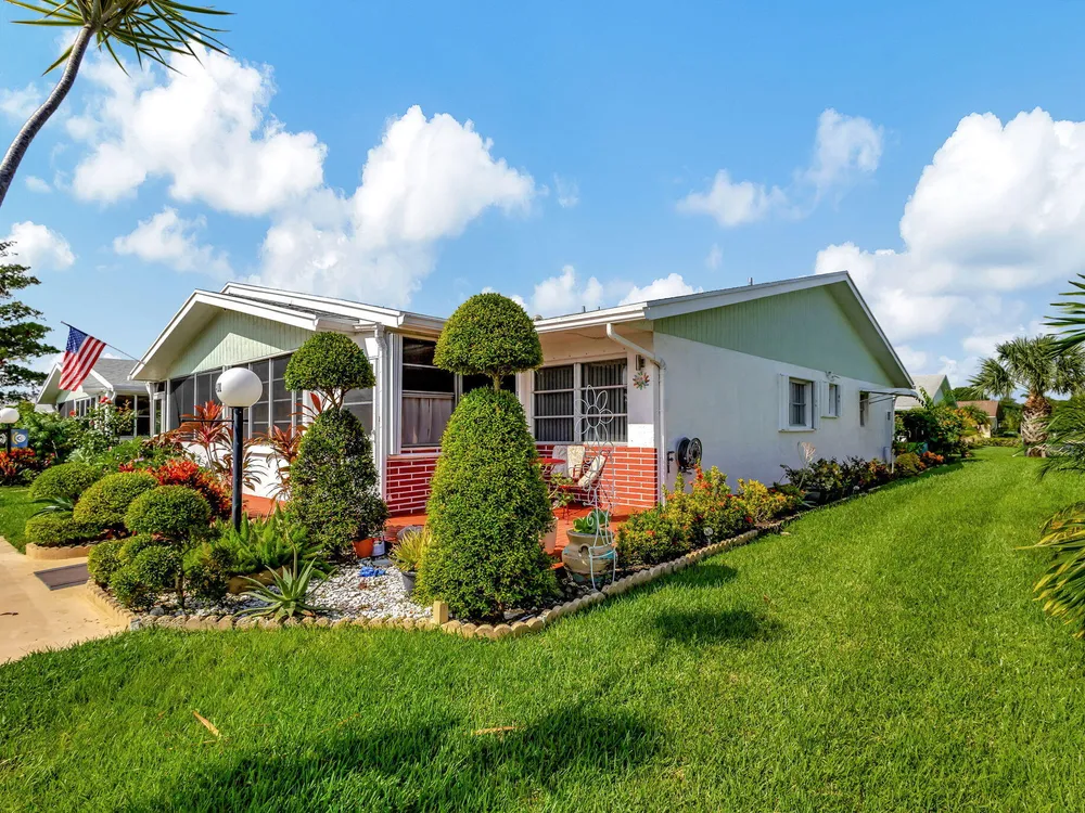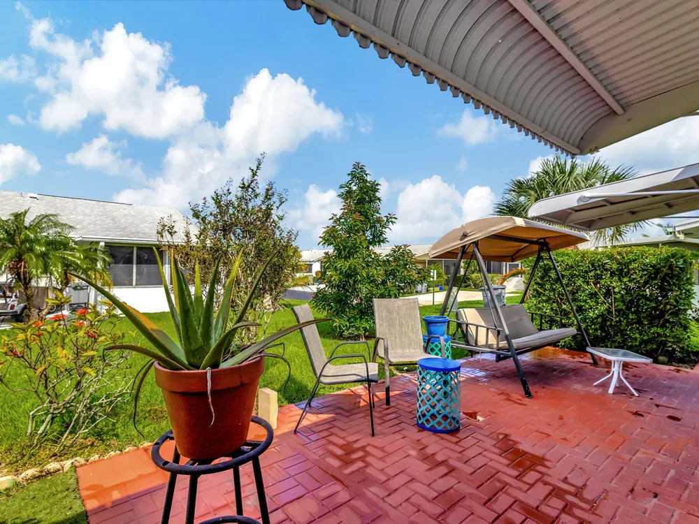 Welcome to your dream villa! This beautifully updated 2-bedroom, 2-bathroom corner-lot home boasts a wrap-around landscape, offering tranquility and privacy with plenty of room in the spacious enclosed front and open back patio to relax or entertain. The roof is new, providing peace of mind for years to come. As you step inside, you'll be greeted by brand-new tile flooring throughout, leading to a completely renovated kitchen featuring new appliances, a marble countertop and backsplash, a farmhouse sink, and a wine cooler. Freshly painted, the villa is move-in ready with updated bathrooms to match its modern charm. In addition to this impeccable home, you'll have access to a