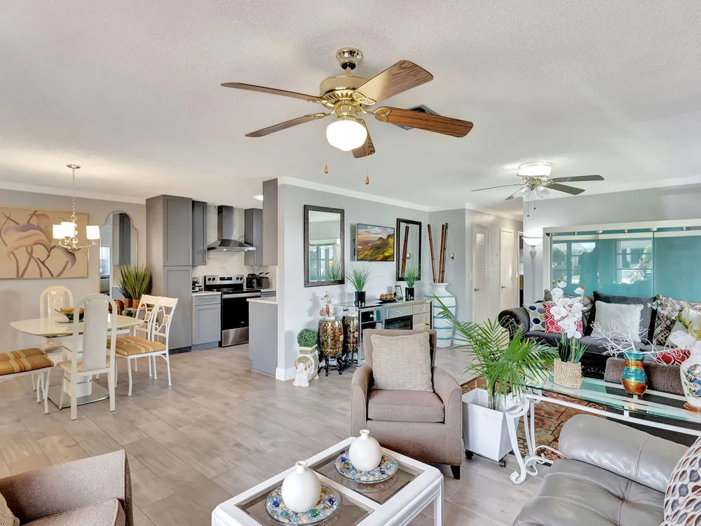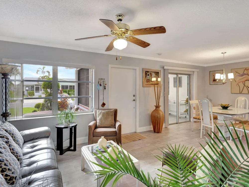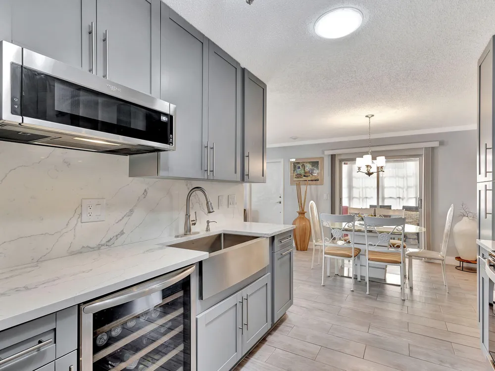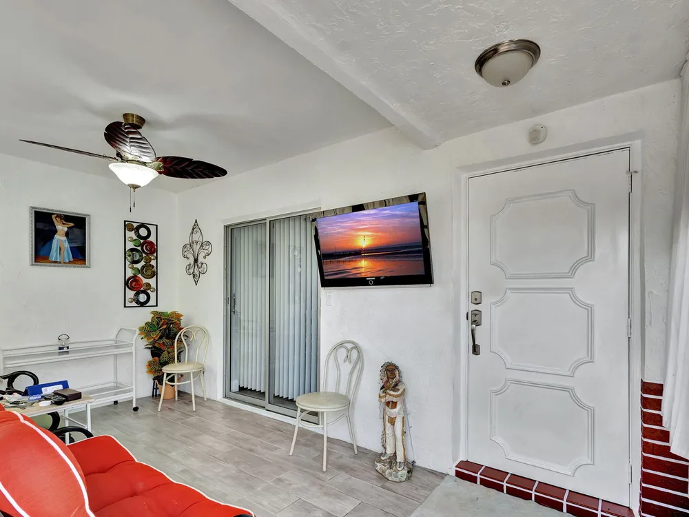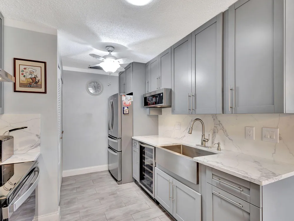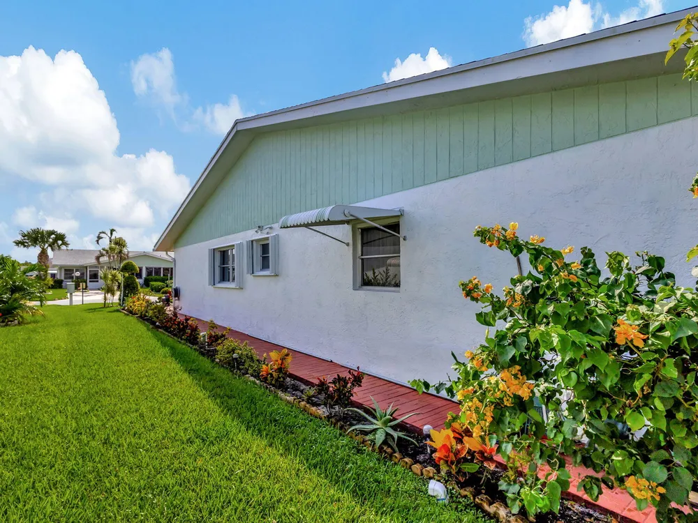 Welcome to your dream villa! This beautifully updated 2-bedroom, 2-bathroom corner-lot home boasts a wrap-around landscape, offering tranquility and privacy with plenty of room in the spacious enclosed front and open back patio to relax or entertain. The roof is new, providing peace of mind for years to come. As you step inside, you'll be greeted by brand-new tile flooring throughout, leading to a completely renovated kitchen featuring new appliances, a marble countertop and backsplash, a farmhouse sink, and a wine cooler. Freshly painted, the villa is move-in ready with updated bathrooms to match its modern charm. In addition to this impeccable home, you'll have access to a