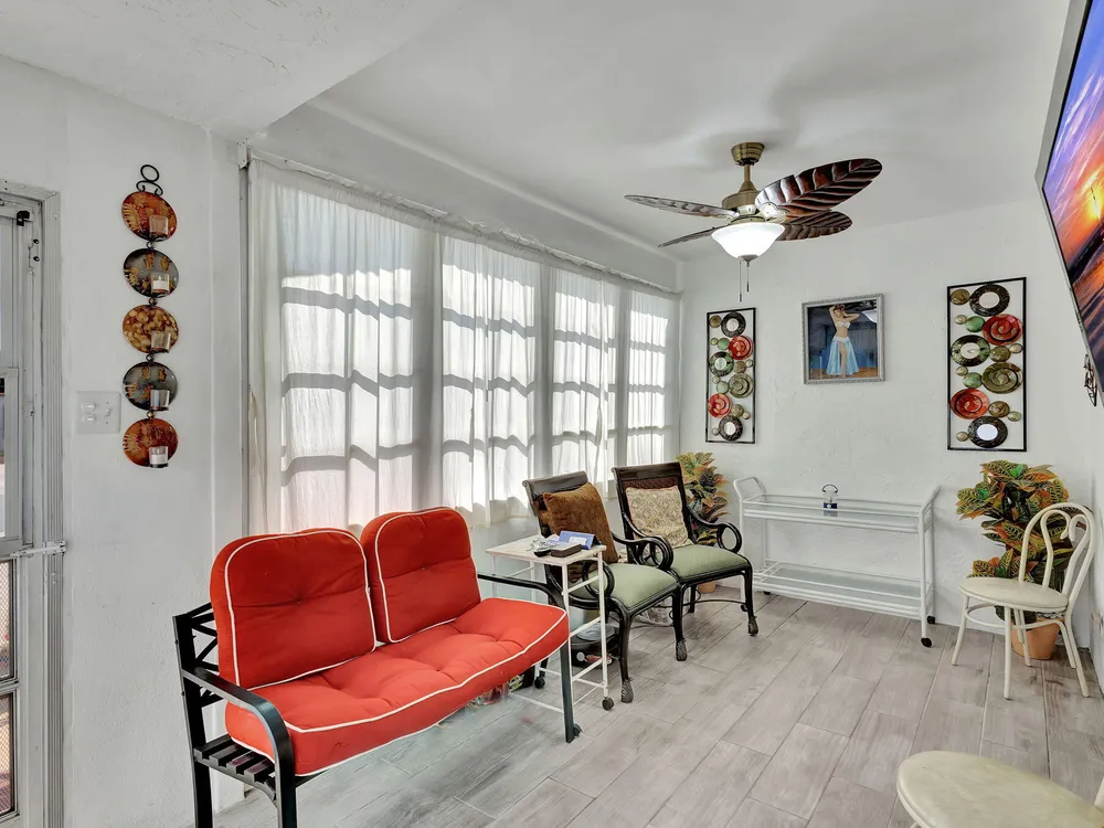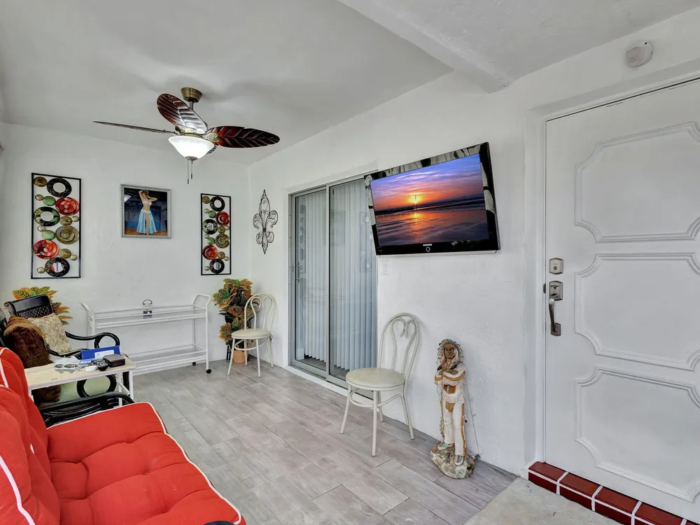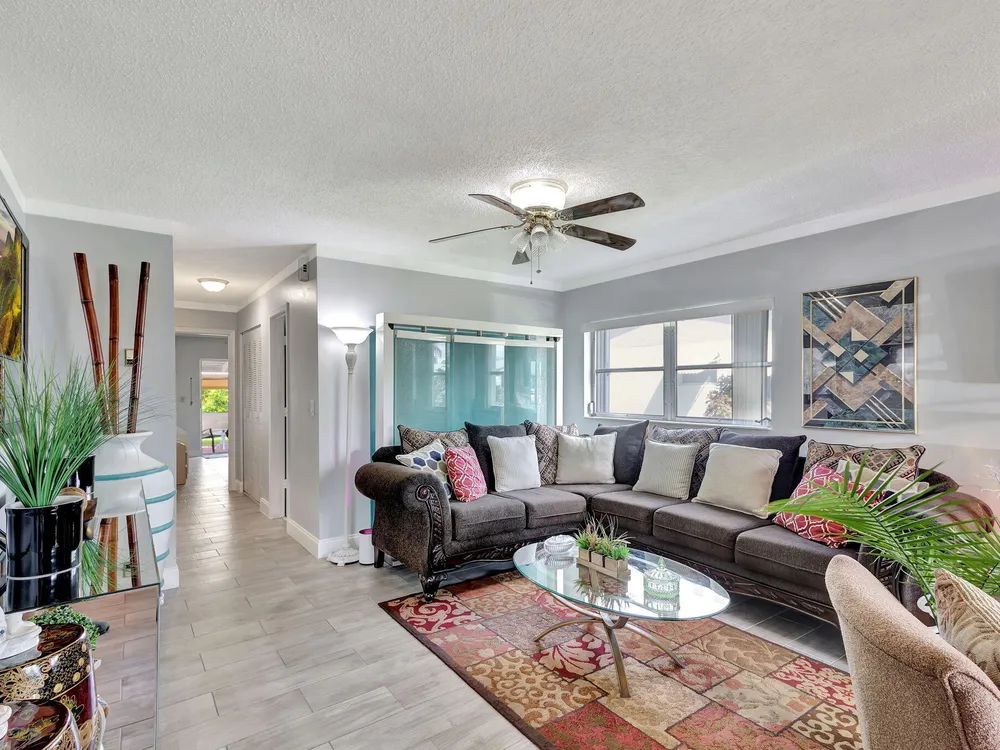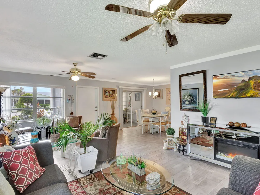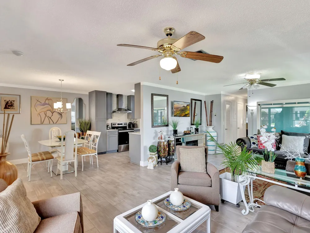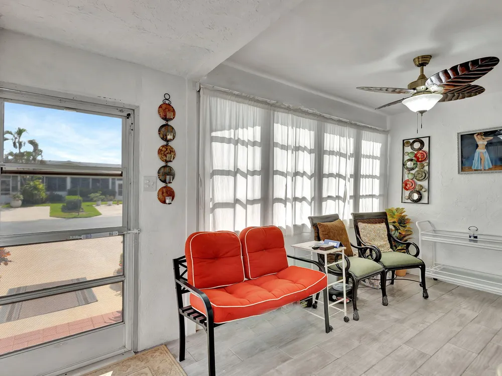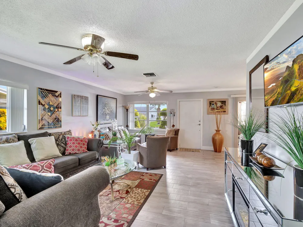 Welcome to your dream villa! This beautifully updated 2-bedroom, 2-bathroom corner-lot home boasts a wrap-around landscape, offering tranquility and privacy with plenty of room in the spacious enclosed front and open back patio to relax or entertain. The roof is new, providing peace of mind for years to come. As you step inside, you'll be greeted by brand-new tile flooring throughout, leading to a completely renovated kitchen featuring new appliances, a marble countertop and backsplash, a farmhouse sink, and a wine cooler. Freshly painted, the villa is move-in ready with updated bathrooms to match its modern charm. In addition to this impeccable home, you'll have access to a