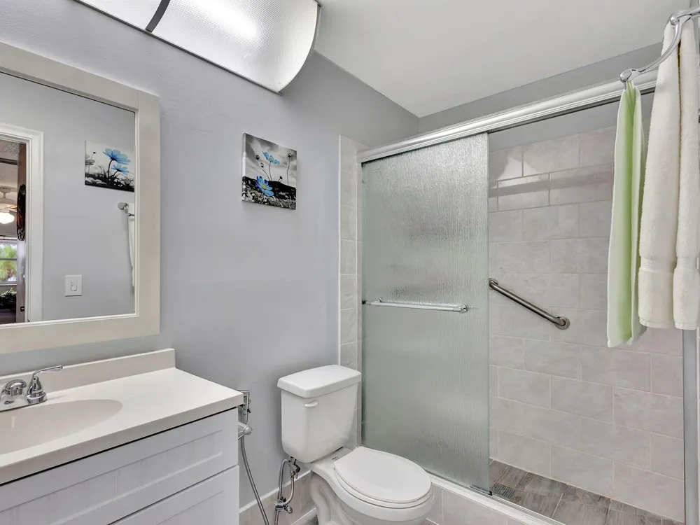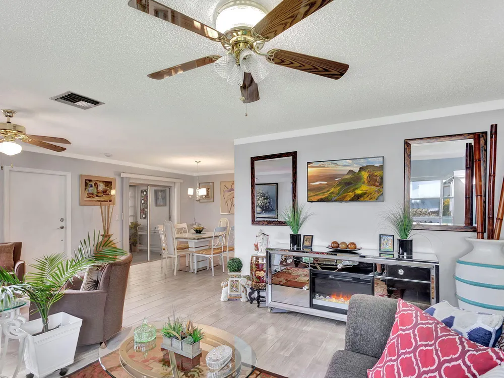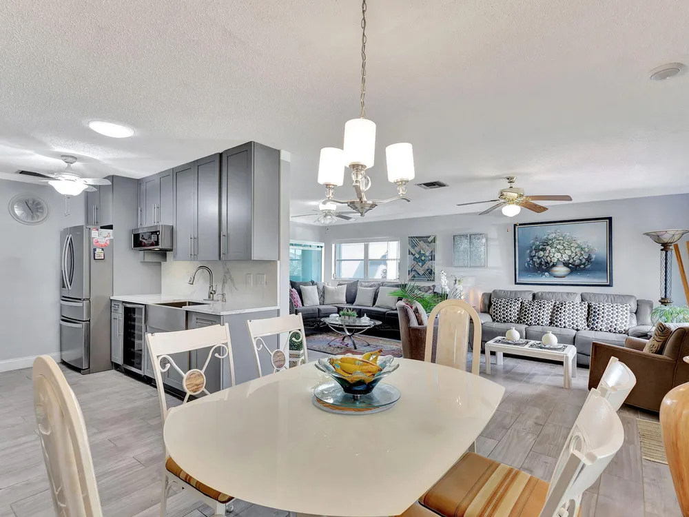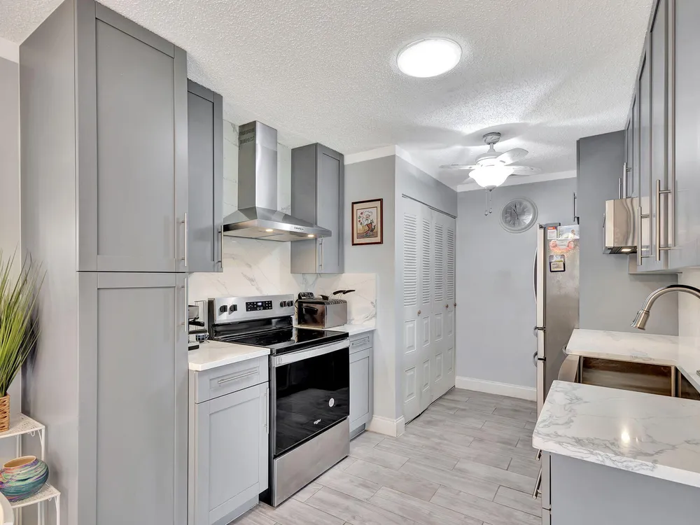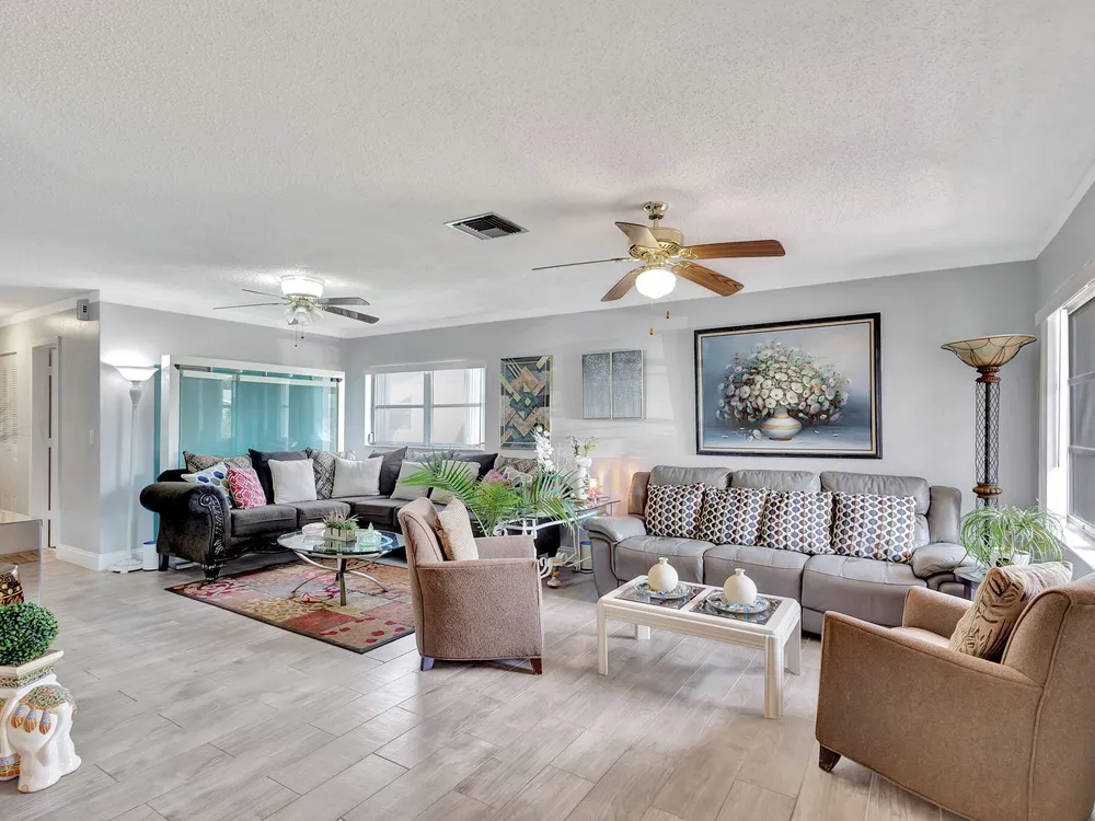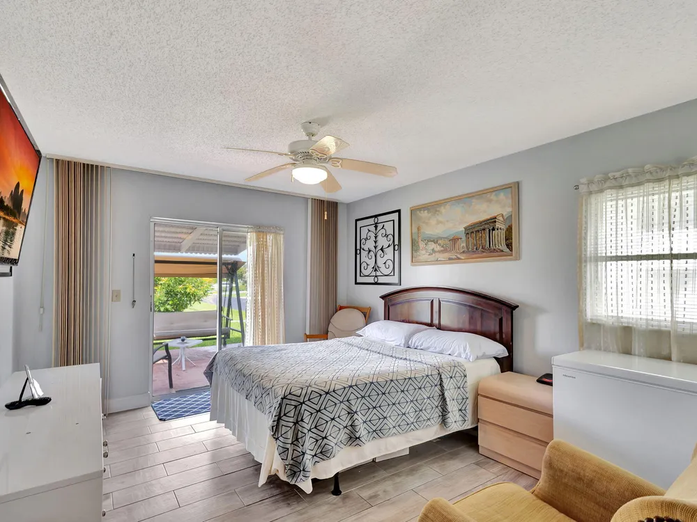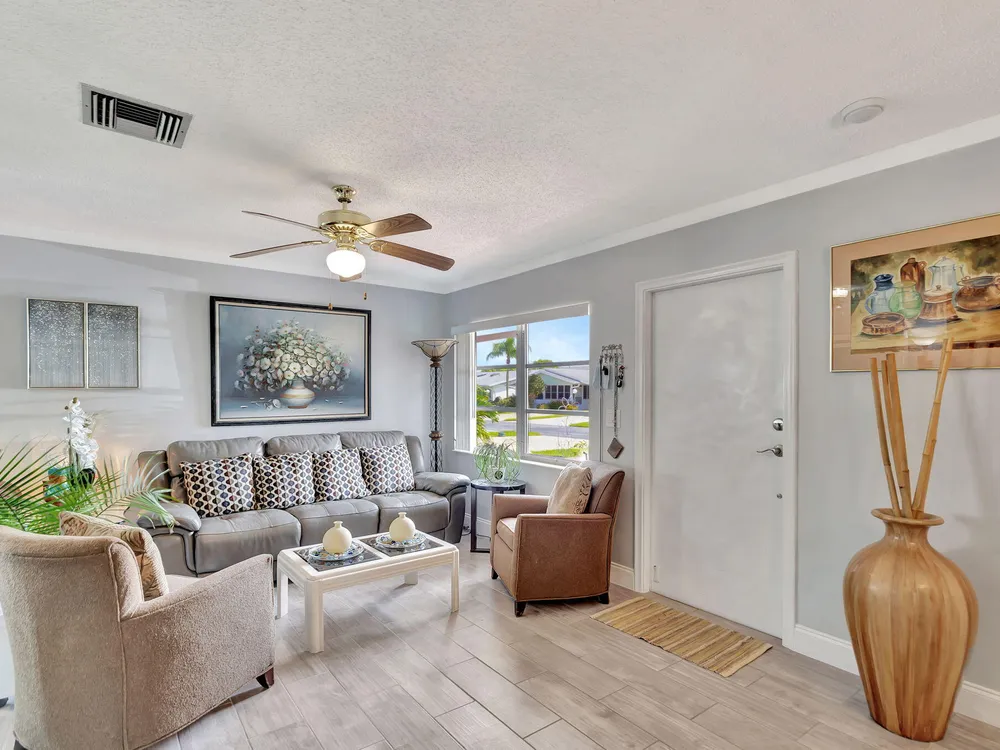 Welcome to your dream villa! This beautifully updated 2-bedroom, 2-bathroom corner-lot home boasts a wrap-around landscape, offering tranquility and privacy with plenty of room in the spacious enclosed front and open back patio to relax or entertain. The roof is new, providing peace of mind for years to come. As you step inside, you'll be greeted by brand-new tile flooring throughout, leading to a completely renovated kitchen featuring new appliances, a marble countertop and backsplash, a farmhouse sink, and a wine cooler. Freshly painted, the villa is move-in ready with updated bathrooms to match its modern charm. In addition to this impeccable home, you'll have access to a
